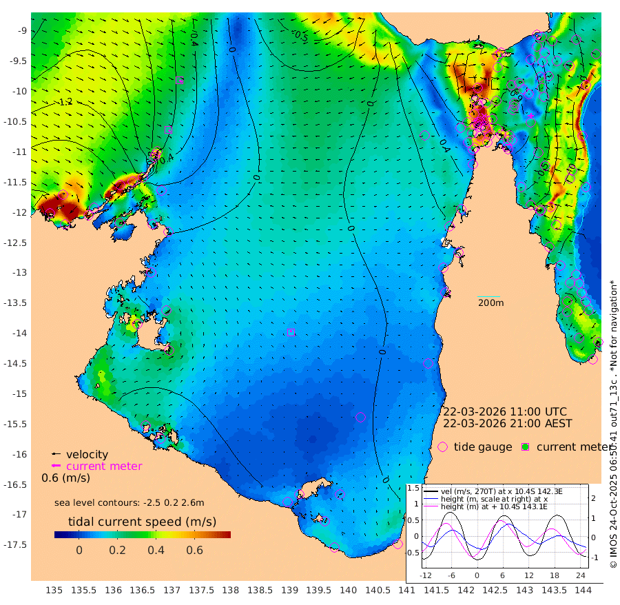 19cm/s 143T +3cm/s rms + 7cm/s -42T. ARA-GOC87 57m 13cm/s -20T +3cm/s rms + 2cm/s -2T. ARA-GOC87 60m 23cm/s 134T +2cm/s rms + 3cm/s 61T. ARA-GOC87 47m -51cm Daru -41cm Bobo Island 1cm Meer Island Barge -5cm Bramble Cay -33cm Unnamed Cay -20cm Pearce Cay -19cm Stephens Island -24cm Merrie England Shoals -47cm Mutacomal Reef -28cm Darnley Island Barge 9cm East Cay -45cm Yorke Island Barge -30cm Rennel Island -41cm Aureed Island -46cm Dungeness Reef -78cm Zagai Island -68cm Yam Island -76cm Dauan Island -91cm Saibai Island -68cm Phipi Reef -81cm Warrior Reef - West -45cm Mabuiag Island Barge -31cm Half Way Island -44cm Coconut Island -45cm Dugong Islet -53cm Poll Island -50cm Kirkcaldie Reef -64cm Suarji Island -72cm Sue Islet 56cm Hawkesbury Island -44cm Alert Patches -45cm Twin Island 39cm Badu Island -58cm St Pauls (Moa Island) 24cm Kubin (Moa Island) -26cm Ince Point -8cm Thursday Island -14cm Nardana Patches 20cm Turtle Head 32cm Round Island 64cm Goods Island 82cm Booby Island 84cm White Rocks Area 46cm Carpentaria -39cm Papou Point 70cm Bampfield Head 79cm Crab Island 78cm Red Wallis Island 47cm Packe Island -44cm Harrington Reef 48cm Herald Camp -32cm Sharp Point 26cm Red Island Point -15cm Possession Island -57cm Alpha Rock -47cm Frederick Point -48cm Wyborn Reef Light -53cm Tetley Island -5cm Triangle Reef -31cm Turtle Head Island 2cm Maclennan Cay 24cm Raine Island -28cm Mcsweeny Reef -24cm Collette Reef -4cm Shadwell Reef -23cm Hannibal Island 3cm Round Point 72cm Vrilya Point -4cm Cape Grenville 4cm Hicks Island -7cm Sir Charles Hardy Island -2cm Harvey Island 7cm Kay Reef 13cm Rocky Island 22cm Chapman Island 15cm Ham Reef 13cm Jubilee Reef 13cm Night Island 20cm Unnamed Reef No. 3 18cm Morris Island 18cm 1st 3 Mile Opening 16cm Creech Reef 20cm Fife Island 26cm Eden Reef 17cm Stanley Island 22cm Normanby River 167cm Yabooma Island 177cm Hutchison River 161cm Elcho Island 157cm North West Crocodile Island 70cm Cape Wessel 129cm Stevens Island 19cm Guluwuru Island 119cm Hopeful Bay 95cm Auster Point 92cm Two Island Bay 122cm Cadell Strait -101cm Mallison Island 31cm Melville Bay (Gove Harbour) 33cm Truant Island 8cm Cape Arnhem -8cm Cape Grey -12cm Hawk Island -20cm Milner Bay (Groote Eylandt) -22cm Cape Beatrice -51cm West Island -47cm Centre Island -47cm Mornington Island -50cm West Wellesley Islands -54cm Bountiful Island -26cm Albert River Mouth -39cm Sweers Island -24cm Karumba -21cm Nassau River Offshore -7cm Christmas Creek 29cm Archer River 24cm Boyd Point 41cm Weipa (Humbug Point) 48cm Pennefather River 52cm Cullen Point
