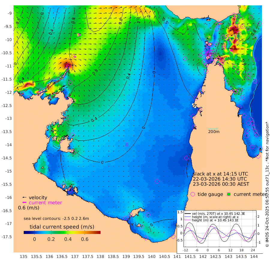 46cm/s 105T +3cm/s rms + 7cm/s -42T. ARA-GOC87 57m 7cm/s 164T +3cm/s rms + 2cm/s -2T. ARA-GOC87 60m 41cm/s 94T +2cm/s rms + 3cm/s 61T. ARA-GOC87 47m 105cm Daru 110cm Bobo Island 72cm Meer Island Barge 85cm Bramble Cay 94cm Unnamed Cay 108cm Pearce Cay 98cm Stephens Island 91cm Merrie England Shoals 91cm Mutacomal Reef 93cm Darnley Island Barge 73cm East Cay 96cm Yorke Island Barge 93cm Rennel Island 100cm Aureed Island 96cm Dungeness Reef 86cm Zagai Island 72cm Yam Island 58cm Dauan Island 43cm Saibai Island 75cm Phipi Reef 86cm Warrior Reef - West 20cm Mabuiag Island Barge 93cm Half Way Island 99cm Coconut Island 89cm Dugong Islet 83cm Poll Island 81cm Kirkcaldie Reef 68cm Suarji Island 72cm Sue Islet -18cm Hawkesbury Island 54cm Alert Patches 60cm Twin Island 8cm Badu Island 61cm St Pauls (Moa Island) 16cm Kubin (Moa Island) 36cm Ince Point 23cm Thursday Island 27cm Nardana Patches 16cm Turtle Head 4cm Round Island -9cm Goods Island -35cm Booby Island -32cm White Rocks Area -54cm Carpentaria 52cm Papou Point -20cm Bampfield Head -26cm Crab Island -35cm Red Wallis Island 3cm Packe Island 98cm Harrington Reef -23cm Herald Camp 11cm Sharp Point 5cm Red Island Point 38cm Possession Island 50cm Alpha Rock 77cm Frederick Point 98cm Wyborn Reef Light 93cm Tetley Island 63cm Triangle Reef 110cm Turtle Head Island 63cm Maclennan Cay 54cm Raine Island 91cm Mcsweeny Reef 84cm Collette Reef 65cm Shadwell Reef 93cm Hannibal Island 86cm Round Point -37cm Vrilya Point 69cm Cape Grenville 75cm Hicks Island 67cm Sir Charles Hardy Island 24cm Harvey Island 59cm Kay Reef 57cm Rocky Island 50cm Chapman Island 46cm Ham Reef 56cm Jubilee Reef 56cm Night Island 47cm Unnamed Reef No. 3 61cm Morris Island 59cm 1st 3 Mile Opening 57cm Creech Reef 64cm Fife Island 68cm Eden Reef 56cm Stanley Island 62cm Normanby River 83cm Yabooma Island 125cm Hutchison River 90cm Elcho Island 76cm North West Crocodile Island 88cm Cape Wessel 102cm Stevens Island 135cm Guluwuru Island 81cm Hopeful Bay 91cm Auster Point 93cm Two Island Bay 150cm Cadell Strait 190cm Mallison Island 115cm Melville Bay (Gove Harbour) 123cm Truant Island 87cm Cape Arnhem 49cm Cape Grey 33cm Hawk Island -9cm Milner Bay (Groote Eylandt) -20cm Cape Beatrice -66cm West Island -64cm Centre Island -29cm Mornington Island -40cm West Wellesley Islands -40cm Bountiful Island -36cm Albert River Mouth -38cm Sweers Island -37cm Karumba -18cm Nassau River Offshore -8cm Christmas Creek -13cm Archer River -15cm Boyd Point -17cm Weipa (Humbug Point) -14cm Pennefather River -36cm Cullen Point