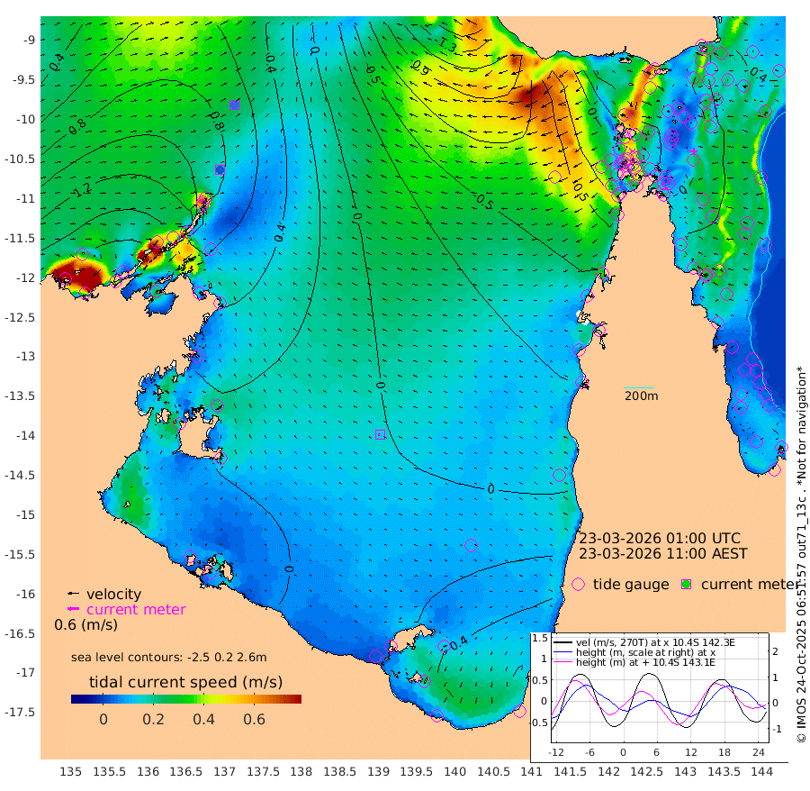2cm/s -62T +3cm/s rms + 7cm/s -42T. ARA-GOC87 57m 14cm/s -98T +3cm/s rms + 2cm/s -2T. ARA-GOC87 60m 6cm/s 38T +2cm/s rms + 3cm/s 61T. ARA-GOC87 47m 29cm Daru 36cm Bobo Island 30cm Meer Island Barge 36cm Bramble Cay 31cm Unnamed Cay 45cm Pearce Cay 36cm Stephens Island 25cm Merrie England Shoals 24cm Mutacomal Reef 28cm Darnley Island Barge 37cm East Cay 26cm Yorke Island Barge 34cm Rennel Island 33cm Aureed Island 31cm Dungeness Reef 15cm Zagai Island 16cm Yam Island 21cm Dauan Island 5cm Saibai Island 32cm Phipi Reef 26cm Warrior Reef - West -2cm Mabuiag Island Barge 24cm Half Way Island 22cm Coconut Island 25cm Dugong Islet 19cm Poll Island 12cm Kirkcaldie Reef 21cm Suarji Island 7cm Sue Islet 1cm Hawkesbury Island 2cm Alert Patches 5cm Twin Island 2cm Badu Island 4cm St Pauls (Moa Island) 7cm Kubin (Moa Island) -1cm Ince Point -7cm Thursday Island -4cm Nardana Patches 2cm Turtle Head 2cm Round Island -1cm Goods Island -24cm Booby Island -10cm White Rocks Area -73cm Carpentaria 5cm Papou Point -20cm Bampfield Head -35cm Crab Island -25cm Red Wallis Island -4cm Packe Island 24cm Harrington Reef -7cm Herald Camp -9cm Sharp Point -2cm Red Island Point 4cm Possession Island -2cm Alpha Rock 14cm Frederick Point 24cm Wyborn Reef Light 20cm Tetley Island 26cm Triangle Reef 26cm Turtle Head Island 30cm Maclennan Cay 27cm Raine Island 29cm Mcsweeny Reef 25cm Collette Reef 22cm Shadwell Reef 29cm Hannibal Island 38cm Round Point -62cm Vrilya Point 26cm Cape Grenville 35cm Hicks Island 35cm Sir Charles Hardy Island 9cm Harvey Island 26cm Kay Reef 33cm Rocky Island 30cm Chapman Island 25cm Ham Reef 26cm Jubilee Reef 24cm Night Island 23cm Unnamed Reef No. 3 32cm Morris Island 26cm 1st 3 Mile Opening 26cm Creech Reef 34cm Fife Island 38cm Eden Reef 25cm Stanley Island 39cm Normanby River 184cm Yabooma Island 220cm Hutchison River 183cm Elcho Island 181cm North West Crocodile Island 99cm Cape Wessel 149cm Stevens Island 88cm Guluwuru Island 140cm Hopeful Bay 118cm Auster Point 120cm Two Island Bay 169cm Cadell Strait -35cm Mallison Island 92cm Melville Bay (Gove Harbour) 90cm Truant Island 55cm Cape Arnhem 45cm Cape Grey 41cm Hawk Island 13cm Milner Bay (Groote Eylandt) 16cm Cape Beatrice -16cm West Island -25cm Centre Island 26cm Mornington Island 22cm West Wellesley Islands 77cm Bountiful Island 91cm Albert River Mouth 91cm Sweers Island 88cm Karumba 25cm Nassau River Offshore 7cm Christmas Creek -11cm Archer River -21cm Boyd Point -6cm Weipa (Humbug Point) -51cm Pennefather River -43cm Cullen Point