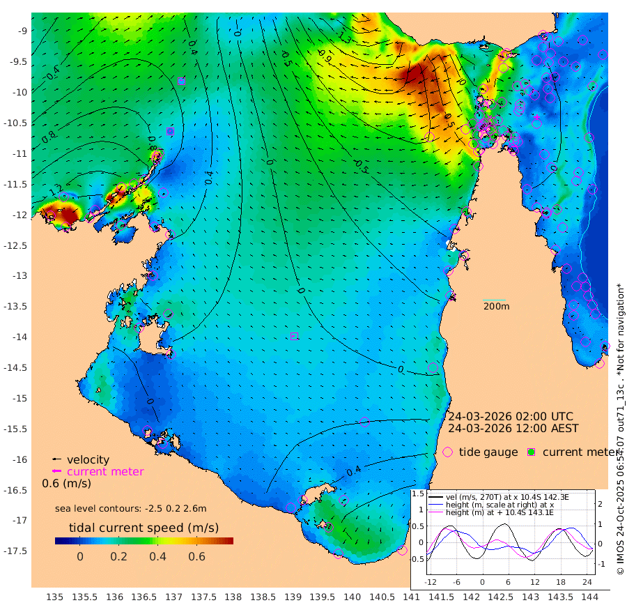 6cm/s -35T +3cm/s rms + 7cm/s -42T. ARA-GOC87 57m 16cm/s -93T +3cm/s rms + 2cm/s -2T. ARA-GOC87 60m 10cm/s 15T +2cm/s rms + 3cm/s 61T. ARA-GOC87 47m 8cm Daru 13cm Bobo Island 5cm Meer Island Barge 6cm Bramble Cay 1cm Unnamed Cay 15cm Pearce Cay 5cm Stephens Island -8cm Merrie England Shoals -3cm Mutacomal Reef 3cm Darnley Island Barge 8cm East Cay 4cm Yorke Island Barge 6cm Rennel Island 11cm Aureed Island 12cm Dungeness Reef 15cm Zagai Island 10cm Yam Island 37cm Dauan Island 21cm Saibai Island 44cm Phipi Reef 28cm Warrior Reef - West -3cm Mabuiag Island Barge -4cm Half Way Island 2cm Coconut Island -1cm Dugong Islet 4cm Poll Island -7cm Kirkcaldie Reef 12cm Suarji Island -5cm Sue Islet -30cm Hawkesbury Island -13cm Alert Patches -11cm Twin Island -17cm Badu Island -5cm St Pauls (Moa Island) -15cm Kubin (Moa Island) -15cm Ince Point -24cm Thursday Island -19cm Nardana Patches -18cm Turtle Head -19cm Round Island -29cm Goods Island -55cm Booby Island -45cm White Rocks Area -96cm Carpentaria -7cm Papou Point -52cm Bampfield Head -58cm Crab Island -54cm Red Wallis Island -29cm Packe Island -5cm Harrington Reef -32cm Herald Camp -6cm Sharp Point -23cm Red Island Point -12cm Possession Island -15cm Alpha Rock -6cm Frederick Point -1cm Wyborn Reef Light -2cm Tetley Island 6cm Triangle Reef -8cm Turtle Head Island 4cm Maclennan Cay 3cm Raine Island 1cm Mcsweeny Reef -1cm Collette Reef 0cm Shadwell Reef -1cm Hannibal Island 5cm Round Point -85cm Vrilya Point -4cm Cape Grenville 7cm Hicks Island 8cm Sir Charles Hardy Island 0cm Harvey Island -5cm Kay Reef 7cm Rocky Island 5cm Chapman Island 1cm Ham Reef 1cm Jubilee Reef 1cm Night Island -2cm Unnamed Reef No. 3 5cm Morris Island 1cm 1st 3 Mile Opening 0cm Creech Reef 7cm Fife Island 8cm Eden Reef -4cm Stanley Island 5cm Normanby River 147cm Yabooma Island 185cm Hutchison River 154cm Elcho Island 152cm North West Crocodile Island 81cm Cape Wessel 122cm Stevens Island 82cm Guluwuru Island 116cm Hopeful Bay 95cm Auster Point 99cm Two Island Bay 146cm Cadell Strait -16cm Mallison Island 85cm Melville Bay (Gove Harbour) 81cm Truant Island 55cm Cape Arnhem 47cm Cape Grey 48cm Hawk Island 25cm Milner Bay (Groote Eylandt) 28cm Cape Beatrice 1cm West Island -6cm Centre Island 54cm Mornington Island 47cm West Wellesley Islands 104cm Bountiful Island 132cm Albert River Mouth 133cm Sweers Island 126cm Karumba 41cm Nassau River Offshore 14cm Christmas Creek -17cm Archer River -30cm Boyd Point -17cm Weipa (Humbug Point) -63cm Pennefather River -59cm Cullen Point