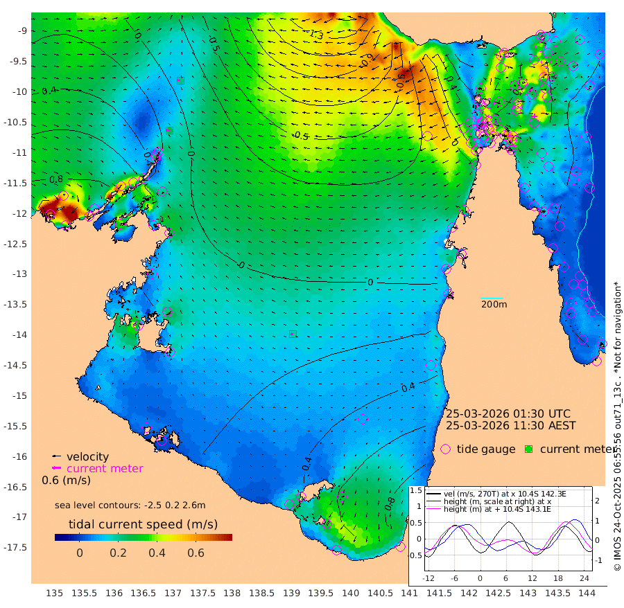 26cm/s -86T +3cm/s rms + 7cm/s -42T. ARA-GOC87 57m 18cm/s -106T +3cm/s rms + 2cm/s -2T. ARA-GOC87 60m 21cm/s -85T +2cm/s rms + 3cm/s 61T. ARA-GOC87 47m -18cm Daru -22cm Bobo Island -28cm Meer Island Barge -29cm Bramble Cay -31cm Unnamed Cay -19cm Pearce Cay -31cm Stephens Island -40cm Merrie England Shoals -26cm Mutacomal Reef -36cm Darnley Island Barge -26cm East Cay -30cm Yorke Island Barge -20cm Rennel Island -18cm Aureed Island -3cm Dungeness Reef 13cm Zagai Island 13cm Yam Island 65cm Dauan Island 43cm Saibai Island 73cm Phipi Reef 32cm Warrior Reef - West 35cm Mabuiag Island Barge -32cm Half Way Island -13cm Coconut Island -24cm Dugong Islet 0cm Poll Island -13cm Kirkcaldie Reef 30cm Suarji Island -12cm Sue Islet 35cm Hawkesbury Island 14cm Alert Patches 8cm Twin Island 48cm Badu Island 17cm St Pauls (Moa Island) 35cm Kubin (Moa Island) 21cm Ince Point 21cm Thursday Island 24cm Nardana Patches 38cm Turtle Head 38cm Round Island 40cm Goods Island 26cm Booby Island 33cm White Rocks Area -29cm Carpentaria 8cm Papou Point 23cm Bampfield Head 12cm Crab Island 24cm Red Wallis Island 35cm Packe Island -26cm Harrington Reef 37cm Herald Camp 1cm Sharp Point 23cm Red Island Point 20cm Possession Island -5cm Alpha Rock -5cm Frederick Point -23cm Wyborn Reef Light -19cm Tetley Island -15cm Triangle Reef -36cm Turtle Head Island -22cm Maclennan Cay -18cm Raine Island -28cm Mcsweeny Reef -30cm Collette Reef -25cm Shadwell Reef -35cm Hannibal Island -28cm Round Point -18cm Vrilya Point -33cm Cape Grenville -24cm Hicks Island -22cm Sir Charles Hardy Island -10cm Harvey Island -34cm Kay Reef -19cm Rocky Island -17cm Chapman Island -23cm Ham Reef -25cm Jubilee Reef -21cm Night Island -23cm Unnamed Reef No. 3 -23cm Morris Island -22cm 1st 3 Mile Opening -25cm Creech Reef -21cm Fife Island -27cm Eden Reef -32cm Stanley Island -32cm Normanby River 90cm Yabooma Island 111cm Hutchison River 95cm Elcho Island 97cm North West Crocodile Island 12cm Cape Wessel 55cm Stevens Island -6cm Guluwuru Island 58cm Hopeful Bay 31cm Auster Point 26cm Two Island Bay 50cm Cadell Strait -145cm Mallison Island 14cm Melville Bay (Gove Harbour) 5cm Truant Island 3cm Cape Arnhem 10cm Cape Grey 24cm Hawk Island 15cm Milner Bay (Groote Eylandt) 25cm Cape Beatrice 16cm West Island 13cm Centre Island 71cm Mornington Island 64cm West Wellesley Islands 120cm Bountiful Island 148cm Albert River Mouth 143cm Sweers Island 148cm Karumba 70cm Nassau River Offshore 49cm Christmas Creek 26cm Archer River 13cm Boyd Point 34cm Weipa (Humbug Point) -15cm Pennefather River 3cm Cullen Point