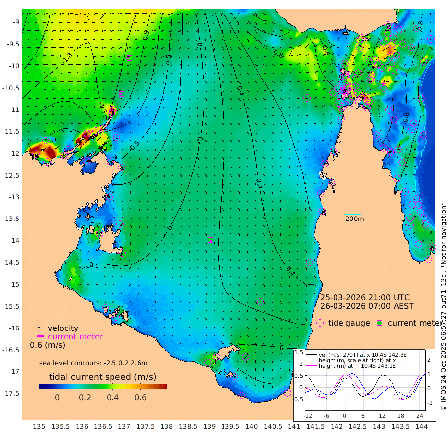 24cm/s -97T +3cm/s rms + 7cm/s -42T. ARA-GOC87 57m 34cm/s 164T +3cm/s rms + 2cm/s -2T. ARA-GOC87 60m 36cm/s -102T +2cm/s rms + 3cm/s 61T. ARA-GOC87 47m 105cm Daru 91cm Bobo Island 70cm Meer Island Barge 87cm Bramble Cay 110cm Unnamed Cay 96cm Pearce Cay 101cm Stephens Island 117cm Merrie England Shoals 118cm Mutacomal Reef 94cm Darnley Island Barge 75cm East Cay 98cm Yorke Island Barge 106cm Rennel Island 95cm Aureed Island 103cm Dungeness Reef 70cm Zagai Island 83cm Yam Island 49cm Dauan Island 46cm Saibai Island 58cm Phipi Reef 76cm Warrior Reef - West 60cm Mabuiag Island Barge 110cm Half Way Island 100cm Coconut Island 117cm Dugong Islet 97cm Poll Island 111cm Kirkcaldie Reef 93cm Suarji Island 97cm Sue Islet 83cm Hawkesbury Island 108cm Alert Patches 101cm Twin Island 69cm Badu Island 95cm St Pauls (Moa Island) 80cm Kubin (Moa Island) 94cm Ince Point 94cm Thursday Island 92cm Nardana Patches 92cm Turtle Head 73cm Round Island 86cm Goods Island 89cm Booby Island 87cm White Rocks Area 92cm Carpentaria 76cm Papou Point 85cm Bampfield Head 71cm Crab Island 90cm Red Wallis Island 95cm Packe Island 121cm Harrington Reef 87cm Herald Camp 28cm Sharp Point 74cm Red Island Point 82cm Possession Island 98cm Alpha Rock 107cm Frederick Point 108cm Wyborn Reef Light 105cm Tetley Island 67cm Triangle Reef 114cm Turtle Head Island 75cm Maclennan Cay 56cm Raine Island 103cm Mcsweeny Reef 97cm Collette Reef 75cm Shadwell Reef 104cm Hannibal Island 92cm Round Point 83cm Vrilya Point 94cm Cape Grenville 78cm Hicks Island 85cm Sir Charles Hardy Island 28cm Harvey Island 86cm Kay Reef 66cm Rocky Island 61cm Chapman Island 60cm Ham Reef 65cm Jubilee Reef 65cm Night Island 65cm Unnamed Reef No. 3 70cm Morris Island 67cm 1st 3 Mile Opening 70cm Creech Reef 67cm Fife Island 70cm Eden Reef 78cm Stanley Island 76cm Normanby River -188cm Yabooma Island -220cm Hutchison River -199cm Elcho Island -194cm North West Crocodile Island -128cm Cape Wessel -174cm Stevens Island -106cm Guluwuru Island -161cm Hopeful Bay -141cm Auster Point -147cm Two Island Bay -189cm Cadell Strait -28cm Mallison Island -104cm Melville Bay (Gove Harbour) -107cm Truant Island -69cm Cape Arnhem -54cm Cape Grey -49cm Hawk Island -44cm Milner Bay (Groote Eylandt) -27cm Cape Beatrice 5cm West Island 2cm Centre Island 1cm Mornington Island 12cm West Wellesley Islands -17cm Bountiful Island -75cm Albert River Mouth -84cm Sweers Island -60cm Karumba 40cm Nassau River Offshore 67cm Christmas Creek 67cm Archer River 71cm Boyd Point 68cm Weipa (Humbug Point) 72cm Pennefather River 74cm Cullen Point