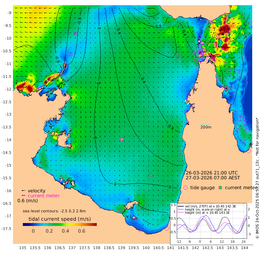 9cm/s -135T +3cm/s rms + 7cm/s -42T. ARA-GOC87 57m 38cm/s 163T +3cm/s rms + 2cm/s -2T. ARA-GOC87 60m 21cm/s -113T +2cm/s rms + 3cm/s 61T. ARA-GOC87 47m 131cm Daru 125cm Bobo Island 106cm Meer Island Barge 125cm Bramble Cay 142cm Unnamed Cay 135cm Pearce Cay 139cm Stephens Island 151cm Merrie England Shoals 143cm Mutacomal Reef 132cm Darnley Island Barge 114cm East Cay 130cm Yorke Island Barge 136cm Rennel Island 125cm Aureed Island 123cm Dungeness Reef 73cm Zagai Island 86cm Yam Island 33cm Dauan Island 31cm Saibai Island 42cm Phipi Reef 78cm Warrior Reef - West 42cm Mabuiag Island Barge 141cm Half Way Island 120cm Coconut Island 143cm Dugong Islet 108cm Poll Island 124cm Kirkcaldie Reef 85cm Suarji Island 106cm Sue Islet 72cm Hawkesbury Island 101cm Alert Patches 100cm Twin Island 53cm Badu Island 88cm St Pauls (Moa Island) 71cm Kubin (Moa Island) 84cm Ince Point 82cm Thursday Island 79cm Nardana Patches 78cm Turtle Head 56cm Round Island 72cm Goods Island 70cm Booby Island 70cm White Rocks Area 73cm Carpentaria 74cm Papou Point 64cm Bampfield Head 54cm Crab Island 73cm Red Wallis Island 83cm Packe Island 147cm Harrington Reef 69cm Herald Camp 21cm Sharp Point 66cm Red Island Point 73cm Possession Island 97cm Alpha Rock 117cm Frederick Point 132cm Wyborn Reef Light 125cm Tetley Island 94cm Triangle Reef 146cm Turtle Head Island 107cm Maclennan Cay 86cm Raine Island 135cm Mcsweeny Reef 128cm Collette Reef 104cm Shadwell Reef 140cm Hannibal Island 131cm Round Point 67cm Vrilya Point 128cm Cape Grenville 114cm Hicks Island 121cm Sir Charles Hardy Island 39cm Harvey Island 121cm Kay Reef 99cm Rocky Island 93cm Chapman Island 92cm Ham Reef 98cm Jubilee Reef 94cm Night Island 97cm Unnamed Reef No. 3 105cm Morris Island 97cm 1st 3 Mile Opening 104cm Creech Reef 104cm Fife Island 113cm Eden Reef 113cm Stanley Island 119cm Normanby River -132cm Yabooma Island -151cm Hutchison River -144cm Elcho Island -143cm North West Crocodile Island -74cm Cape Wessel -117cm Stevens Island -44cm Guluwuru Island -111cm Hopeful Bay -89cm Auster Point -89cm Two Island Bay -108cm Cadell Strait 55cm Mallison Island -54cm Melville Bay (Gove Harbour) -53cm Truant Island -35cm Cape Arnhem -37cm Cape Grey -43cm Hawk Island -56cm Milner Bay (Groote Eylandt) -42cm Cape Beatrice -30cm West Island -36cm Centre Island -31cm Mornington Island -20cm West Wellesley Islands -53cm Bountiful Island -117cm Albert River Mouth -131cm Sweers Island -103cm Karumba 17cm Nassau River Offshore 52cm Christmas Creek 56cm Archer River 62cm Boyd Point 56cm Weipa (Humbug Point) 61cm Pennefather River 57cm Cullen Point