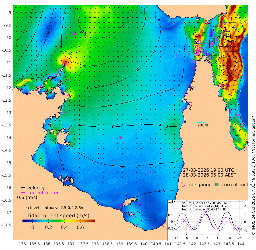 36cm/s 115T +3cm/s rms + 7cm/s -42T. ARA-GOC87 57m 25cm/s 157T +3cm/s rms + 2cm/s -2T. ARA-GOC87 60m 28cm/s 113T +2cm/s rms + 3cm/s 61T. ARA-GOC87 47m 13cm Daru 29cm Bobo Island 85cm Meer Island Barge 73cm Bramble Cay 45cm Unnamed Cay 48cm Pearce Cay 59cm Stephens Island 50cm Merrie England Shoals 16cm Mutacomal Reef 68cm Darnley Island Barge 85cm East Cay 43cm Yorke Island Barge 28cm Rennel Island 31cm Aureed Island 4cm Dungeness Reef -35cm Zagai Island -36cm Yam Island -52cm Dauan Island -44cm Saibai Island -65cm Phipi Reef -39cm Warrior Reef - West -44cm Mabuiag Island Barge 33cm Half Way Island 2cm Coconut Island 20cm Dugong Islet -18cm Poll Island -12cm Kirkcaldie Reef -55cm Suarji Island -13cm Sue Islet 23cm Hawkesbury Island -37cm Alert Patches -33cm Twin Island -1cm Badu Island -48cm St Pauls (Moa Island) 0cm Kubin (Moa Island) -31cm Ince Point -22cm Thursday Island -27cm Nardana Patches -7cm Turtle Head -7cm Round Island 23cm Goods Island 35cm Booby Island 23cm White Rocks Area 43cm Carpentaria -34cm Papou Point 32cm Bampfield Head 23cm Crab Island 28cm Red Wallis Island 11cm Packe Island 7cm Harrington Reef 19cm Herald Camp -28cm Sharp Point -6cm Red Island Point -28cm Possession Island -28cm Alpha Rock -16cm Frederick Point 11cm Wyborn Reef Light 1cm Tetley Island 63cm Triangle Reef 27cm Turtle Head Island 75cm Maclennan Cay 85cm Raine Island 46cm Mcsweeny Reef 53cm Collette Reef 72cm Shadwell Reef 62cm Hannibal Island 75cm Round Point 34cm Vrilya Point 73cm Cape Grenville 77cm Hicks Island 91cm Sir Charles Hardy Island 22cm Harvey Island 89cm Kay Reef 87cm Rocky Island 95cm Chapman Island 93cm Ham Reef 90cm Jubilee Reef 76cm Night Island 92cm Unnamed Reef No. 3 91cm Morris Island 89cm 1st 3 Mile Opening 92cm Creech Reef 88cm Fife Island 117cm Eden Reef 97cm Stanley Island 104cm Normanby River 67cm Yabooma Island 75cm Hutchison River 57cm Elcho Island 46cm North West Crocodile Island 80cm Cape Wessel 67cm Stevens Island 99cm Guluwuru Island 65cm Hopeful Bay 70cm Auster Point 80cm Two Island Bay 107cm Cadell Strait 211cm Mallison Island 73cm Melville Bay (Gove Harbour) 84cm Truant Island 50cm Cape Arnhem 8cm Cape Grey -17cm Hawk Island -59cm Milner Bay (Groote Eylandt) -66cm Cape Beatrice -105cm West Island -108cm Centre Island -110cm Mornington Island -103cm West Wellesley Islands -120cm Bountiful Island -168cm Albert River Mouth -178cm Sweers Island -167cm Karumba -58cm Nassau River Offshore -13cm Christmas Creek 22cm Archer River 32cm Boyd Point 34cm Weipa (Humbug Point) 26cm Pennefather River 31cm Cullen Point