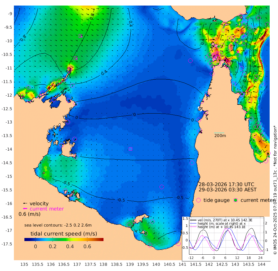 30cm/s 120T +3cm/s rms + 7cm/s -42T. ARA-GOC87 57m 7cm/s 74T +3cm/s rms + 2cm/s -2T. ARA-GOC87 60m 31cm/s 116T +2cm/s rms + 3cm/s 61T. ARA-GOC87 47m -117cm Daru -106cm Bobo Island -31cm Meer Island Barge -62cm Bramble Cay -97cm Unnamed Cay -97cm Pearce Cay -88cm Stephens Island -101cm Merrie England Shoals -119cm Mutacomal Reef -72cm Darnley Island Barge -40cm East Cay -89cm Yorke Island Barge -107cm Rennel Island -100cm Aureed Island -110cm Dungeness Reef -91cm Zagai Island -96cm Yam Island -48cm Dauan Island -37cm Saibai Island -79cm Phipi Reef -98cm Warrior Reef - West -30cm Mabuiag Island Barge -105cm Half Way Island -111cm Coconut Island -114cm Dugong Islet -107cm Poll Island -115cm Kirkcaldie Reef -108cm Suarji Island -96cm Sue Islet 40cm Hawkesbury Island -91cm Alert Patches -92cm Twin Island 25cm Badu Island -92cm St Pauls (Moa Island) -2cm Kubin (Moa Island) -60cm Ince Point -39cm Thursday Island -45cm Nardana Patches -16cm Turtle Head 11cm Round Island 35cm Goods Island 64cm Booby Island 46cm White Rocks Area 71cm Carpentaria -72cm Papou Point 69cm Bampfield Head 49cm Crab Island 50cm Red Wallis Island 7cm Packe Island -131cm Harrington Reef 42cm Herald Camp -37cm Sharp Point -13cm Red Island Point -51cm Possession Island -89cm Alpha Rock -107cm Frederick Point -111cm Wyborn Reef Light -110cm Tetley Island -33cm Triangle Reef -109cm Turtle Head Island -35cm Maclennan Cay -8cm Raine Island -90cm Mcsweeny Reef -77cm Collette Reef -35cm Shadwell Reef -84cm Hannibal Island -65cm Round Point 52cm Vrilya Point -58cm Cape Grenville -46cm Hicks Island -32cm Sir Charles Hardy Island -19cm Harvey Island -35cm Kay Reef -19cm Rocky Island -4cm Chapman Island -3cm Ham Reef -14cm Jubilee Reef -24cm Night Island -9cm Unnamed Reef No. 3 -22cm Morris Island -12cm 1st 3 Mile Opening -17cm Creech Reef -30cm Fife Island -9cm Eden Reef -22cm Stanley Island -28cm Normanby River 130cm Yabooma Island 134cm Hutchison River 123cm Elcho Island 113cm North West Crocodile Island 98cm Cape Wessel 111cm Stevens Island 78cm Guluwuru Island 110cm Hopeful Bay 99cm Auster Point 106cm Two Island Bay 121cm Cadell Strait 97cm Mallison Island 67cm Melville Bay (Gove Harbour) 77cm Truant Island 42cm Cape Arnhem 8cm Cape Grey -12cm Hawk Island -33cm Milner Bay (Groote Eylandt) -52cm Cape Beatrice -89cm West Island -86cm Centre Island -119cm Mornington Island -119cm West Wellesley Islands -116cm Bountiful Island -134cm Albert River Mouth -137cm Sweers Island -140cm Karumba -90cm Nassau River Offshore -54cm Christmas Creek 1cm Archer River 20cm Boyd Point 27cm Weipa (Humbug Point) 20cm Pennefather River 49cm Cullen Point
