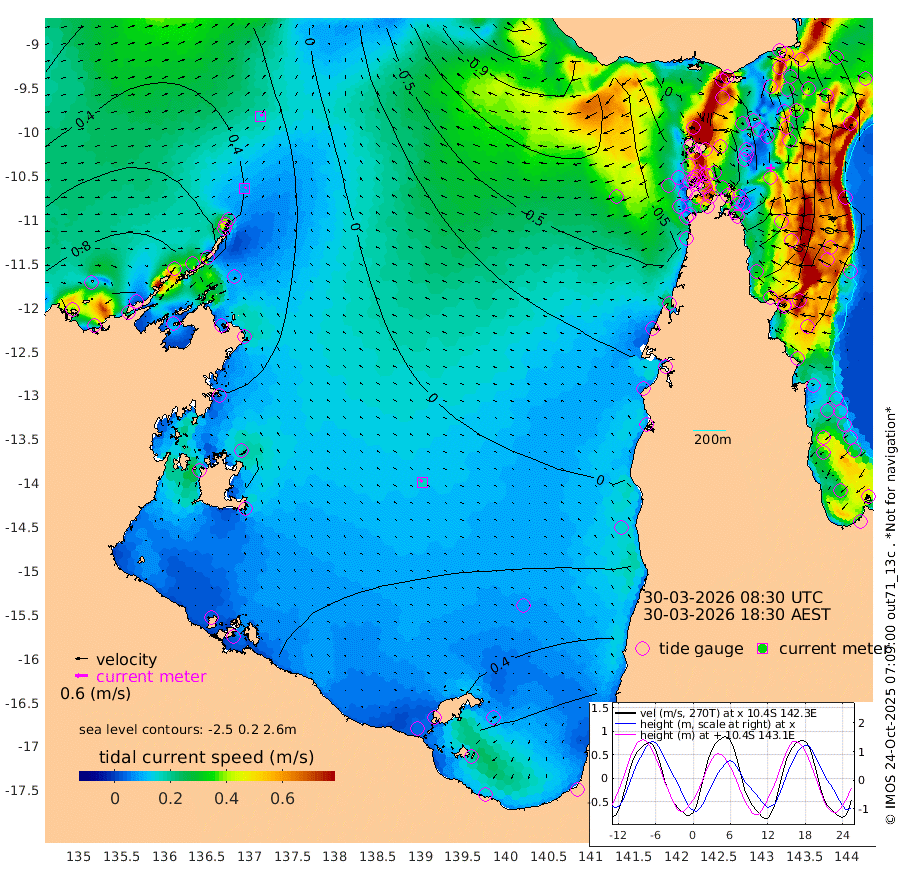 9cm/s 55T +3cm/s rms + 7cm/s -42T. ARA-GOC87 57m 17cm/s -50T +3cm/s rms + 2cm/s -2T. ARA-GOC87 60m 15cm/s 57T +2cm/s rms + 3cm/s 61T. ARA-GOC87 47m -46cm Daru -30cm Bobo Island 38cm Meer Island Barge 29cm Bramble Cay -10cm Unnamed Cay -11cm Pearce Cay 4cm Stephens Island 3cm Merrie England Shoals -41cm Mutacomal Reef 8cm Darnley Island Barge 44cm East Cay -22cm Yorke Island Barge -26cm Rennel Island -28cm Aureed Island -59cm Dungeness Reef -109cm Zagai Island -116cm Yam Island -136cm Dauan Island -135cm Saibai Island -115cm Phipi Reef -113cm Warrior Reef - West -134cm Mabuiag Island Barge -31cm Half Way Island -59cm Coconut Island -52cm Dugong Islet -90cm Poll Island -84cm Kirkcaldie Reef -120cm Suarji Island -94cm Sue Islet -114cm Hawkesbury Island -117cm Alert Patches -119cm Twin Island -113cm Badu Island -140cm St Pauls (Moa Island) -118cm Kubin (Moa Island) -124cm Ince Point -123cm Thursday Island -124cm Nardana Patches -105cm Turtle Head -109cm Round Island -91cm Goods Island -93cm Booby Island -88cm White Rocks Area -98cm Carpentaria -119cm Papou Point -102cm Bampfield Head -72cm Crab Island -94cm Red Wallis Island -102cm Packe Island -60cm Harrington Reef -111cm Herald Camp -46cm Sharp Point -92cm Red Island Point -110cm Possession Island -108cm Alpha Rock -95cm Frederick Point -57cm Wyborn Reef Light -72cm Tetley Island 13cm Triangle Reef -56cm Turtle Head Island 26cm Maclennan Cay 53cm Raine Island -9cm Mcsweeny Reef 7cm Collette Reef 32cm Shadwell Reef 14cm Hannibal Island 31cm Round Point -70cm Vrilya Point 30cm Cape Grenville 33cm Hicks Island 29cm Sir Charles Hardy Island 8cm Harvey Island 49cm Kay Reef 50cm Rocky Island 60cm Chapman Island 52cm Ham Reef 49cm Jubilee Reef 43cm Night Island 55cm Unnamed Reef No. 3 55cm Morris Island 49cm 1st 3 Mile Opening 51cm Creech Reef 58cm Fife Island 77cm Eden Reef 59cm Stanley Island 66cm Normanby River 77cm Yabooma Island 91cm Hutchison River 85cm Elcho Island 77cm North West Crocodile Island 40cm Cape Wessel 72cm Stevens Island 42cm Guluwuru Island 79cm Hopeful Bay 52cm Auster Point 43cm Two Island Bay 77cm Cadell Strait 77cm Mallison Island 42cm Melville Bay (Gove Harbour) 37cm Truant Island 27cm Cape Arnhem 28cm Cape Grey 32cm Hawk Island 33cm Milner Bay (Groote Eylandt) 37cm Cape Beatrice 24cm West Island 27cm Centre Island 74cm Mornington Island 76cm West Wellesley Islands 92cm Bountiful Island 137cm Albert River Mouth 144cm Sweers Island 126cm Karumba 57cm Nassau River Offshore 28cm Christmas Creek 7cm Archer River -27cm Boyd Point -15cm Weipa (Humbug Point) -30cm Pennefather River -64cm Cullen Point