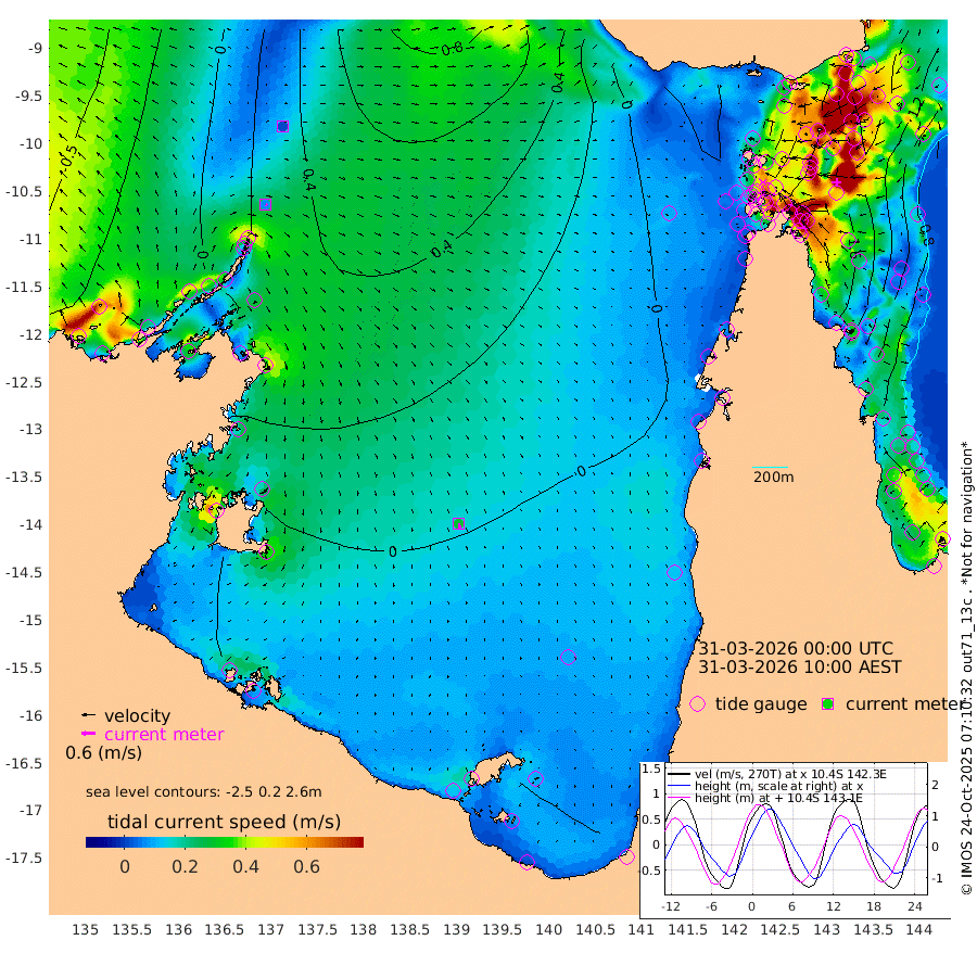 8cm/s 117T +3cm/s rms + 7cm/s -42T. ARA-GOC87 57m 28cm/s 169T +3cm/s rms + 2cm/s -2T. ARA-GOC87 60m 1cm/s -92T +2cm/s rms + 3cm/s 61T. ARA-GOC87 47m 173cm Daru 174cm Bobo Island 99cm Meer Island Barge 135cm Bramble Cay 162cm Unnamed Cay 175cm Pearce Cay 160cm Stephens Island 164cm Merrie England Shoals 177cm Mutacomal Reef 143cm Darnley Island Barge 114cm East Cay 155cm Yorke Island Barge 168cm Rennel Island 163cm Aureed Island 160cm Dungeness Reef 127cm Zagai Island 136cm Yam Island 77cm Dauan Island 69cm Saibai Island 85cm Phipi Reef 136cm Warrior Reef - West 63cm Mabuiag Island Barge 168cm Half Way Island 163cm Coconut Island 174cm Dugong Islet 153cm Poll Island 157cm Kirkcaldie Reef 131cm Suarji Island 140cm Sue Islet 51cm Hawkesbury Island 123cm Alert Patches 134cm Twin Island 38cm Badu Island 128cm St Pauls (Moa Island) 72cm Kubin (Moa Island) 100cm Ince Point 83cm Thursday Island 86cm Nardana Patches 65cm Turtle Head 46cm Round Island 33cm Goods Island 5cm Booby Island 20cm White Rocks Area -12cm Carpentaria 113cm Papou Point 7cm Bampfield Head -5cm Crab Island 19cm Red Wallis Island 63cm Packe Island 189cm Harrington Reef 33cm Herald Camp 32cm Sharp Point 61cm Red Island Point 89cm Possession Island 130cm Alpha Rock 158cm Frederick Point 176cm Wyborn Reef Light 173cm Tetley Island 99cm Triangle Reef 185cm Turtle Head Island 103cm Maclennan Cay 67cm Raine Island 155cm Mcsweeny Reef 138cm Collette Reef 93cm Shadwell Reef 150cm Hannibal Island 143cm Round Point -12cm Vrilya Point 124cm Cape Grenville 115cm Hicks Island 114cm Sir Charles Hardy Island 39cm Harvey Island 105cm Kay Reef 85cm Rocky Island 74cm Chapman Island 72cm Ham Reef 80cm Jubilee Reef 81cm Night Island 76cm Unnamed Reef No. 3 89cm Morris Island 70cm 1st 3 Mile Opening 82cm Creech Reef 97cm Fife Island 90cm Eden Reef 87cm Stanley Island 107cm Normanby River 12cm Yabooma Island 28cm Hutchison River 5cm Elcho Island 8cm North West Crocodile Island 36cm Cape Wessel 23cm Stevens Island 54cm Guluwuru Island 10cm Hopeful Bay 24cm Auster Point 34cm Two Island Bay 54cm Cadell Strait 85cm Mallison Island 42cm Melville Bay (Gove Harbour) 47cm Truant Island 28cm Cape Arnhem 6cm Cape Grey -1cm Hawk Island -42cm Milner Bay (Groote Eylandt) -33cm Cape Beatrice -51cm West Island -63cm Centre Island -41cm Mornington Island -41cm West Wellesley Islands -54cm Bountiful Island -96cm Albert River Mouth -106cm Sweers Island -81cm Karumba -9cm Nassau River Offshore 8cm Christmas Creek -1cm Archer River 6cm Boyd Point -3cm Weipa (Humbug Point) -7cm Pennefather River -8cm Cullen Point