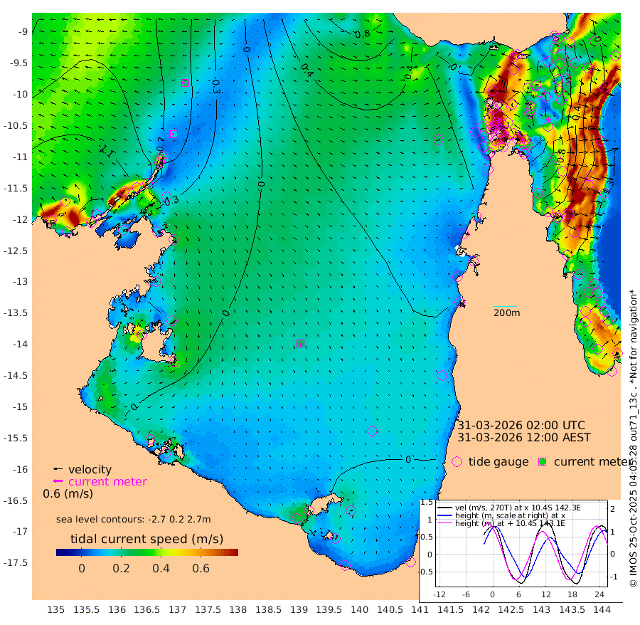 14cm/s -87T +3cm/s rms + 7cm/s -42T. ARA-GOC87 57m 25cm/s 170T +3cm/s rms + 2cm/s -2T. ARA-GOC87 60m 23cm/s -88T +2cm/s rms + 3cm/s 61T. ARA-GOC87 47m 106cm Daru 92cm Bobo Island 0cm Meer Island Barge 22cm Bramble Cay 64cm Unnamed Cay 76cm Pearce Cay 55cm Stephens Island 55cm Merrie England Shoals 97cm Mutacomal Reef 45cm Darnley Island Barge 1cm East Cay 76cm Yorke Island Barge 84cm Rennel Island 86cm Aureed Island 112cm Dungeness Reef 140cm Zagai Island 146cm Yam Island 149cm Dauan Island 139cm Saibai Island 146cm Phipi Reef 155cm Warrior Reef - West 120cm Mabuiag Island Barge 88cm Half Way Island 110cm Coconut Island 108cm Dugong Islet 131cm Poll Island 130cm Kirkcaldie Reef 144cm Suarji Island 128cm Sue Islet 73cm Hawkesbury Island 136cm Alert Patches 141cm Twin Island 78cm Badu Island 156cm St Pauls (Moa Island) 94cm Kubin (Moa Island) 126cm Ince Point 113cm Thursday Island 117cm Nardana Patches 91cm Turtle Head 70cm Round Island 53cm Goods Island 34cm Booby Island 35cm White Rocks Area 25cm Carpentaria 130cm Papou Point 20cm Bampfield Head 30cm Crab Island 46cm Red Wallis Island 79cm Packe Island 119cm Harrington Reef 59cm Herald Camp 55cm Sharp Point 84cm Red Island Point 105cm Possession Island 126cm Alpha Rock 132cm Frederick Point 104cm Wyborn Reef Light 115cm Tetley Island 20cm Triangle Reef 105cm Turtle Head Island 10cm Maclennan Cay -25cm Raine Island 63cm Mcsweeny Reef 44cm Collette Reef 4cm Shadwell Reef 42cm Hannibal Island 21cm Round Point 27cm Vrilya Point 15cm Cape Grenville 10cm Hicks Island 7cm Sir Charles Hardy Island 7cm Harvey Island -11cm Kay Reef -18cm Rocky Island -31cm Chapman Island -25cm Ham Reef -18cm Jubilee Reef -9cm Night Island -24cm Unnamed Reef No. 3 -19cm Morris Island -23cm 1st 3 Mile Opening -18cm Creech Reef -14cm Fife Island -37cm Eden Reef -24cm Stanley Island -23cm Normanby River -127cm Yabooma Island -130cm Hutchison River -125cm Elcho Island -112cm North West Crocodile Island -75cm Cape Wessel -111cm Stevens Island -52cm Guluwuru Island -116cm Hopeful Bay -89cm Auster Point -79cm Two Island Bay -90cm Cadell Strait -64cm Mallison Island -54cm Melville Bay (Gove Harbour) -56cm Truant Island -33cm Cape Arnhem -28cm Cape Grey -21cm Hawk Island -31cm Milner Bay (Groote Eylandt) -17cm Cape Beatrice -1cm West Island -6cm Centre Island 3cm Mornington Island -3cm West Wellesley Islands -21cm Bountiful Island -42cm Albert River Mouth -57cm Sweers Island -24cm Karumba 17cm Nassau River Offshore 25cm Christmas Creek 9cm Archer River 21cm Boyd Point 8cm Weipa (Humbug Point) 20cm Pennefather River 25cm Cullen Point