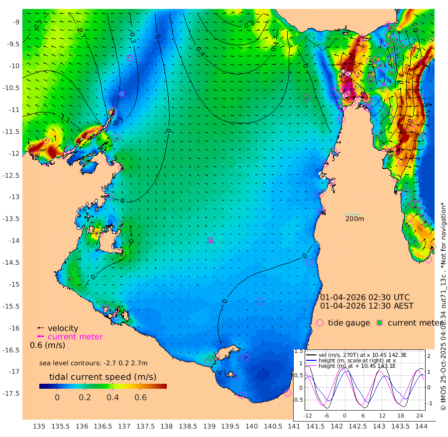 9cm/s -65T +3cm/s rms + 7cm/s -42T. ARA-GOC87 57m 20cm/s 167T +3cm/s rms + 2cm/s -2T. ARA-GOC87 60m 16cm/s -72T +2cm/s rms + 3cm/s 61T. ARA-GOC87 47m 86cm Daru 77cm Bobo Island -6cm Meer Island Barge 10cm Bramble Cay 47cm Unnamed Cay 60cm Pearce Cay 41cm Stephens Island 37cm Merrie England Shoals 77cm Mutacomal Reef 34cm Darnley Island Barge -7cm East Cay 62cm Yorke Island Barge 66cm Rennel Island 73cm Aureed Island 91cm Dungeness Reef 121cm Zagai Island 123cm Yam Island 126cm Dauan Island 120cm Saibai Island 118cm Phipi Reef 133cm Warrior Reef - West 94cm Mabuiag Island Barge 70cm Half Way Island 89cm Coconut Island 87cm Dugong Islet 108cm Poll Island 105cm Kirkcaldie Reef 118cm Suarji Island 108cm Sue Islet 33cm Hawkesbury Island 105cm Alert Patches 112cm Twin Island 38cm Badu Island 128cm St Pauls (Moa Island) 61cm Kubin (Moa Island) 95cm Ince Point 80cm Thursday Island 85cm Nardana Patches 54cm Turtle Head 37cm Round Island 13cm Goods Island -6cm Booby Island -5cm White Rocks Area -1cm Carpentaria 106cm Papou Point -15cm Bampfield Head -4cm Crab Island 8cm Red Wallis Island 42cm Packe Island 97cm Harrington Reef 24cm Herald Camp 47cm Sharp Point 50cm Red Island Point 77cm Possession Island 103cm Alpha Rock 107cm Frederick Point 84cm Wyborn Reef Light 94cm Tetley Island 12cm Triangle Reef 83cm Turtle Head Island 1cm Maclennan Cay -32cm Raine Island 47cm Mcsweeny Reef 30cm Collette Reef -5cm Shadwell Reef 28cm Hannibal Island 9cm Round Point -4cm Vrilya Point 3cm Cape Grenville 0cm Hicks Island -2cm Sir Charles Hardy Island 4cm Harvey Island -21cm Kay Reef -25cm Rocky Island -37cm Chapman Island -30cm Ham Reef -24cm Jubilee Reef -15cm Night Island -31cm Unnamed Reef No. 3 -27cm Morris Island -31cm 1st 3 Mile Opening -25cm Creech Reef -20cm Fife Island -43cm Eden Reef -32cm Stanley Island -30cm Normanby River -116cm Yabooma Island -117cm Hutchison River -111cm Elcho Island -101cm North West Crocodile Island -54cm Cape Wessel -94cm Stevens Island -29cm Guluwuru Island -99cm Hopeful Bay -72cm Auster Point -58cm Two Island Bay -69cm Cadell Strait -20cm Mallison Island -35cm Melville Bay (Gove Harbour) -35cm Truant Island -18cm Cape Arnhem -18cm Cape Grey -11cm Hawk Island -21cm Milner Bay (Groote Eylandt) -11cm Cape Beatrice 2cm West Island -2cm Centre Island 1cm Mornington Island -5cm West Wellesley Islands -25cm Bountiful Island -40cm Albert River Mouth -50cm Sweers Island -26cm Karumba 4cm Nassau River Offshore 7cm Christmas Creek -13cm Archer River 0cm Boyd Point -17cm Weipa (Humbug Point) -4cm Pennefather River -1cm Cullen Point