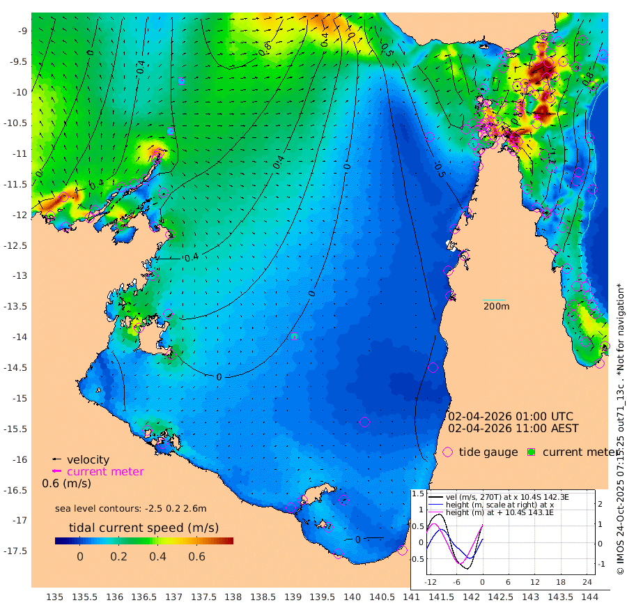 12cm/s 81T +3cm/s rms + 7cm/s -42T. ARA-GOC87 57m 16cm/s 179T +3cm/s rms + 2cm/s -2T. ARA-GOC87 60m 11cm/s 48T +2cm/s rms + 3cm/s 61T. ARA-GOC87 47m 130cm Daru 135cm Bobo Island 65cm Meer Island Barge 96cm Bramble Cay 117cm Unnamed Cay 130cm Pearce Cay 114cm Stephens Island 115cm Merrie England Shoals 132cm Mutacomal Reef 101cm Darnley Island Barge 76cm East Cay 114cm Yorke Island Barge 122cm Rennel Island 124cm Aureed Island 117cm Dungeness Reef 105cm Zagai Island 106cm Yam Island 67cm Dauan Island 63cm Saibai Island 67cm Phipi Reef 114cm Warrior Reef - West 38cm Mabuiag Island Barge 118cm Half Way Island 122cm Coconut Island 124cm Dugong Islet 115cm Poll Island 108cm Kirkcaldie Reef 98cm Suarji Island 103cm Sue Islet -9cm Hawkesbury Island 77cm Alert Patches 91cm Twin Island -9cm Badu Island 89cm St Pauls (Moa Island) 24cm Kubin (Moa Island) 57cm Ince Point 36cm Thursday Island 42cm Nardana Patches 15cm Turtle Head 1cm Round Island -23cm Goods Island -58cm Booby Island -40cm White Rocks Area -68cm Carpentaria 76cm Papou Point -50cm Bampfield Head -60cm Crab Island -40cm Red Wallis Island 10cm Packe Island 135cm Harrington Reef -22cm Herald Camp 24cm Sharp Point 10cm Red Island Point 46cm Possession Island 94cm Alpha Rock 112cm Frederick Point 135cm Wyborn Reef Light 133cm Tetley Island 70cm Triangle Reef 128cm Turtle Head Island 66cm Maclennan Cay 36cm Raine Island 111cm Mcsweeny Reef 97cm Collette Reef 60cm Shadwell Reef 106cm Hannibal Island 100cm Round Point -72cm Vrilya Point 82cm Cape Grenville 77cm Hicks Island 77cm Sir Charles Hardy Island 26cm Harvey Island 66cm Kay Reef 52cm Rocky Island 45cm Chapman Island 42cm Ham Reef 47cm Jubilee Reef 50cm Night Island 44cm Unnamed Reef No. 3 54cm Morris Island 35cm 1st 3 Mile Opening 46cm Creech Reef 64cm Fife Island 54cm Eden Reef 49cm Stanley Island 67cm Normanby River 59cm Yabooma Island 88cm Hutchison River 62cm Elcho Island 61cm North West Crocodile Island 78cm Cape Wessel 76cm Stevens Island 94cm Guluwuru Island 60cm Hopeful Bay 65cm Auster Point 76cm Two Island Bay 105cm Cadell Strait 137cm Mallison Island 82cm Melville Bay (Gove Harbour) 87cm Truant Island 58cm Cape Arnhem 29cm Cape Grey 27cm Hawk Island -13cm Milner Bay (Groote Eylandt) -10cm Cape Beatrice -36cm West Island -47cm Centre Island -19cm Mornington Island -23cm West Wellesley Islands -22cm Bountiful Island -35cm Albert River Mouth -42cm Sweers Island -33cm Karumba -12cm Nassau River Offshore -13cm Christmas Creek -35cm Archer River -31cm Boyd Point -40cm Weipa (Humbug Point) -54cm Pennefather River -54cm Cullen Point