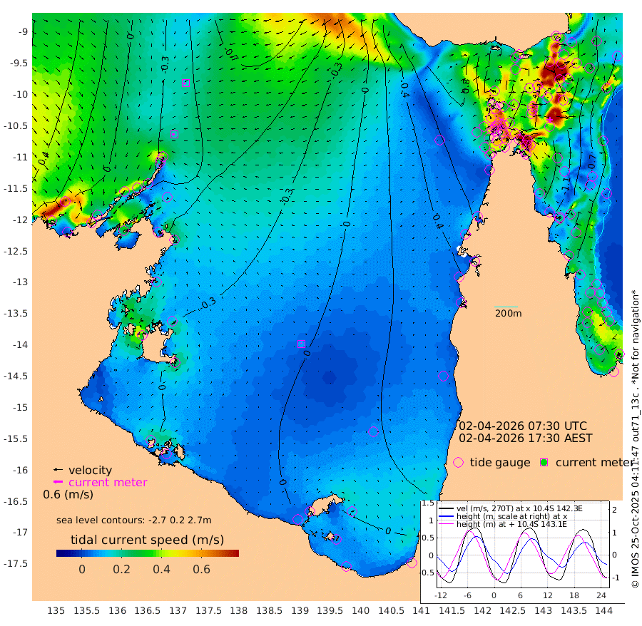 17cm/s -99T +3cm/s rms + 7cm/s -42T. ARA-GOC87 57m 8cm/s -33T +3cm/s rms + 2cm/s -2T. ARA-GOC87 60m 15cm/s -114T +2cm/s rms + 3cm/s 61T. ARA-GOC87 47m -133cm Daru -138cm Bobo Island -63cm Meer Island Barge -89cm Bramble Cay -116cm Unnamed Cay -126cm Pearce Cay -111cm Stephens Island -110cm Merrie England Shoals -130cm Mutacomal Reef -102cm Darnley Island Barge -70cm East Cay -117cm Yorke Island Barge -120cm Rennel Island -131cm Aureed Island -123cm Dungeness Reef -125cm Zagai Island -116cm Yam Island -79cm Dauan Island -80cm Saibai Island -83cm Phipi Reef -126cm Warrior Reef - West -49cm Mabuiag Island Barge -116cm Half Way Island -132cm Coconut Island -125cm Dugong Islet -123cm Poll Island -114cm Kirkcaldie Reef -124cm Suarji Island -114cm Sue Islet 36cm Hawkesbury Island -89cm Alert Patches -101cm Twin Island 12cm Badu Island -103cm St Pauls (Moa Island) -15cm Kubin (Moa Island) -64cm Ince Point -41cm Thursday Island -48cm Nardana Patches -15cm Turtle Head 5cm Round Island 32cm Goods Island 66cm Booby Island 46cm White Rocks Area 59cm Carpentaria -86cm Papou Point 44cm Bampfield Head 71cm Crab Island 53cm Red Wallis Island 3cm Packe Island -140cm Harrington Reef 37cm Herald Camp -29cm Sharp Point -2cm Red Island Point -54cm Possession Island -102cm Alpha Rock -119cm Frederick Point -136cm Wyborn Reef Light -135cm Tetley Island -67cm Triangle Reef -126cm Turtle Head Island -64cm Maclennan Cay -34cm Raine Island -111cm Mcsweeny Reef -96cm Collette Reef -58cm Shadwell Reef -105cm Hannibal Island -90cm Round Point 83cm Vrilya Point -76cm Cape Grenville -72cm Hicks Island -76cm Sir Charles Hardy Island -24cm Harvey Island -60cm Kay Reef -48cm Rocky Island -40cm Chapman Island -36cm Ham Reef -44cm Jubilee Reef -46cm Night Island -39cm Unnamed Reef No. 3 -49cm Morris Island -38cm 1st 3 Mile Opening -44cm Creech Reef -54cm Fife Island -47cm Eden Reef -43cm Stanley Island -56cm Normanby River -12cm Yabooma Island -39cm Hutchison River -18cm Elcho Island -11cm North West Crocodile Island -60cm Cape Wessel -38cm Stevens Island -90cm Guluwuru Island -23cm Hopeful Bay -42cm Auster Point -40cm Two Island Bay -58cm Cadell Strait -134cm Mallison Island -76cm Melville Bay (Gove Harbour) -82cm Truant Island -61cm Cape Arnhem -41cm Cape Grey -32cm Hawk Island -11cm Milner Bay (Groote Eylandt) -5cm Cape Beatrice 8cm West Island 15cm Centre Island 4cm Mornington Island 4cm West Wellesley Islands -4cm Bountiful Island 20cm Albert River Mouth 18cm Sweers Island 28cm Karumba 11cm Nassau River Offshore 15cm Christmas Creek 43cm Archer River 36cm Boyd Point 46cm Weipa (Humbug Point) 65cm Pennefather River 64cm Cullen Point