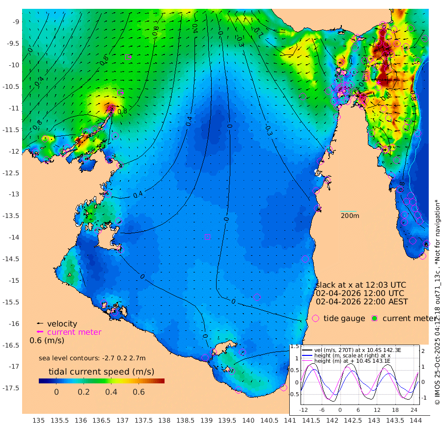 33cm/s 101T +3cm/s rms + 7cm/s -42T. ARA-GOC87 57m 7cm/s -31T +3cm/s rms + 2cm/s -2T. ARA-GOC87 60m 35cm/s 90T +2cm/s rms + 3cm/s 61T. ARA-GOC87 47m 96cm Daru 110cm Bobo Island 78cm Meer Island Barge 102cm Bramble Cay 100cm Unnamed Cay 114cm Pearce Cay 104cm Stephens Island 108cm Merrie England Shoals 96cm Mutacomal Reef 93cm Darnley Island Barge 93cm East Cay 88cm Yorke Island Barge 97cm Rennel Island 97cm Aureed Island 79cm Dungeness Reef 45cm Zagai Island 34cm Yam Island -11cm Dauan Island -13cm Saibai Island 22cm Phipi Reef 42cm Warrior Reef - West -17cm Mabuiag Island Barge 88cm Half Way Island 93cm Coconut Island 78cm Dugong Islet 61cm Poll Island 62cm Kirkcaldie Reef 40cm Suarji Island 47cm Sue Islet -35cm Hawkesbury Island 30cm Alert Patches 35cm Twin Island -16cm Badu Island 20cm St Pauls (Moa Island) -17cm Kubin (Moa Island) 6cm Ince Point -6cm Thursday Island -4cm Nardana Patches -9cm Turtle Head -21cm Round Island -26cm Goods Island -52cm Booby Island -35cm White Rocks Area -77cm Carpentaria 24cm Papou Point -39cm Bampfield Head -39cm Crab Island -47cm Red Wallis Island -20cm Packe Island 95cm Harrington Reef -54cm Herald Camp -2cm Sharp Point 1cm Red Island Point 14cm Possession Island 30cm Alpha Rock 61cm Frederick Point 95cm Wyborn Reef Light 86cm Tetley Island 69cm Triangle Reef 100cm Turtle Head Island 71cm Maclennan Cay 70cm Raine Island 96cm Mcsweeny Reef 94cm Collette Reef 74cm Shadwell Reef 106cm Hannibal Island 109cm Round Point -52cm Vrilya Point 88cm Cape Grenville 88cm Hicks Island 76cm Sir Charles Hardy Island 26cm Harvey Island 87cm Kay Reef 76cm Rocky Island 77cm Chapman Island 66cm Ham Reef 71cm Jubilee Reef 68cm Night Island 72cm Unnamed Reef No. 3 81cm Morris Island 66cm 1st 3 Mile Opening 72cm Creech Reef 86cm Fife Island 90cm Eden Reef 76cm Stanley Island 91cm Normanby River 117cm Yabooma Island 159cm Hutchison River 125cm Elcho Island 115cm North West Crocodile Island 97cm Cape Wessel 130cm Stevens Island 112cm Guluwuru Island 113cm Hopeful Bay 105cm Auster Point 92cm Two Island Bay 153cm Cadell Strait 139cm Mallison Island 104cm Melville Bay (Gove Harbour) 108cm Truant Island 72cm Cape Arnhem 50cm Cape Grey 39cm Hawk Island 8cm Milner Bay (Groote Eylandt) 1cm Cape Beatrice -39cm West Island -37cm Centre Island 4cm Mornington Island -3cm West Wellesley Islands 6cm Bountiful Island 19cm Albert River Mouth 26cm Sweers Island 20cm Karumba 4cm Nassau River Offshore -2cm Christmas Creek -7cm Archer River -26cm Boyd Point -23cm Weipa (Humbug Point) -23cm Pennefather River -55cm Cullen Point