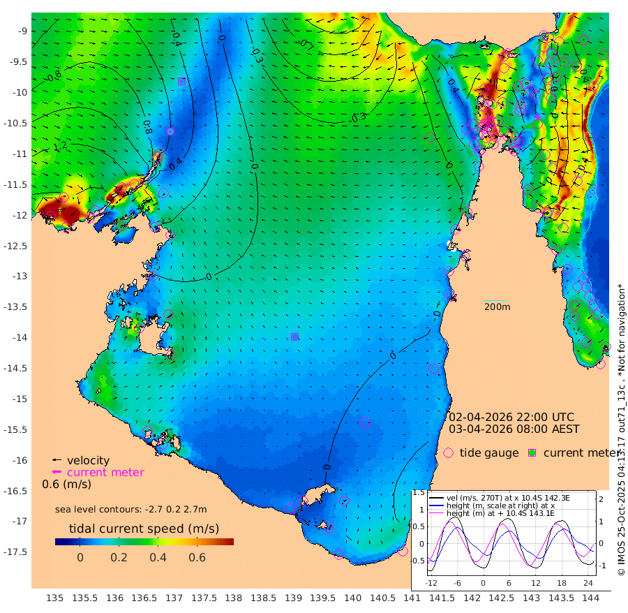 10cm/s -116T +3cm/s rms + 7cm/s -42T. ARA-GOC87 57m 7cm/s -121T +3cm/s rms + 2cm/s -2T. ARA-GOC87 60m 9cm/s -136T +2cm/s rms + 3cm/s 61T. ARA-GOC87 47m -8cm Daru -9cm Bobo Island 33cm Meer Island Barge 38cm Bramble Cay 23cm Unnamed Cay 7cm Pearce Cay 19cm Stephens Island 29cm Merrie England Shoals 9cm Mutacomal Reef 14cm Darnley Island Barge 40cm East Cay -2cm Yorke Island Barge 8cm Rennel Island -10cm Aureed Island -13cm Dungeness Reef -50cm Zagai Island -36cm Yam Island -47cm Dauan Island -53cm Saibai Island -47cm Phipi Reef -48cm Warrior Reef - West -27cm Mabuiag Island Barge 2cm Half Way Island -18cm Coconut Island -4cm Dugong Islet -26cm Poll Island -24cm Kirkcaldie Reef -37cm Suarji Island -33cm Sue Islet 43cm Hawkesbury Island -26cm Alert Patches -30cm Twin Island 22cm Badu Island -42cm St Pauls (Moa Island) 18cm Kubin (Moa Island) -18cm Ince Point -9cm Thursday Island -11cm Nardana Patches 14cm Turtle Head 25cm Round Island 45cm Goods Island 48cm Booby Island 57cm White Rocks Area 13cm Carpentaria -34cm Papou Point 51cm Bampfield Head 26cm Crab Island 43cm Red Wallis Island 31cm Packe Island -13cm Harrington Reef 41cm Herald Camp -25cm Sharp Point 4cm Red Island Point -15cm Possession Island -21cm Alpha Rock -23cm Frederick Point 0cm Wyborn Reef Light -8cm Tetley Island 24cm Triangle Reef -4cm Turtle Head Island 33cm Maclennan Cay 45cm Raine Island 15cm Mcsweeny Reef 20cm Collette Reef 33cm Shadwell Reef 26cm Hannibal Island 43cm Round Point 14cm Vrilya Point 40cm Cape Grenville 37cm Hicks Island 45cm Sir Charles Hardy Island 9cm Harvey Island 52cm Kay Reef 48cm Rocky Island 52cm Chapman Island 46cm Ham Reef 44cm Jubilee Reef 37cm Night Island 47cm Unnamed Reef No. 3 50cm Morris Island 46cm 1st 3 Mile Opening 43cm Creech Reef 45cm Fife Island 61cm Eden Reef 53cm Stanley Island 59cm Normanby River 158cm Yabooma Island 163cm Hutchison River 145cm Elcho Island 141cm North West Crocodile Island 69cm Cape Wessel 122cm Stevens Island 37cm Guluwuru Island 119cm Hopeful Bay 86cm Auster Point 84cm Two Island Bay 100cm Cadell Strait -3cm Mallison Island 46cm Melville Bay (Gove Harbour) 44cm Truant Island 17cm Cape Arnhem 9cm Cape Grey 5cm Hawk Island -7cm Milner Bay (Groote Eylandt) -5cm Cape Beatrice -26cm West Island -36cm Centre Island -19cm Mornington Island -12cm West Wellesley Islands 20cm Bountiful Island 16cm Albert River Mouth 8cm Sweers Island 8cm Karumba 4cm Nassau River Offshore 9cm Christmas Creek 21cm Archer River 17cm Boyd Point 36cm Weipa (Humbug Point) 2cm Pennefather River 20cm Cullen Point