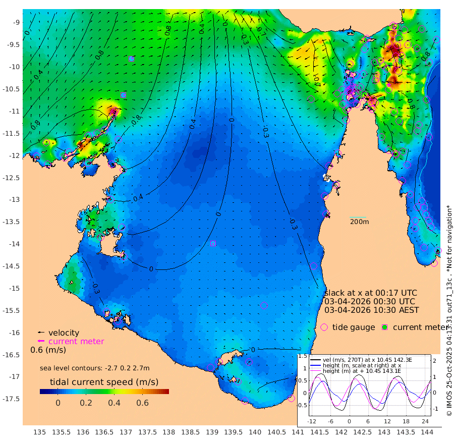 11cm/s 85T +3cm/s rms + 7cm/s -42T. ARA-GOC87 57m 12cm/s -154T +3cm/s rms + 2cm/s -2T. ARA-GOC87 60m 13cm/s 62T +2cm/s rms + 3cm/s 61T. ARA-GOC87 47m 98cm Daru 103cm Bobo Island 61cm Meer Island Barge 89cm Bramble Cay 98cm Unnamed Cay 103cm Pearce Cay 93cm Stephens Island 99cm Merrie England Shoals 105cm Mutacomal Reef 81cm Darnley Island Barge 73cm East Cay 85cm Yorke Island Barge 95cm Rennel Island 92cm Aureed Island 83cm Dungeness Reef 64cm Zagai Island 64cm Yam Island 33cm Dauan Island 28cm Saibai Island 35cm Phipi Reef 72cm Warrior Reef - West 11cm Mabuiag Island Barge 87cm Half Way Island 87cm Coconut Island 88cm Dugong Islet 76cm Poll Island 67cm Kirkcaldie Reef 57cm Suarji Island 62cm Sue Islet -17cm Hawkesbury Island 40cm Alert Patches 50cm Twin Island -15cm Badu Island 44cm St Pauls (Moa Island) 7cm Kubin (Moa Island) 25cm Ince Point 8cm Thursday Island 13cm Nardana Patches 0cm Turtle Head -9cm Round Island -24cm Goods Island -56cm Booby Island -35cm White Rocks Area -81cm Carpentaria 38cm Papou Point -48cm Bampfield Head -62cm Crab Island -42cm Red Wallis Island -1cm Packe Island 94cm Harrington Reef -31cm Herald Camp 7cm Sharp Point -8cm Red Island Point 16cm Possession Island 59cm Alpha Rock 72cm Frederick Point 104cm Wyborn Reef Light 99cm Tetley Island 62cm Triangle Reef 90cm Turtle Head Island 60cm Maclennan Cay 43cm Raine Island 90cm Mcsweeny Reef 82cm Collette Reef 57cm Shadwell Reef 92cm Hannibal Island 94cm Round Point -80cm Vrilya Point 76cm Cape Grenville 71cm Hicks Island 74cm Sir Charles Hardy Island 22cm Harvey Island 69cm Kay Reef 57cm Rocky Island 54cm Chapman Island 47cm Ham Reef 51cm Jubilee Reef 50cm Night Island 50cm Unnamed Reef No. 3 59cm Morris Island 41cm 1st 3 Mile Opening 49cm Creech Reef 66cm Fife Island 64cm Eden Reef 54cm Stanley Island 71cm Normanby River 139cm Yabooma Island 174cm Hutchison River 141cm Elcho Island 136cm North West Crocodile Island 113cm Cape Wessel 142cm Stevens Island 117cm Guluwuru Island 125cm Hopeful Bay 110cm Auster Point 115cm Two Island Bay 158cm Cadell Strait 148cm Mallison Island 109cm Melville Bay (Gove Harbour) 113cm Truant Island 72cm Cape Arnhem 41cm Cape Grey 38cm Hawk Island -1cm Milner Bay (Groote Eylandt) 0cm Cape Beatrice -37cm West Island -49cm Centre Island -10cm Mornington Island -11cm West Wellesley Islands 9cm Bountiful Island 12cm Albert River Mouth 4cm Sweers Island 5cm Karumba -3cm Nassau River Offshore -10cm Christmas Creek -30cm Archer River -34cm Boyd Point -32cm Weipa (Humbug Point) -61cm Pennefather River -60cm Cullen Point