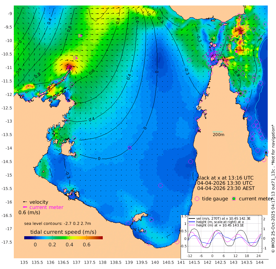 41cm/s 106T +3cm/s rms + 7cm/s -42T. ARA-GOC87 57m 2cm/s 126T +3cm/s rms + 2cm/s -2T. ARA-GOC87 60m 39cm/s 95T +2cm/s rms + 3cm/s 61T. ARA-GOC87 47m 91cm Daru 100cm Bobo Island 55cm Meer Island Barge 76cm Bramble Cay 83cm Unnamed Cay 96cm Pearce Cay 80cm Stephens Island 83cm Merrie England Shoals 87cm Mutacomal Reef 74cm Darnley Island Barge 64cm East Cay 79cm Yorke Island Barge 82cm Rennel Island 86cm Aureed Island 79cm Dungeness Reef 78cm Zagai Island 64cm Yam Island 51cm Dauan Island 51cm Saibai Island 71cm Phipi Reef 78cm Warrior Reef - West 35cm Mabuiag Island Barge 73cm Half Way Island 94cm Coconut Island 70cm Dugong Islet 74cm Poll Island 70cm Kirkcaldie Reef 66cm Suarji Island 68cm Sue Islet 13cm Hawkesbury Island 58cm Alert Patches 62cm Twin Island 34cm Badu Island 57cm St Pauls (Moa Island) 24cm Kubin (Moa Island) 41cm Ince Point 31cm Thursday Island 34cm Nardana Patches 26cm Turtle Head 23cm Round Island 9cm Goods Island -13cm Booby Island -6cm White Rocks Area -37cm Carpentaria 55cm Papou Point 8cm Bampfield Head -7cm Crab Island -12cm Red Wallis Island 16cm Packe Island 85cm Harrington Reef -7cm Herald Camp 11cm Sharp Point 31cm Red Island Point 47cm Possession Island 54cm Alpha Rock 75cm Frederick Point 95cm Wyborn Reef Light 92cm Tetley Island 57cm Triangle Reef 95cm Turtle Head Island 49cm Maclennan Cay 46cm Raine Island 79cm Mcsweeny Reef 75cm Collette Reef 56cm Shadwell Reef 82cm Hannibal Island 81cm Round Point -22cm Vrilya Point 61cm Cape Grenville 63cm Hicks Island 56cm Sir Charles Hardy Island 18cm Harvey Island 57cm Kay Reef 50cm Rocky Island 52cm Chapman Island 43cm Ham Reef 47cm Jubilee Reef 44cm Night Island 46cm Unnamed Reef No. 3 51cm Morris Island 42cm 1st 3 Mile Opening 45cm Creech Reef 53cm Fife Island 55cm Eden Reef 45cm Stanley Island 53cm Normanby River 102cm Yabooma Island 143cm Hutchison River 109cm Elcho Island 98cm North West Crocodile Island 98cm Cape Wessel 121cm Stevens Island 122cm Guluwuru Island 104cm Hopeful Bay 102cm Auster Point 92cm Two Island Bay 150cm Cadell Strait 179cm Mallison Island 108cm Melville Bay (Gove Harbour) 116cm Truant Island 78cm Cape Arnhem 45cm Cape Grey 31cm Hawk Island -13cm Milner Bay (Groote Eylandt) -25cm Cape Beatrice -73cm West Island -70cm Centre Island -40cm Mornington Island -52cm West Wellesley Islands -45cm Bountiful Island -50cm Albert River Mouth -44cm Sweers Island -44cm Karumba -28cm Nassau River Offshore -15cm Christmas Creek -4cm Archer River -10cm Boyd Point -11cm Weipa (Humbug Point) -7cm Pennefather River -24cm Cullen Point