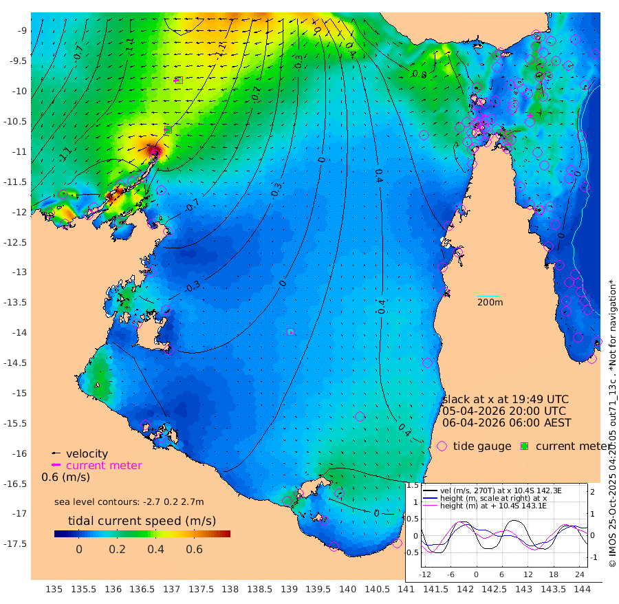34cm/s -89T +3cm/s rms + 7cm/s -42T. ARA-GOC87 57m 15cm/s 164T +3cm/s rms + 2cm/s -2T. ARA-GOC87 60m 38cm/s -100T +2cm/s rms + 3cm/s 61T. ARA-GOC87 47m -16cm Daru -21cm Bobo Island 7cm Meer Island Barge -7cm Bramble Cay -9cm Unnamed Cay -11cm Pearce Cay -3cm Stephens Island -9cm Merrie England Shoals -16cm Mutacomal Reef 0cm Darnley Island Barge 6cm East Cay -5cm Yorke Island Barge -7cm Rennel Island -7cm Aureed Island -2cm Dungeness Reef -17cm Zagai Island -6cm Yam Island -3cm Dauan Island -2cm Saibai Island -1cm Phipi Reef -14cm Warrior Reef - West 16cm Mabuiag Island Barge -1cm Half Way Island -13cm Coconut Island 4cm Dugong Islet -6cm Poll Island 5cm Kirkcaldie Reef 10cm Suarji Island 0cm Sue Islet 58cm Hawkesbury Island 20cm Alert Patches 11cm Twin Island 42cm Badu Island 10cm St Pauls (Moa Island) 38cm Kubin (Moa Island) 25cm Ince Point 38cm Thursday Island 33cm Nardana Patches 48cm Turtle Head 41cm Round Island 66cm Goods Island 87cm Booby Island 77cm White Rocks Area 94cm Carpentaria 6cm Papou Point 74cm Bampfield Head 69cm Crab Island 78cm Red Wallis Island 53cm Packe Island -1cm Harrington Reef 73cm Herald Camp 2cm Sharp Point 44cm Red Island Point 25cm Possession Island 1cm Alpha Rock 1cm Frederick Point -22cm Wyborn Reef Light -22cm Tetley Island 2cm Triangle Reef -10cm Turtle Head Island 14cm Maclennan Cay 13cm Raine Island -4cm Mcsweeny Reef -3cm Collette Reef 6cm Shadwell Reef -6cm Hannibal Island -7cm Round Point 79cm Vrilya Point 7cm Cape Grenville 6cm Hicks Island 14cm Sir Charles Hardy Island 3cm Harvey Island 11cm Kay Reef 13cm Rocky Island 13cm Chapman Island 16cm Ham Reef 13cm Jubilee Reef 12cm Night Island 16cm Unnamed Reef No. 3 13cm Morris Island 21cm 1st 3 Mile Opening 19cm Creech Reef 8cm Fife Island 13cm Eden Reef 18cm Stanley Island 13cm Normanby River -151cm Yabooma Island -190cm Hutchison River -164cm Elcho Island -155cm North West Crocodile Island -127cm Cape Wessel -169cm Stevens Island -134cm Guluwuru Island -146cm Hopeful Bay -131cm Auster Point -136cm Two Island Bay -184cm Cadell Strait -185cm Mallison Island -122cm Melville Bay (Gove Harbour) -129cm Truant Island -85cm Cape Arnhem -52cm Cape Grey -49cm Hawk Island -19cm Milner Bay (Groote Eylandt) -7cm Cape Beatrice 38cm West Island 38cm Centre Island 24cm Mornington Island 34cm West Wellesley Islands 35cm Bountiful Island -13cm Albert River Mouth -12cm Sweers Island -1cm Karumba 45cm Nassau River Offshore 58cm Christmas Creek 60cm Archer River 63cm Boyd Point 68cm Weipa (Humbug Point) 58cm Pennefather River 73cm Cullen Point