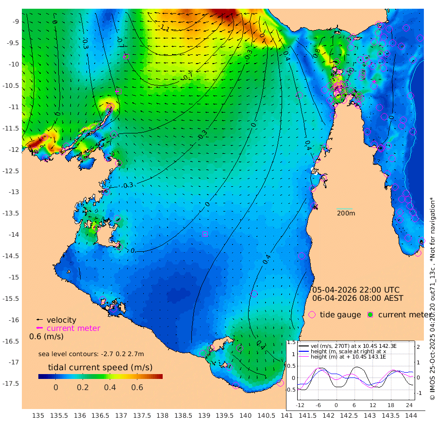 35cm/s -93T +3cm/s rms + 7cm/s -42T. ARA-GOC87 57m 11cm/s -152T +3cm/s rms + 2cm/s -2T. ARA-GOC87 60m 36cm/s -104T +2cm/s rms + 3cm/s 61T. ARA-GOC87 47m 3cm Daru -7cm Bobo Island 14cm Meer Island Barge 13cm Bramble Cay 13cm Unnamed Cay 7cm Pearce Cay 13cm Stephens Island 14cm Merrie England Shoals 8cm Mutacomal Reef 6cm Darnley Island Barge 17cm East Cay 2cm Yorke Island Barge 14cm Rennel Island -1cm Aureed Island 15cm Dungeness Reef -14cm Zagai Island 5cm Yam Island 4cm Dauan Island -10cm Saibai Island 17cm Phipi Reef -6cm Warrior Reef - West 22cm Mabuiag Island Barge 15cm Half Way Island 0cm Coconut Island 18cm Dugong Islet 7cm Poll Island 19cm Kirkcaldie Reef 18cm Suarji Island 1cm Sue Islet 83cm Hawkesbury Island 30cm Alert Patches 19cm Twin Island 68cm Badu Island 18cm St Pauls (Moa Island) 59cm Kubin (Moa Island) 36cm Ince Point 47cm Thursday Island 44cm Nardana Patches 66cm Turtle Head 61cm Round Island 88cm Goods Island 96cm Booby Island 98cm White Rocks Area 60cm Carpentaria 15cm Papou Point 80cm Bampfield Head 74cm Crab Island 86cm Red Wallis Island 70cm Packe Island 13cm Harrington Reef 83cm Herald Camp -1cm Sharp Point 58cm Red Island Point 34cm Possession Island 7cm Alpha Rock 13cm Frederick Point -1cm Wyborn Reef Light -3cm Tetley Island 7cm Triangle Reef 12cm Turtle Head Island 21cm Maclennan Cay 21cm Raine Island 11cm Mcsweeny Reef 9cm Collette Reef 14cm Shadwell Reef 10cm Hannibal Island 15cm Round Point 67cm Vrilya Point 20cm Cape Grenville 19cm Hicks Island 21cm Sir Charles Hardy Island 6cm Harvey Island 22cm Kay Reef 22cm Rocky Island 18cm Chapman Island 18cm Ham Reef 20cm Jubilee Reef 17cm Night Island 19cm Unnamed Reef No. 3 24cm Morris Island 28cm 1st 3 Mile Opening 23cm Creech Reef 17cm Fife Island 23cm Eden Reef 26cm Stanley Island 26cm Normanby River 0cm Yabooma Island -17cm Hutchison River -15cm Elcho Island -6cm North West Crocodile Island -64cm Cape Wessel -44cm Stevens Island -87cm Guluwuru Island -36cm Hopeful Bay -46cm Auster Point -51cm Two Island Bay -64cm Cadell Strait -225cm Mallison Island -67cm Melville Bay (Gove Harbour) -78cm Truant Island -59cm Cape Arnhem -28cm Cape Grey -28cm Hawk Island -9cm Milner Bay (Groote Eylandt) 6cm Cape Beatrice 28cm West Island 21cm Centre Island 35cm Mornington Island 42cm West Wellesley Islands 73cm Bountiful Island 56cm Albert River Mouth 47cm Sweers Island 62cm Karumba 59cm Nassau River Offshore 59cm Christmas Creek 58cm Archer River 52cm Boyd Point 69cm Weipa (Humbug Point) 46cm Pennefather River 60cm Cullen Point
