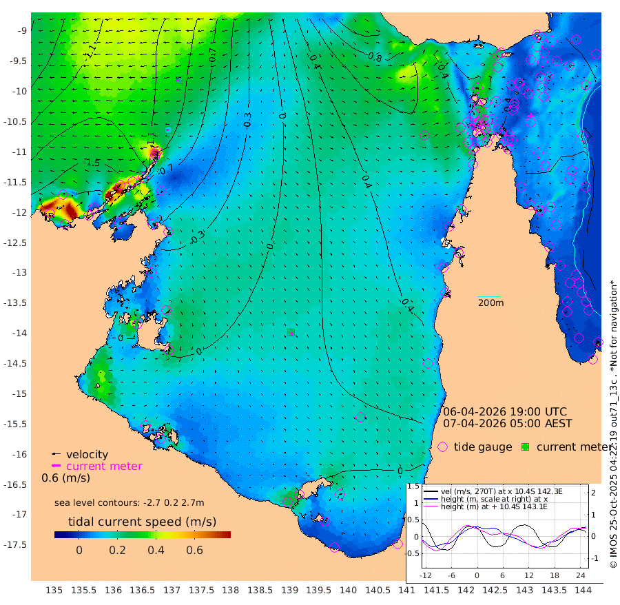 17cm/s -91T +3cm/s rms + 7cm/s -42T. ARA-GOC87 57m 24cm/s 157T +3cm/s rms + 2cm/s -2T. ARA-GOC87 60m 24cm/s -99T +2cm/s rms + 3cm/s 61T. ARA-GOC87 47m 11cm Daru 13cm Bobo Island 25cm Meer Island Barge 16cm Bramble Cay 15cm Unnamed Cay 18cm Pearce Cay 20cm Stephens Island 14cm Merrie England Shoals 11cm Mutacomal Reef 27cm Darnley Island Barge 26cm East Cay 24cm Yorke Island Barge 15cm Rennel Island 25cm Aureed Island 18cm Dungeness Reef 12cm Zagai Island 13cm Yam Island 17cm Dauan Island 27cm Saibai Island 14cm Phipi Reef 16cm Warrior Reef - West 23cm Mabuiag Island Barge 18cm Half Way Island 15cm Coconut Island 22cm Dugong Islet 15cm Poll Island 20cm Kirkcaldie Reef 25cm Suarji Island 25cm Sue Islet 37cm Hawkesbury Island 29cm Alert Patches 25cm Twin Island 26cm Badu Island 22cm St Pauls (Moa Island) 26cm Kubin (Moa Island) 28cm Ince Point 33cm Thursday Island 30cm Nardana Patches 34cm Turtle Head 27cm Round Island 39cm Goods Island 53cm Booby Island 42cm White Rocks Area 77cm Carpentaria 16cm Papou Point 53cm Bampfield Head 41cm Crab Island 51cm Red Wallis Island 39cm Packe Island 21cm Harrington Reef 51cm Herald Camp 8cm Sharp Point 34cm Red Island Point 27cm Possession Island 20cm Alpha Rock 22cm Frederick Point 8cm Wyborn Reef Light 9cm Tetley Island 25cm Triangle Reef 11cm Turtle Head Island 29cm Maclennan Cay 24cm Raine Island 20cm Mcsweeny Reef 22cm Collette Reef 25cm Shadwell Reef 21cm Hannibal Island 17cm Round Point 55cm Vrilya Point 26cm Cape Grenville 22cm Hicks Island 35cm Sir Charles Hardy Island 8cm Harvey Island 29cm Kay Reef 28cm Rocky Island 33cm Chapman Island 34cm Ham Reef 28cm Jubilee Reef 26cm Night Island 34cm Unnamed Reef No. 3 27cm Morris Island 28cm 1st 3 Mile Opening 32cm Creech Reef 27cm Fife Island 30cm Eden Reef 31cm Stanley Island 27cm Normanby River -182cm Yabooma Island -215cm Hutchison River -190cm Elcho Island -186cm North West Crocodile Island -105cm Cape Wessel -172cm Stevens Island -93cm Guluwuru Island -147cm Hopeful Bay -125cm Auster Point -131cm Two Island Bay -172cm Cadell Strait -27cm Mallison Island -92cm Melville Bay (Gove Harbour) -93cm Truant Island -57cm Cape Arnhem -43cm Cape Grey -41cm Hawk Island -32cm Milner Bay (Groote Eylandt) -25cm Cape Beatrice 7cm West Island 10cm Centre Island 0cm Mornington Island 7cm West Wellesley Islands -7cm Bountiful Island -70cm Albert River Mouth -63cm Sweers Island -53cm Karumba 25cm Nassau River Offshore 48cm Christmas Creek 51cm Archer River 56cm Boyd Point 52cm Weipa (Humbug Point) 45cm Pennefather River 57cm Cullen Point