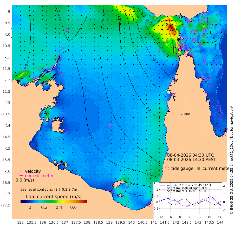 16cm/s 26T +3cm/s rms + 7cm/s -42T. ARA-GOC87 57m 11cm/s -50T +3cm/s rms + 2cm/s -2T. ARA-GOC87 60m 21cm/s 27T +2cm/s rms + 3cm/s 61T. ARA-GOC87 47m -39cm Daru -38cm Bobo Island -37cm Meer Island Barge -40cm Bramble Cay -44cm Unnamed Cay -49cm Pearce Cay -50cm Stephens Island -46cm Merrie England Shoals -42cm Mutacomal Reef -39cm Darnley Island Barge -45cm East Cay -37cm Yorke Island Barge -51cm Rennel Island -41cm Aureed Island -49cm Dungeness Reef -20cm Zagai Island -37cm Yam Island -11cm Dauan Island 1cm Saibai Island -21cm Phipi Reef -18cm Warrior Reef - West -45cm Mabuiag Island Barge -54cm Half Way Island -48cm Coconut Island -54cm Dugong Islet -47cm Poll Island -56cm Kirkcaldie Reef -55cm Suarji Island -35cm Sue Islet -134cm Hawkesbury Island -71cm Alert Patches -67cm Twin Island -104cm Badu Island -61cm St Pauls (Moa Island) -110cm Kubin (Moa Island) -77cm Ince Point -92cm Thursday Island -86cm Nardana Patches -104cm Turtle Head -122cm Round Island -130cm Goods Island -148cm Booby Island -145cm White Rocks Area -130cm Carpentaria -60cm Papou Point -169cm Bampfield Head -124cm Crab Island -141cm Red Wallis Island -126cm Packe Island -64cm Harrington Reef -148cm Herald Camp -5cm Sharp Point -95cm Red Island Point -92cm Possession Island -49cm Alpha Rock -62cm Frederick Point -47cm Wyborn Reef Light -47cm Tetley Island -36cm Triangle Reef -73cm Turtle Head Island -46cm Maclennan Cay -39cm Raine Island -45cm Mcsweeny Reef -39cm Collette Reef -34cm Shadwell Reef -41cm Hannibal Island -49cm Round Point -122cm Vrilya Point -47cm Cape Grenville -47cm Hicks Island -43cm Sir Charles Hardy Island -16cm Harvey Island -43cm Kay Reef -39cm Rocky Island -37cm Chapman Island -37cm Ham Reef -37cm Jubilee Reef -40cm Night Island -39cm Unnamed Reef No. 3 -43cm Morris Island -45cm 1st 3 Mile Opening -43cm Creech Reef -41cm Fife Island -41cm Eden Reef -44cm Stanley Island -47cm Normanby River -8cm Yabooma Island 8cm Hutchison River 11cm Elcho Island 10cm North West Crocodile Island 20cm Cape Wessel 21cm Stevens Island 54cm Guluwuru Island 16cm Hopeful Bay 9cm Auster Point 9cm Two Island Bay 35cm Cadell Strait 154cm Mallison Island 41cm Melville Bay (Gove Harbour) 36cm Truant Island 35cm Cape Arnhem 39cm Cape Grey 42cm Hawk Island 49cm Milner Bay (Groote Eylandt) 51cm Cape Beatrice 50cm West Island 47cm Centre Island 76cm Mornington Island 78cm West Wellesley Islands 94cm Bountiful Island 143cm Albert River Mouth 143cm Sweers Island 119cm Karumba 35cm Nassau River Offshore -6cm Christmas Creek -47cm Archer River -65cm Boyd Point -71cm Weipa (Humbug Point) -79cm Pennefather River -106cm Cullen Point