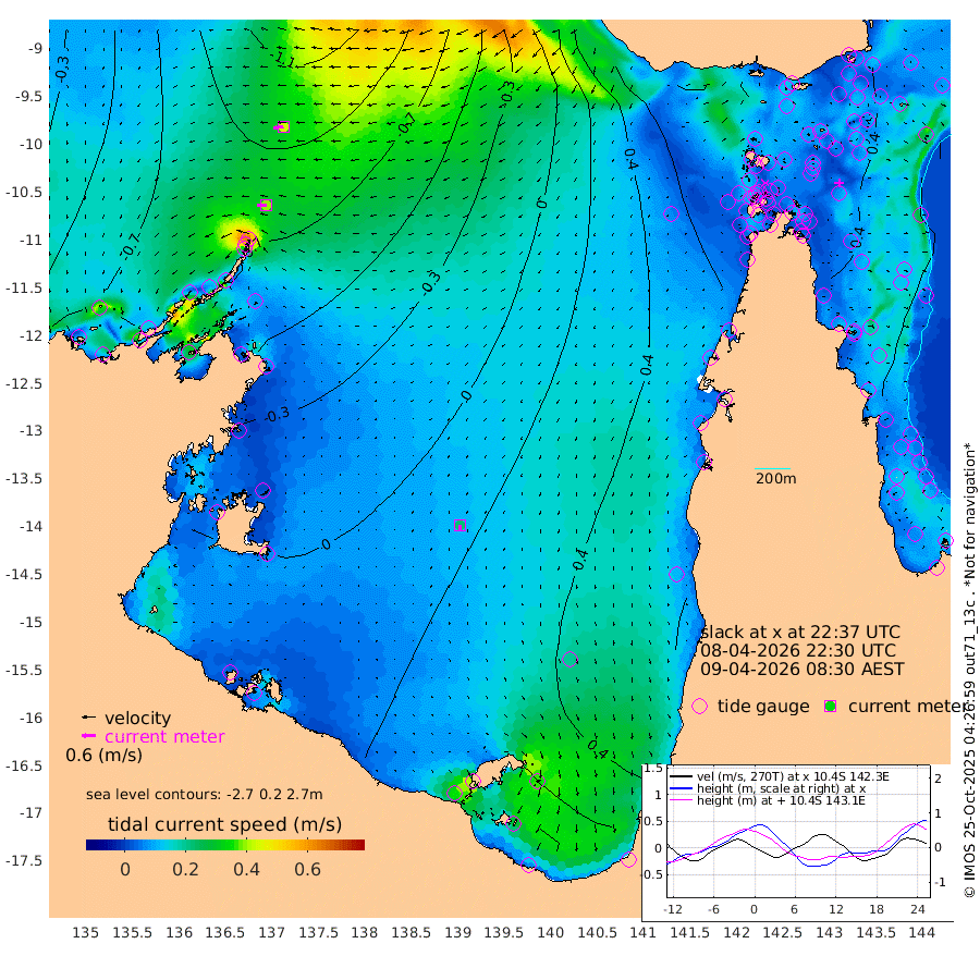 39cm/s -92T +3cm/s rms + 7cm/s -42T. ARA-GOC87 57m 22cm/s -174T +3cm/s rms + 2cm/s -2T. ARA-GOC87 60m 43cm/s -99T +2cm/s rms + 3cm/s 61T. ARA-GOC87 47m 52cm Daru 47cm Bobo Island 30cm Meer Island Barge 37cm Bramble Cay 47cm Unnamed Cay 57cm Pearce Cay 50cm Stephens Island 47cm Merrie England Shoals 54cm Mutacomal Reef 39cm Darnley Island Barge 40cm East Cay 44cm Yorke Island Barge 58cm Rennel Island 53cm Aureed Island 64cm Dungeness Reef 40cm Zagai Island 56cm Yam Island 47cm Dauan Island 34cm Saibai Island 65cm Phipi Reef 54cm Warrior Reef - West 55cm Mabuiag Island Barge 57cm Half Way Island 56cm Coconut Island 65cm Dugong Islet 61cm Poll Island 68cm Kirkcaldie Reef 78cm Suarji Island 51cm Sue Islet 101cm Hawkesbury Island 81cm Alert Patches 75cm Twin Island 82cm Badu Island 72cm St Pauls (Moa Island) 87cm Kubin (Moa Island) 79cm Ince Point 84cm Thursday Island 81cm Nardana Patches 93cm Turtle Head 87cm Round Island 98cm Goods Island 100cm Booby Island 102cm White Rocks Area 69cm Carpentaria 61cm Papou Point 93cm Bampfield Head 78cm Crab Island 99cm Red Wallis Island 100cm Packe Island 72cm Harrington Reef 107cm Herald Camp 17cm Sharp Point 87cm Red Island Point 79cm Possession Island 56cm Alpha Rock 71cm Frederick Point 50cm Wyborn Reef Light 51cm Tetley Island 34cm Triangle Reef 60cm Turtle Head Island 41cm Maclennan Cay 27cm Raine Island 49cm Mcsweeny Reef 42cm Collette Reef 30cm Shadwell Reef 42cm Hannibal Island 45cm Round Point 71cm Vrilya Point 44cm Cape Grenville 41cm Hicks Island 41cm Sir Charles Hardy Island 14cm Harvey Island 37cm Kay Reef 34cm Rocky Island 31cm Chapman Island 29cm Ham Reef 28cm Jubilee Reef 32cm Night Island 32cm Unnamed Reef No. 3 35cm Morris Island 31cm 1st 3 Mile Opening 34cm Creech Reef 37cm Fife Island 30cm Eden Reef 34cm Stanley Island 38cm Normanby River -79cm Yabooma Island -98cm Hutchison River -90cm Elcho Island -79cm North West Crocodile Island -94cm Cape Wessel -106cm Stevens Island -115cm Guluwuru Island -89cm Hopeful Bay -89cm Auster Point -93cm Two Island Bay -117cm Cadell Strait -224cm Mallison Island -93cm Melville Bay (Gove Harbour) -102cm Truant Island -71cm Cape Arnhem -47cm Cape Grey -34cm Hawk Island -29cm Milner Bay (Groote Eylandt) -10cm Cape Beatrice 18cm West Island 14cm Centre Island 35cm Mornington Island 35cm West Wellesley Islands 51cm Bountiful Island 10cm Albert River Mouth 10cm Sweers Island 36cm Karumba 67cm Nassau River Offshore 74cm Christmas Creek 68cm Archer River 64cm Boyd Point 74cm Weipa (Humbug Point) 53cm Pennefather River 71cm Cullen Point