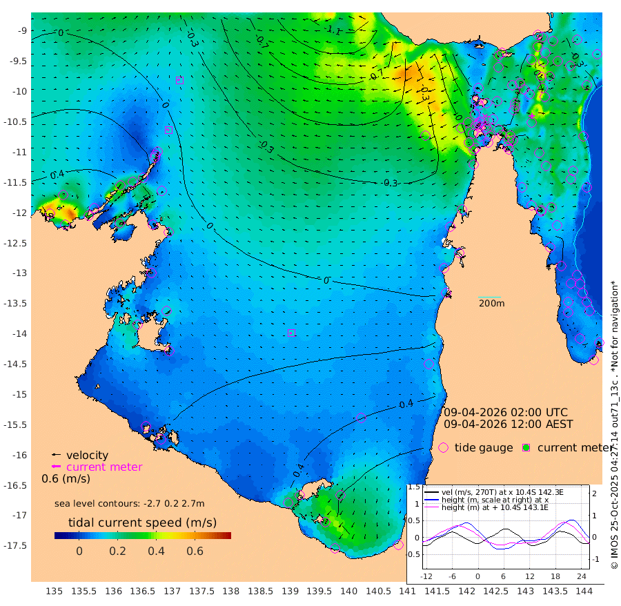 16cm/s -80T +3cm/s rms + 7cm/s -42T. ARA-GOC87 57m 15cm/s -113T +3cm/s rms + 2cm/s -2T. ARA-GOC87 60m 14cm/s -70T +2cm/s rms + 3cm/s 61T. ARA-GOC87 47m 3cm Daru -6cm Bobo Island -25cm Meer Island Barge -24cm Bramble Cay -16cm Unnamed Cay -8cm Pearce Cay -19cm Stephens Island -26cm Merrie England Shoals -10cm Mutacomal Reef -20cm Darnley Island Barge -29cm East Cay -10cm Yorke Island Barge -8cm Rennel Island -7cm Aureed Island 15cm Dungeness Reef 32cm Zagai Island 32cm Yam Island 74cm Dauan Island 55cm Saibai Island 87cm Phipi Reef 48cm Warrior Reef - West 38cm Mabuiag Island Barge -11cm Half Way Island -1cm Coconut Island -3cm Dugong Islet 15cm Poll Island 14cm Kirkcaldie Reef 32cm Suarji Island 13cm Sue Islet 13cm Hawkesbury Island 21cm Alert Patches 16cm Twin Island 30cm Badu Island 30cm St Pauls (Moa Island) 19cm Kubin (Moa Island) 21cm Ince Point 16cm Thursday Island 20cm Nardana Patches 21cm Turtle Head 10cm Round Island 9cm Goods Island -9cm Booby Island -9cm White Rocks Area -56cm Carpentaria 21cm Papou Point -31cm Bampfield Head -10cm Crab Island -15cm Red Wallis Island 3cm Packe Island -8cm Harrington Reef -1cm Herald Camp 12cm Sharp Point 19cm Red Island Point 15cm Possession Island 2cm Alpha Rock 7cm Frederick Point -11cm Wyborn Reef Light -7cm Tetley Island -20cm Triangle Reef -9cm Turtle Head Island -24cm Maclennan Cay -27cm Raine Island -18cm Mcsweeny Reef -21cm Collette Reef -24cm Shadwell Reef -24cm Hannibal Island -29cm Round Point -28cm Vrilya Point -32cm Cape Grenville -24cm Hicks Island -28cm Sir Charles Hardy Island -8cm Harvey Island -39cm Kay Reef -27cm Rocky Island -35cm Chapman Island -34cm Ham Reef -29cm Jubilee Reef -28cm Night Island -37cm Unnamed Reef No. 3 -30cm Morris Island -26cm 1st 3 Mile Opening -31cm Creech Reef -35cm Fife Island -36cm Eden Reef -37cm Stanley Island -38cm Normanby River 45cm Yabooma Island 67cm Hutchison River 52cm Elcho Island 59cm North West Crocodile Island -13cm Cape Wessel 21cm Stevens Island -1cm Guluwuru Island 18cm Hopeful Bay 6cm Auster Point 9cm Two Island Bay 41cm Cadell Strait -119cm Mallison Island 7cm Melville Bay (Gove Harbour) -4cm Truant Island 0cm Cape Arnhem 17cm Cape Grey 22cm Hawk Island 19cm Milner Bay (Groote Eylandt) 30cm Cape Beatrice 28cm West Island 24cm Centre Island 78cm Mornington Island 70cm West Wellesley Islands 121cm Bountiful Island 151cm Albert River Mouth 146cm Sweers Island 152cm Karumba 70cm Nassau River Offshore 43cm Christmas Creek 13cm Archer River -3cm Boyd Point 9cm Weipa (Humbug Point) -16cm Pennefather River -21cm Cullen Point