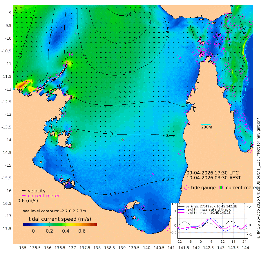 27cm/s 114T +3cm/s rms + 7cm/s -42T. ARA-GOC87 57m 22cm/s 153T +3cm/s rms + 2cm/s -2T. ARA-GOC87 60m 19cm/s 112T +2cm/s rms + 3cm/s 61T. ARA-GOC87 47m 21cm Daru 17cm Bobo Island 39cm Meer Island Barge 35cm Bramble Cay 33cm Unnamed Cay 17cm Pearce Cay 26cm Stephens Island 32cm Merrie England Shoals 25cm Mutacomal Reef 36cm Darnley Island Barge 33cm East Cay 30cm Yorke Island Barge 17cm Rennel Island 17cm Aureed Island 13cm Dungeness Reef 16cm Zagai Island 13cm Yam Island 29cm Dauan Island 34cm Saibai Island 13cm Phipi Reef 16cm Warrior Reef - West 20cm Mabuiag Island Barge 18cm Half Way Island 14cm Coconut Island 15cm Dugong Islet 10cm Poll Island 9cm Kirkcaldie Reef -4cm Suarji Island 20cm Sue Islet 41cm Hawkesbury Island 10cm Alert Patches 9cm Twin Island 35cm Badu Island 8cm St Pauls (Moa Island) 30cm Kubin (Moa Island) 14cm Ince Point 18cm Thursday Island 17cm Nardana Patches 25cm Turtle Head 34cm Round Island 36cm Goods Island 42cm Booby Island 29cm White Rocks Area 49cm Carpentaria 5cm Papou Point 59cm Bampfield Head 32cm Crab Island 36cm Red Wallis Island 35cm Packe Island 5cm Harrington Reef 49cm Herald Camp -2cm Sharp Point 10cm Red Island Point 13cm Possession Island 17cm Alpha Rock 10cm Frederick Point 26cm Wyborn Reef Light 24cm Tetley Island 35cm Triangle Reef 21cm Turtle Head Island 32cm Maclennan Cay 37cm Raine Island 27cm Mcsweeny Reef 33cm Collette Reef 41cm Shadwell Reef 36cm Hannibal Island 34cm Round Point 37cm Vrilya Point 35cm Cape Grenville 33cm Hicks Island 47cm Sir Charles Hardy Island 10cm Harvey Island 41cm Kay Reef 38cm Rocky Island 44cm Chapman Island 42cm Ham Reef 41cm Jubilee Reef 33cm Night Island 39cm Unnamed Reef No. 3 38cm Morris Island 41cm 1st 3 Mile Opening 39cm Creech Reef 32cm Fife Island 48cm Eden Reef 43cm Stanley Island 36cm Normanby River 2cm Yabooma Island 1cm Hutchison River -5cm Elcho Island -16cm North West Crocodile Island 34cm Cape Wessel 20cm Stevens Island 64cm Guluwuru Island 20cm Hopeful Bay 24cm Auster Point 28cm Two Island Bay 34cm Cadell Strait 231cm Mallison Island 45cm Melville Bay (Gove Harbour) 54cm Truant Island 35cm Cape Arnhem 1cm Cape Grey -11cm Hawk Island -43cm Milner Bay (Groote Eylandt) -55cm Cape Beatrice -83cm West Island -81cm Centre Island -84cm Mornington Island -82cm West Wellesley Islands -99cm Bountiful Island -135cm Albert River Mouth -143cm Sweers Island -135cm Karumba -47cm Nassau River Offshore -7cm Christmas Creek 20cm Archer River 33cm Boyd Point 31cm Weipa (Humbug Point) 29cm Pennefather River 40cm Cullen Point