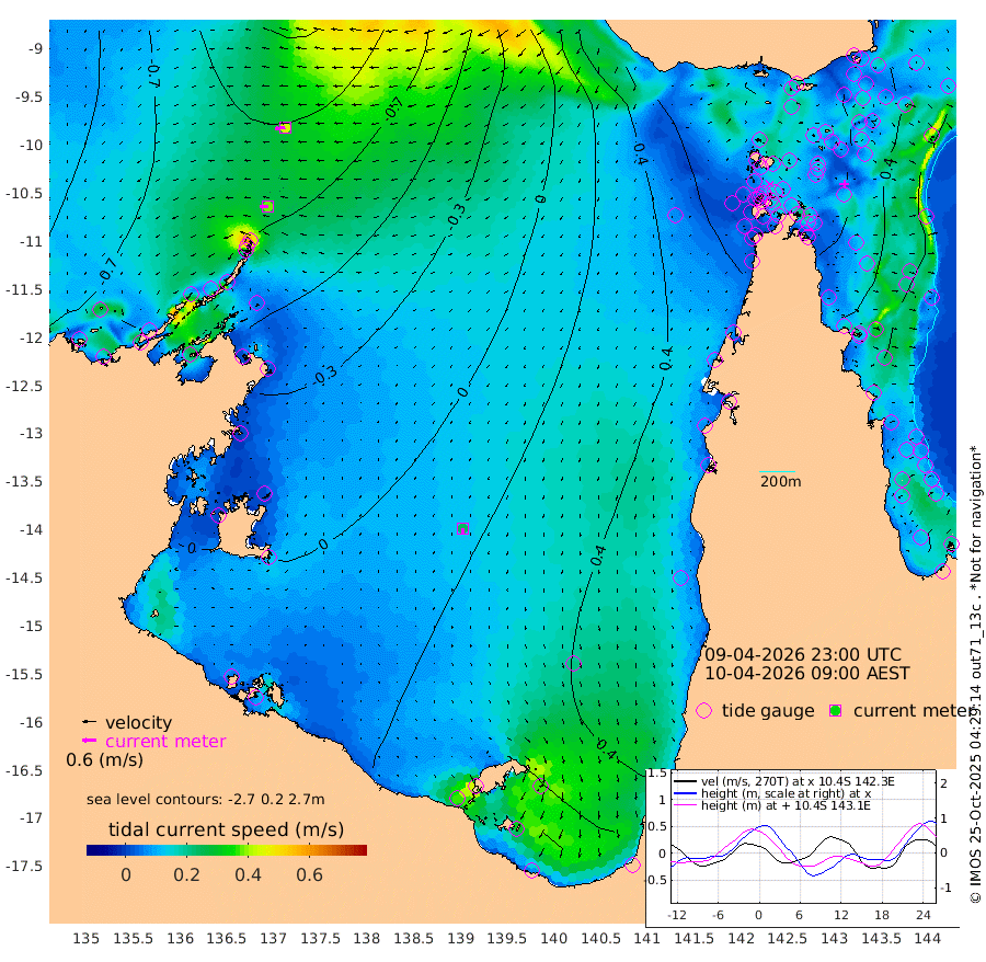 38cm/s -92T +3cm/s rms + 7cm/s -42T. ARA-GOC87 57m 24cm/s -174T +3cm/s rms + 2cm/s -2T. ARA-GOC87 60m 43cm/s -98T +2cm/s rms + 3cm/s 61T. ARA-GOC87 47m 65cm Daru 59cm Bobo Island 26cm Meer Island Barge 39cm Bramble Cay 54cm Unnamed Cay 65cm Pearce Cay 54cm Stephens Island 53cm Merrie England Shoals 67cm Mutacomal Reef 41cm Darnley Island Barge 37cm East Cay 51cm Yorke Island Barge 67cm Rennel Island 63cm Aureed Island 76cm Dungeness Reef 59cm Zagai Island 74cm Yam Island 68cm Dauan Island 54cm Saibai Island 85cm Phipi Reef 76cm Warrior Reef - West 69cm Mabuiag Island Barge 64cm Half Way Island 71cm Coconut Island 74cm Dugong Islet 78cm Poll Island 80cm Kirkcaldie Reef 96cm Suarji Island 65cm Sue Islet 103cm Hawkesbury Island 96cm Alert Patches 91cm Twin Island 88cm Badu Island 91cm St Pauls (Moa Island) 96cm Kubin (Moa Island) 92cm Ince Point 94cm Thursday Island 93cm Nardana Patches 100cm Turtle Head 94cm Round Island 98cm Goods Island 95cm Booby Island 99cm White Rocks Area 63cm Carpentaria 75cm Papou Point 92cm Bampfield Head 74cm Crab Island 98cm Red Wallis Island 109cm Packe Island 84cm Harrington Reef 109cm Herald Camp 23cm Sharp Point 91cm Red Island Point 90cm Possession Island 73cm Alpha Rock 87cm Frederick Point 65cm Wyborn Reef Light 68cm Tetley Island 36cm Triangle Reef 69cm Turtle Head Island 39cm Maclennan Cay 21cm Raine Island 55cm Mcsweeny Reef 46cm Collette Reef 28cm Shadwell Reef 46cm Hannibal Island 48cm Round Point 64cm Vrilya Point 44cm Cape Grenville 39cm Hicks Island 39cm Sir Charles Hardy Island 14cm Harvey Island 33cm Kay Reef 29cm Rocky Island 26cm Chapman Island 23cm Ham Reef 23cm Jubilee Reef 29cm Night Island 27cm Unnamed Reef No. 3 29cm Morris Island 23cm 1st 3 Mile Opening 28cm Creech Reef 34cm Fife Island 22cm Eden Reef 27cm Stanley Island 31cm Normanby River -80cm Yabooma Island -96cm Hutchison River -89cm Elcho Island -78cm North West Crocodile Island -89cm Cape Wessel -101cm Stevens Island -109cm Guluwuru Island -86cm Hopeful Bay -86cm Auster Point -89cm Two Island Bay -113cm Cadell Strait -201cm Mallison Island -86cm Melville Bay (Gove Harbour) -94cm Truant Island -65cm Cape Arnhem -47cm Cape Grey -29cm Hawk Island -31cm Milner Bay (Groote Eylandt) -12cm Cape Beatrice 12cm West Island 9cm Centre Island 35cm Mornington Island 32cm West Wellesley Islands 45cm Bountiful Island 7cm Albert River Mouth 6cm Sweers Island 34cm Karumba 66cm Nassau River Offshore 73cm Christmas Creek 64cm Archer River 61cm Boyd Point 69cm Weipa (Humbug Point) 49cm Pennefather River 69cm Cullen Point