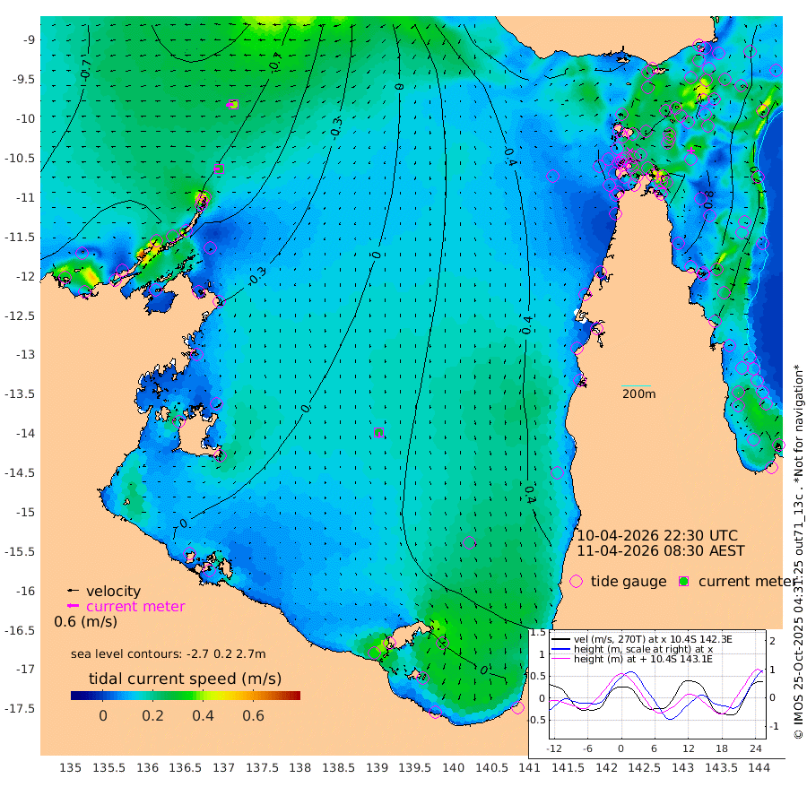 31cm/s -94T +3cm/s rms + 7cm/s -42T. ARA-GOC87 57m 29cm/s 176T +3cm/s rms + 2cm/s -2T. ARA-GOC87 60m 39cm/s -99T +2cm/s rms + 3cm/s 61T. ARA-GOC87 47m 92cm Daru 85cm Bobo Island 45cm Meer Island Barge 67cm Bramble Cay 85cm Unnamed Cay 89cm Pearce Cay 80cm Stephens Island 90cm Merrie England Shoals 103cm Mutacomal Reef 67cm Darnley Island Barge 59cm East Cay 76cm Yorke Island Barge 93cm Rennel Island 86cm Aureed Island 93cm Dungeness Reef 73cm Zagai Island 86cm Yam Island 67cm Dauan Island 59cm Saibai Island 77cm Phipi Reef 87cm Warrior Reef - West 70cm Mabuiag Island Barge 89cm Half Way Island 95cm Coconut Island 97cm Dugong Islet 95cm Poll Island 97cm Kirkcaldie Reef 103cm Suarji Island 84cm Sue Islet 98cm Hawkesbury Island 106cm Alert Patches 104cm Twin Island 81cm Badu Island 98cm St Pauls (Moa Island) 94cm Kubin (Moa Island) 98cm Ince Point 97cm Thursday Island 96cm Nardana Patches 98cm Turtle Head 91cm Round Island 91cm Goods Island 86cm Booby Island 92cm White Rocks Area 66cm Carpentaria 81cm Papou Point 90cm Bampfield Head 66cm Crab Island 96cm Red Wallis Island 111cm Packe Island 109cm Harrington Reef 103cm Herald Camp 26cm Sharp Point 84cm Red Island Point 91cm Possession Island 96cm Alpha Rock 106cm Frederick Point 99cm Wyborn Reef Light 100cm Tetley Island 57cm Triangle Reef 93cm Turtle Head Island 56cm Maclennan Cay 36cm Raine Island 83cm Mcsweeny Reef 75cm Collette Reef 51cm Shadwell Reef 78cm Hannibal Island 78cm Round Point 61cm Vrilya Point 71cm Cape Grenville 59cm Hicks Island 63cm Sir Charles Hardy Island 21cm Harvey Island 61cm Kay Reef 48cm Rocky Island 48cm Chapman Island 42cm Ham Reef 42cm Jubilee Reef 48cm Night Island 48cm Unnamed Reef No. 3 49cm Morris Island 37cm 1st 3 Mile Opening 46cm Creech Reef 56cm Fife Island 43cm Eden Reef 49cm Stanley Island 54cm Normanby River -98cm Yabooma Island -116cm Hutchison River -107cm Elcho Island -99cm North West Crocodile Island -78cm Cape Wessel -99cm Stevens Island -91cm Guluwuru Island -86cm Hopeful Bay -86cm Auster Point -90cm Two Island Bay -117cm Cadell Strait -83cm Mallison Island -74cm Melville Bay (Gove Harbour) -79cm Truant Island -54cm Cape Arnhem -49cm Cape Grey -31cm Hawk Island -41cm Milner Bay (Groote Eylandt) -24cm Cape Beatrice -5cm West Island -9cm Centre Island 11cm Mornington Island 11cm West Wellesley Islands 6cm Bountiful Island -40cm Albert River Mouth -45cm Sweers Island -16cm Karumba 49cm Nassau River Offshore 66cm Christmas Creek 60cm Archer River 60cm Boyd Point 64cm Weipa (Humbug Point) 48cm Pennefather River 67cm Cullen Point