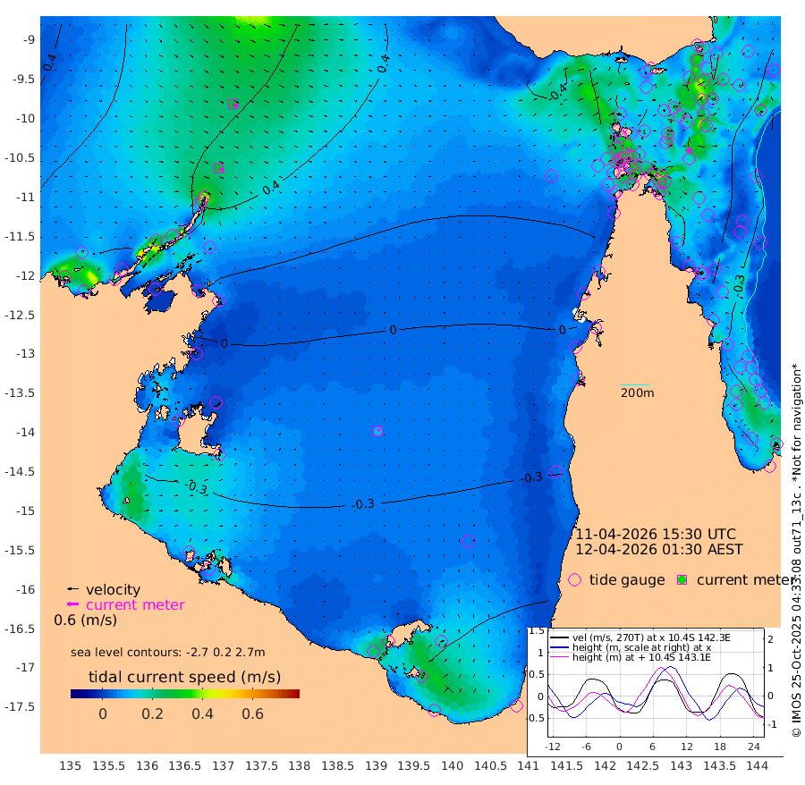 29cm/s 118T +3cm/s rms + 7cm/s -42T. ARA-GOC87 57m 11cm/s 37T +3cm/s rms + 2cm/s -2T. ARA-GOC87 60m 30cm/s 115T +2cm/s rms + 3cm/s 61T. ARA-GOC87 47m -56cm Daru -54cm Bobo Island -32cm Meer Island Barge -54cm Bramble Cay -61cm Unnamed Cay -54cm Pearce Cay -54cm Stephens Island -73cm Merrie England Shoals -69cm Mutacomal Reef -47cm Darnley Island Barge -44cm East Cay -48cm Yorke Island Barge -57cm Rennel Island -49cm Aureed Island -42cm Dungeness Reef -12cm Zagai Island -15cm Yam Island 20cm Dauan Island 14cm Saibai Island -4cm Phipi Reef -19cm Warrior Reef - West 19cm Mabuiag Island Barge -50cm Half Way Island -46cm Coconut Island -49cm Dugong Islet -32cm Poll Island -37cm Kirkcaldie Reef -20cm Suarji Island -31cm Sue Islet 42cm Hawkesbury Island -20cm Alert Patches -16cm Twin Island 47cm Badu Island -5cm St Pauls (Moa Island) 36cm Kubin (Moa Island) 3cm Ince Point 15cm Thursday Island 13cm Nardana Patches 23cm Turtle Head 34cm Round Island 47cm Goods Island 63cm Booby Island 52cm White Rocks Area 66cm Carpentaria 1cm Papou Point 66cm Bampfield Head 52cm Crab Island 52cm Red Wallis Island 30cm Packe Island -57cm Harrington Reef 48cm Herald Camp -8cm Sharp Point 15cm Red Island Point 4cm Possession Island -27cm Alpha Rock -35cm Frederick Point -57cm Wyborn Reef Light -52cm Tetley Island -31cm Triangle Reef -44cm Turtle Head Island -31cm Maclennan Cay -23cm Raine Island -56cm Mcsweeny Reef -57cm Collette Reef -39cm Shadwell Reef -63cm Hannibal Island -60cm Round Point 48cm Vrilya Point -55cm Cape Grenville -41cm Hicks Island -36cm Sir Charles Hardy Island -15cm Harvey Island -52cm Kay Reef -35cm Rocky Island -35cm Chapman Island -30cm Ham Reef -29cm Jubilee Reef -32cm Night Island -35cm Unnamed Reef No. 3 -36cm Morris Island -19cm 1st 3 Mile Opening -30cm Creech Reef -45cm Fife Island -35cm Eden Reef -40cm Stanley Island -46cm Normanby River 91cm Yabooma Island 102cm Hutchison River 88cm Elcho Island 81cm North West Crocodile Island 67cm Cape Wessel 72cm Stevens Island 62cm Guluwuru Island 58cm Hopeful Bay 70cm Auster Point 79cm Two Island Bay 90cm Cadell Strait -10cm Mallison Island 50cm Melville Bay (Gove Harbour) 59cm Truant Island 35cm Cape Arnhem 11cm Cape Grey -12cm Hawk Island -18cm Milner Bay (Groote Eylandt) -35cm Cape Beatrice -59cm West Island -56cm Centre Island -93cm Mornington Island -94cm West Wellesley Islands -100cm Bountiful Island -101cm Albert River Mouth -117cm Sweers Island -113cm Karumba -80cm Nassau River Offshore -52cm Christmas Creek -16cm Archer River 9cm Boyd Point 11cm Weipa (Humbug Point) 15cm Pennefather River 39cm Cullen Point