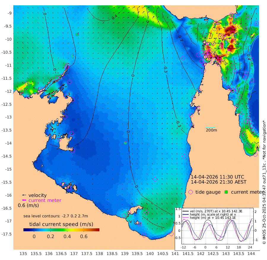 16cm/s 58T +3cm/s rms + 7cm/s -42T. ARA-GOC87 57m 21cm/s 5T +3cm/s rms + 2cm/s -2T. ARA-GOC87 60m 20cm/s 57T +2cm/s rms + 3cm/s 61T. ARA-GOC87 47m 106cm Daru 109cm Bobo Island 41cm Meer Island Barge 75cm Bramble Cay 100cm Unnamed Cay 93cm Pearce Cay 87cm Stephens Island 106cm Merrie England Shoals 113cm Mutacomal Reef 76cm Darnley Island Barge 53cm East Cay 87cm Yorke Island Barge 97cm Rennel Island 92cm Aureed Island 86cm Dungeness Reef 73cm Zagai Island 65cm Yam Island -2cm Dauan Island 12cm Saibai Island 32cm Phipi Reef 61cm Warrior Reef - West 9cm Mabuiag Island Barge 89cm Half Way Island 106cm Coconut Island 88cm Dugong Islet 82cm Poll Island 85cm Kirkcaldie Reef 75cm Suarji Island 80cm Sue Islet -60cm Hawkesbury Island 61cm Alert Patches 63cm Twin Island -43cm Badu Island 55cm St Pauls (Moa Island) -30cm Kubin (Moa Island) 25cm Ince Point 5cm Thursday Island 10cm Nardana Patches -22cm Turtle Head -22cm Round Island -65cm Goods Island -90cm Booby Island -71cm White Rocks Area -79cm Carpentaria 52cm Papou Point -53cm Bampfield Head -72cm Crab Island -84cm Red Wallis Island -47cm Packe Island 113cm Harrington Reef -68cm Herald Camp 21cm Sharp Point -9cm Red Island Point 37cm Possession Island 70cm Alpha Rock 86cm Frederick Point 116cm Wyborn Reef Light 111cm Tetley Island 40cm Triangle Reef 112cm Turtle Head Island 38cm Maclennan Cay 21cm Raine Island 90cm Mcsweeny Reef 84cm Collette Reef 46cm Shadwell Reef 93cm Hannibal Island 79cm Round Point -75cm Vrilya Point 66cm Cape Grenville 55cm Hicks Island 40cm Sir Charles Hardy Island 19cm Harvey Island 54cm Kay Reef 32cm Rocky Island 24cm Chapman Island 21cm Ham Reef 27cm Jubilee Reef 29cm Night Island 24cm Unnamed Reef No. 3 34cm Morris Island 21cm 1st 3 Mile Opening 26cm Creech Reef 36cm Fife Island 27cm Eden Reef 33cm Stanley Island 42cm Normanby River -6cm Yabooma Island 10cm Hutchison River 2cm Elcho Island -2cm North West Crocodile Island 25cm Cape Wessel 28cm Stevens Island 40cm Guluwuru Island 19cm Hopeful Bay 25cm Auster Point 9cm Two Island Bay 15cm Cadell Strait 87cm Mallison Island 37cm Melville Bay (Gove Harbour) 40cm Truant Island 31cm Cape Arnhem 40cm Cape Grey 39cm Hawk Island 40cm Milner Bay (Groote Eylandt) 30cm Cape Beatrice 30cm West Island 34cm Centre Island 29cm Mornington Island 23cm West Wellesley Islands 22cm Bountiful Island 22cm Albert River Mouth 52cm Sweers Island 27cm Karumba -11cm Nassau River Offshore -31cm Christmas Creek -46cm Archer River -56cm Boyd Point -69cm Weipa (Humbug Point) -45cm Pennefather River -78cm Cullen Point