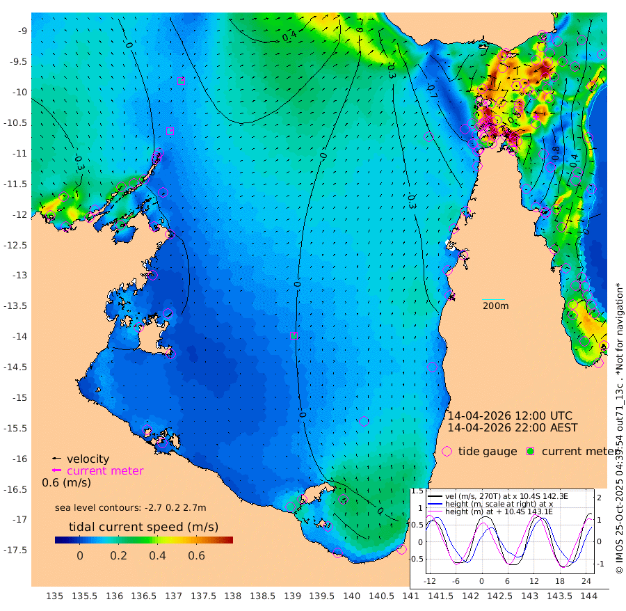 15cm/s 55T +3cm/s rms + 7cm/s -42T. ARA-GOC87 57m 21cm/s 9T +3cm/s rms + 2cm/s -2T. ARA-GOC87 60m 18cm/s 57T +2cm/s rms + 3cm/s 61T. ARA-GOC87 47m 99cm Daru 101cm Bobo Island 23cm Meer Island Barge 55cm Bramble Cay 85cm Unnamed Cay 81cm Pearce Cay 71cm Stephens Island 88cm Merrie England Shoals 104cm Mutacomal Reef 60cm Darnley Island Barge 34cm East Cay 77cm Yorke Island Barge 86cm Rennel Island 85cm Aureed Island 83cm Dungeness Reef 86cm Zagai Island 76cm Yam Island 21cm Dauan Island 35cm Saibai Island 49cm Phipi Reef 74cm Warrior Reef - West 29cm Mabuiag Island Barge 79cm Half Way Island 104cm Coconut Island 82cm Dugong Islet 87cm Poll Island 87cm Kirkcaldie Reef 90cm Suarji Island 86cm Sue Islet -48cm Hawkesbury Island 72cm Alert Patches 76cm Twin Island -26cm Badu Island 72cm St Pauls (Moa Island) -17cm Kubin (Moa Island) 40cm Ince Point 20cm Thursday Island 25cm Nardana Patches -10cm Turtle Head -10cm Round Island -54cm Goods Island -77cm Booby Island -59cm White Rocks Area -63cm Carpentaria 66cm Papou Point -40cm Bampfield Head -62cm Crab Island -70cm Red Wallis Island -35cm Packe Island 109cm Harrington Reef -56cm Herald Camp 28cm Sharp Point 3cm Red Island Point 49cm Possession Island 80cm Alpha Rock 91cm Frederick Point 110cm Wyborn Reef Light 109cm Tetley Island 29cm Triangle Reef 103cm Turtle Head Island 23cm Maclennan Cay 4cm Raine Island 77cm Mcsweeny Reef 69cm Collette Reef 30cm Shadwell Reef 75cm Hannibal Island 59cm Round Point -66cm Vrilya Point 47cm Cape Grenville 37cm Hicks Island 23cm Sir Charles Hardy Island 14cm Harvey Island 33cm Kay Reef 14cm Rocky Island 7cm Chapman Island 4cm Ham Reef 9cm Jubilee Reef 12cm Night Island 7cm Unnamed Reef No. 3 14cm Morris Island 3cm 1st 3 Mile Opening 8cm Creech Reef 15cm Fife Island 3cm Eden Reef 12cm Stanley Island 18cm Normanby River -25cm Yabooma Island -12cm Hutchison River -17cm Elcho Island -19cm North West Crocodile Island 15cm Cape Wessel 9cm Stevens Island 27cm Guluwuru Island 1cm Hopeful Bay 12cm Auster Point -5cm Two Island Bay -6cm Cadell Strait 64cm Mallison Island 26cm Melville Bay (Gove Harbour) 28cm Truant Island 24cm Cape Arnhem 35cm Cape Grey 34cm Hawk Island 39cm Milner Bay (Groote Eylandt) 28cm Cape Beatrice 32cm West Island 37cm Centre Island 24cm Mornington Island 18cm West Wellesley Islands 15cm Bountiful Island 12cm Albert River Mouth 40cm Sweers Island 16cm Karumba -17cm Nassau River Offshore -35cm Christmas Creek -47cm Archer River -53cm Boyd Point -67cm Weipa (Humbug Point) -43cm Pennefather River -68cm Cullen Point