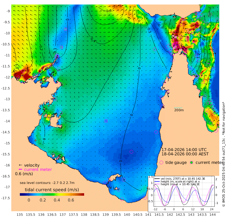 18cm/s 84T +3cm/s rms + 7cm/s -42T. ARA-GOC87 57m 6cm/s 103T +3cm/s rms + 2cm/s -2T. ARA-GOC87 60m 15cm/s 64T +2cm/s rms + 3cm/s 61T. ARA-GOC87 47m 139cm Daru 132cm Bobo Island 44cm Meer Island Barge 72cm Bramble Cay 113cm Unnamed Cay 109cm Pearce Cay 97cm Stephens Island 108cm Merrie England Shoals 135cm Mutacomal Reef 91cm Darnley Island Barge 45cm East Cay 115cm Yorke Island Barge 115cm Rennel Island 121cm Aureed Island 130cm Dungeness Reef 149cm Zagai Island 135cm Yam Island 111cm Dauan Island 113cm Saibai Island 133cm Phipi Reef 146cm Warrior Reef - West 83cm Mabuiag Island Barge 112cm Half Way Island 142cm Coconut Island 121cm Dugong Islet 135cm Poll Island 132cm Kirkcaldie Reef 145cm Suarji Island 136cm Sue Islet -11cm Hawkesbury Island 123cm Alert Patches 125cm Twin Island 20cm Badu Island 132cm St Pauls (Moa Island) 33cm Kubin (Moa Island) 91cm Ince Point 69cm Thursday Island 76cm Nardana Patches 40cm Turtle Head 33cm Round Island -13cm Goods Island -41cm Booby Island -35cm White Rocks Area -32cm Carpentaria 110cm Papou Point -2cm Bampfield Head -34cm Crab Island -37cm Red Wallis Island 13cm Packe Island 141cm Harrington Reef -6cm Herald Camp 46cm Sharp Point 29cm Red Island Point 93cm Possession Island 122cm Alpha Rock 134cm Frederick Point 143cm Wyborn Reef Light 146cm Tetley Island 52cm Triangle Reef 137cm Turtle Head Island 42cm Maclennan Cay 15cm Raine Island 104cm Mcsweeny Reef 93cm Collette Reef 50cm Shadwell Reef 99cm Hannibal Island 72cm Round Point -40cm Vrilya Point 62cm Cape Grenville 53cm Hicks Island 48cm Sir Charles Hardy Island 19cm Harvey Island 40cm Kay Reef 26cm Rocky Island 15cm Chapman Island 13cm Ham Reef 23cm Jubilee Reef 27cm Night Island 14cm Unnamed Reef No. 3 25cm Morris Island 22cm 1st 3 Mile Opening 22cm Creech Reef 23cm Fife Island 15cm Eden Reef 22cm Stanley Island 21cm Normanby River -93cm Yabooma Island -77cm Hutchison River -84cm Elcho Island -90cm North West Crocodile Island -18cm Cape Wessel -47cm Stevens Island 35cm Guluwuru Island -54cm Hopeful Bay -29cm Auster Point -39cm Two Island Bay -40cm Cadell Strait 133cm Mallison Island 22cm Melville Bay (Gove Harbour) 27cm Truant Island 30cm Cape Arnhem 25cm Cape Grey 24cm Hawk Island 11cm Milner Bay (Groote Eylandt) 2cm Cape Beatrice 0cm West Island 7cm Centre Island 13cm Mornington Island 5cm West Wellesley Islands -6cm Bountiful Island -25cm Albert River Mouth -11cm Sweers Island -19cm Karumba -5cm Nassau River Offshore -3cm Christmas Creek -21cm Archer River -18cm Boyd Point -33cm Weipa (Humbug Point) -18cm Pennefather River -35cm Cullen Point