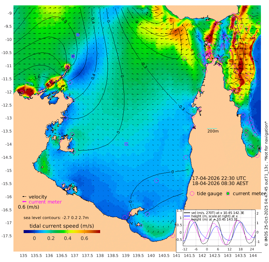 3cm/s 124T +3cm/s rms + 7cm/s -42T. ARA-GOC87 57m 9cm/s -117T +3cm/s rms + 2cm/s -2T. ARA-GOC87 60m 7cm/s 86T +2cm/s rms + 3cm/s 61T. ARA-GOC87 47m 37cm Daru 47cm Bobo Island 69cm Meer Island Barge 77cm Bramble Cay 61cm Unnamed Cay 64cm Pearce Cay 69cm Stephens Island 64cm Merrie England Shoals 41cm Mutacomal Reef 61cm Darnley Island Barge 81cm East Cay 45cm Yorke Island Barge 51cm Rennel Island 41cm Aureed Island 29cm Dungeness Reef -24cm Zagai Island -13cm Yam Island -50cm Dauan Island -58cm Saibai Island -35cm Phipi Reef -20cm Warrior Reef - West -47cm Mabuiag Island Barge 49cm Half Way Island 19cm Coconut Island 40cm Dugong Islet 3cm Poll Island 10cm Kirkcaldie Reef -22cm Suarji Island -8cm Sue Islet -4cm Hawkesbury Island -25cm Alert Patches -21cm Twin Island -22cm Badu Island -33cm St Pauls (Moa Island) -11cm Kubin (Moa Island) -28cm Ince Point -30cm Thursday Island -30cm Nardana Patches -18cm Turtle Head -16cm Round Island -7cm Goods Island -21cm Booby Island -8cm White Rocks Area -59cm Carpentaria -22cm Papou Point -24cm Bampfield Head -31cm Crab Island -24cm Red Wallis Island -14cm Packe Island 35cm Harrington Reef -12cm Herald Camp -23cm Sharp Point -11cm Red Island Point -21cm Possession Island -20cm Alpha Rock 2cm Frederick Point 31cm Wyborn Reef Light 20cm Tetley Island 49cm Triangle Reef 45cm Turtle Head Island 66cm Maclennan Cay 66cm Raine Island 55cm Mcsweeny Reef 54cm Collette Reef 57cm Shadwell Reef 65cm Hannibal Island 80cm Round Point -46cm Vrilya Point 71cm Cape Grenville 76cm Hicks Island 76cm Sir Charles Hardy Island 22cm Harvey Island 77cm Kay Reef 75cm Rocky Island 71cm Chapman Island 67cm Ham Reef 70cm Jubilee Reef 61cm Night Island 67cm Unnamed Reef No. 3 79cm Morris Island 68cm 1st 3 Mile Opening 70cm Creech Reef 77cm Fife Island 94cm Eden Reef 78cm Stanley Island 97cm Normanby River 191cm Yabooma Island 215cm Hutchison River 180cm Elcho Island 179cm North West Crocodile Island 103cm Cape Wessel 152cm Stevens Island 88cm Guluwuru Island 143cm Hopeful Bay 120cm Auster Point 128cm Two Island Bay 173cm Cadell Strait 1cm Mallison Island 88cm Melville Bay (Gove Harbour) 86cm Truant Island 47cm Cape Arnhem 38cm Cape Grey 25cm Hawk Island 1cm Milner Bay (Groote Eylandt) 4cm Cape Beatrice -25cm West Island -37cm Centre Island 0cm Mornington Island 1cm West Wellesley Islands 49cm Bountiful Island 43cm Albert River Mouth 42cm Sweers Island 42cm Karumba 16cm Nassau River Offshore 7cm Christmas Creek -3cm Archer River -15cm Boyd Point 0cm Weipa (Humbug Point) -37cm Pennefather River -35cm Cullen Point