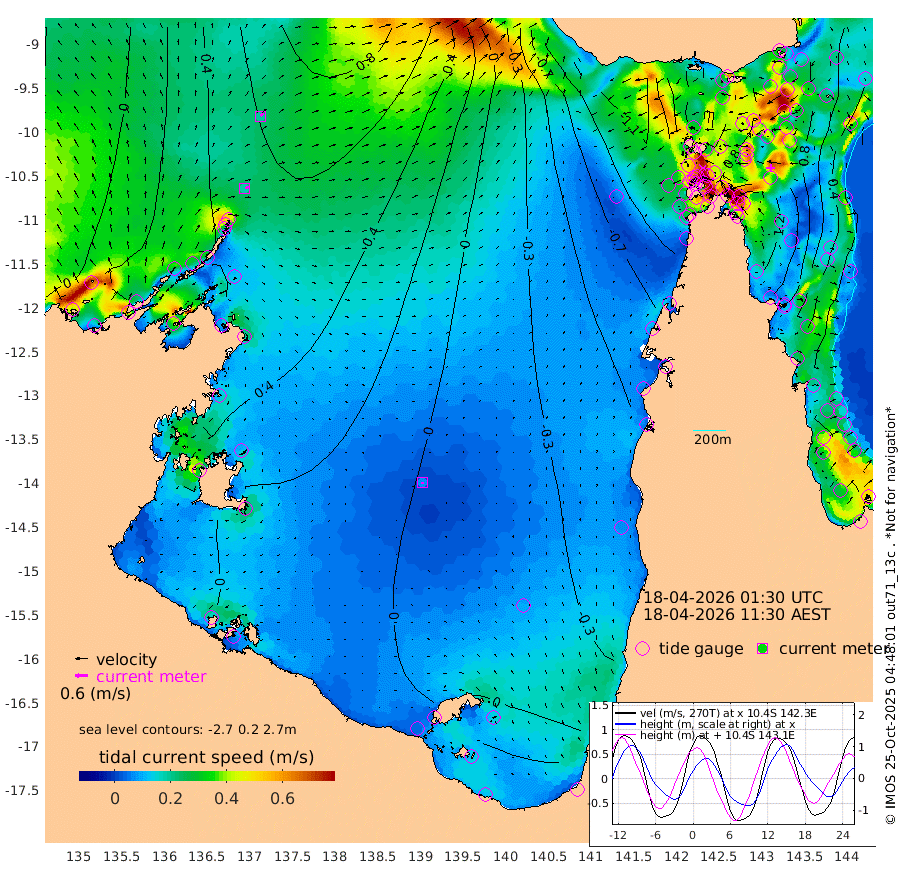18cm/s 66T +3cm/s rms + 7cm/s -42T. ARA-GOC87 57m 7cm/s -178T +3cm/s rms + 2cm/s -2T. ARA-GOC87 60m 19cm/s 48T +2cm/s rms + 3cm/s 61T. ARA-GOC87 47m 115cm Daru 113cm Bobo Island 36cm Meer Island Barge 67cm Bramble Cay 97cm Unnamed Cay 98cm Pearce Cay 86cm Stephens Island 94cm Merrie England Shoals 115cm Mutacomal Reef 77cm Darnley Island Barge 39cm East Cay 95cm Yorke Island Barge 96cm Rennel Island 97cm Aureed Island 99cm Dungeness Reef 102cm Zagai Island 100cm Yam Island 62cm Dauan Island 65cm Saibai Island 65cm Phipi Reef 106cm Warrior Reef - West 30cm Mabuiag Island Barge 98cm Half Way Island 101cm Coconut Island 105cm Dugong Islet 100cm Poll Island 99cm Kirkcaldie Reef 78cm Suarji Island 98cm Sue Islet -59cm Hawkesbury Island 58cm Alert Patches 72cm Twin Island -43cm Badu Island 76cm St Pauls (Moa Island) -18cm Kubin (Moa Island) 34cm Ince Point 8cm Thursday Island 16cm Nardana Patches -24cm Turtle Head -48cm Round Island -75cm Goods Island -114cm Booby Island -98cm White Rocks Area -114cm Carpentaria 65cm Papou Point -125cm Bampfield Head -102cm Crab Island -99cm Red Wallis Island -47cm Packe Island 112cm Harrington Reef -87cm Herald Camp 29cm Sharp Point -18cm Red Island Point 15cm Possession Island 80cm Alpha Rock 91cm Frederick Point 114cm Wyborn Reef Light 113cm Tetley Island 37cm Triangle Reef 107cm Turtle Head Island 33cm Maclennan Cay 3cm Raine Island 86cm Mcsweeny Reef 72cm Collette Reef 33cm Shadwell Reef 81cm Hannibal Island 63cm Round Point -106cm Vrilya Point 49cm Cape Grenville 43cm Hicks Island 39cm Sir Charles Hardy Island 16cm Harvey Island 32cm Kay Reef 17cm Rocky Island 3cm Chapman Island 5cm Ham Reef 16cm Jubilee Reef 16cm Night Island 5cm Unnamed Reef No. 3 18cm Morris Island 3cm 1st 3 Mile Opening 11cm Creech Reef 20cm Fife Island 13cm Eden Reef 14cm Stanley Island 27cm Normanby River 32cm Yabooma Island 60cm Hutchison River 40cm Elcho Island 44cm North West Crocodile Island 57cm Cape Wessel 59cm Stevens Island 95cm Guluwuru Island 36cm Hopeful Bay 45cm Auster Point 59cm Two Island Bay 94cm Cadell Strait 151cm Mallison Island 75cm Melville Bay (Gove Harbour) 76cm Truant Island 54cm Cape Arnhem 44cm Cape Grey 36cm Hawk Island 17cm Milner Bay (Groote Eylandt) 19cm Cape Beatrice 5cm West Island -7cm Centre Island 14cm Mornington Island 12cm West Wellesley Islands 19cm Bountiful Island 29cm Albert River Mouth 23cm Sweers Island 20cm Karumba -2cm Nassau River Offshore -24cm Christmas Creek -61cm Archer River -64cm Boyd Point -78cm Weipa (Humbug Point) -75cm Pennefather River -97cm Cullen Point