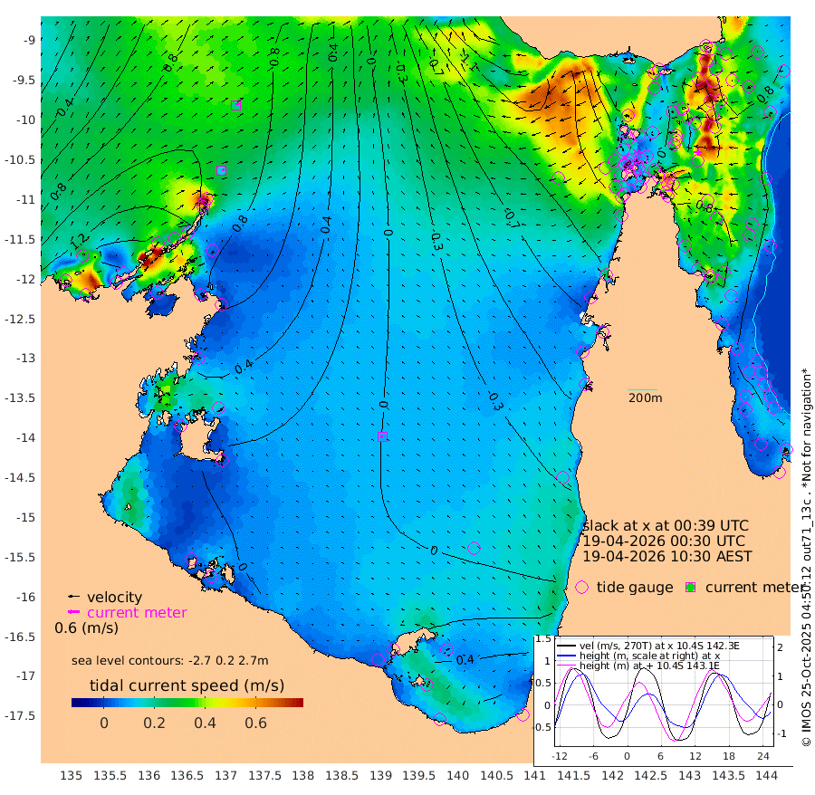 14cm/s 71T +3cm/s rms + 7cm/s -42T. ARA-GOC87 57m 10cm/s -102T +3cm/s rms + 2cm/s -2T. ARA-GOC87 60m 20cm/s 57T +2cm/s rms + 3cm/s 61T. ARA-GOC87 47m 83cm Daru 91cm Bobo Island 60cm Meer Island Barge 80cm Bramble Cay 85cm Unnamed Cay 93cm Pearce Cay 86cm Stephens Island 83cm Merrie England Shoals 81cm Mutacomal Reef 77cm Darnley Island Barge 68cm East Cay 78cm Yorke Island Barge 80cm Rennel Island 79cm Aureed Island 71cm Dungeness Reef 43cm Zagai Island 43cm Yam Island 5cm Dauan Island -1cm Saibai Island 23cm Phipi Reef 48cm Warrior Reef - West -22cm Mabuiag Island Barge 78cm Half Way Island 65cm Coconut Island 76cm Dugong Islet 53cm Poll Island 53cm Kirkcaldie Reef 29cm Suarji Island 43cm Sue Islet -62cm Hawkesbury Island 7cm Alert Patches 18cm Twin Island -57cm Badu Island 14cm St Pauls (Moa Island) -34cm Kubin (Moa Island) -11cm Ince Point -30cm Thursday Island -24cm Nardana Patches -42cm Turtle Head -52cm Round Island -70cm Goods Island -106cm Booby Island -88cm White Rocks Area -134cm Carpentaria 14cm Papou Point -110cm Bampfield Head -102cm Crab Island -100cm Red Wallis Island -56cm Packe Island 77cm Harrington Reef -79cm Herald Camp 0cm Sharp Point -35cm Red Island Point -12cm Possession Island 21cm Alpha Rock 44cm Frederick Point 76cm Wyborn Reef Light 69cm Tetley Island 48cm Triangle Reef 80cm Turtle Head Island 54cm Maclennan Cay 39cm Raine Island 76cm Mcsweeny Reef 69cm Collette Reef 49cm Shadwell Reef 80cm Hannibal Island 80cm Round Point -118cm Vrilya Point 64cm Cape Grenville 67cm Hicks Island 63cm Sir Charles Hardy Island 21cm Harvey Island 58cm Kay Reef 52cm Rocky Island 41cm Chapman Island 39cm Ham Reef 46cm Jubilee Reef 43cm Night Island 38cm Unnamed Reef No. 3 54cm Morris Island 40cm 1st 3 Mile Opening 45cm Creech Reef 54cm Fife Island 62cm Eden Reef 49cm Stanley Island 69cm Normanby River 159cm Yabooma Island 201cm Hutchison River 162cm Elcho Island 161cm North West Crocodile Island 111cm Cape Wessel 150cm Stevens Island 127cm Guluwuru Island 132cm Hopeful Bay 119cm Auster Point 131cm Two Island Bay 187cm Cadell Strait 87cm Mallison Island 116cm Melville Bay (Gove Harbour) 115cm Truant Island 75cm Cape Arnhem 62cm Cape Grey 53cm Hawk Island 24cm Milner Bay (Groote Eylandt) 25cm Cape Beatrice -5cm West Island -17cm Centre Island 31cm Mornington Island 25cm West Wellesley Islands 70cm Bountiful Island 85cm Albert River Mouth 87cm Sweers Island 79cm Karumba 20cm Nassau River Offshore -9cm Christmas Creek -46cm Archer River -60cm Boyd Point -57cm Weipa (Humbug Point) -84cm Pennefather River -100cm Cullen Point