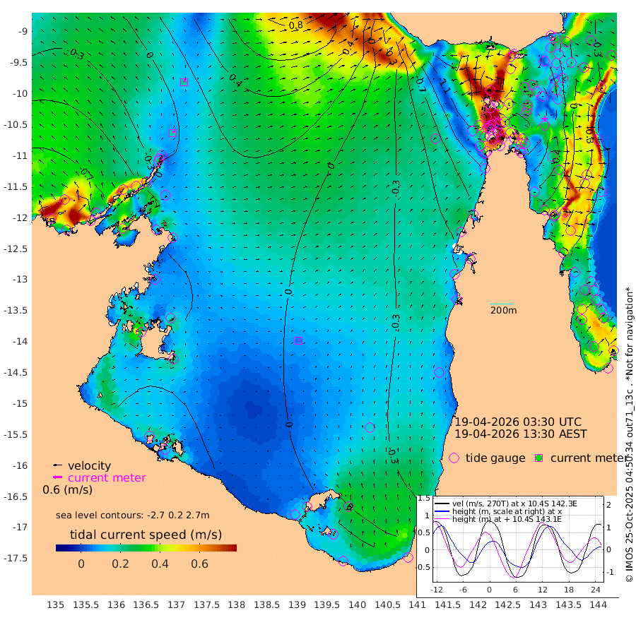 18cm/s 35T +3cm/s rms + 7cm/s -42T. ARA-GOC87 57m 5cm/s 41T +3cm/s rms + 2cm/s -2T. ARA-GOC87 60m 20cm/s 24T +2cm/s rms + 3cm/s 61T. ARA-GOC87 47m 31cm Daru 26cm Bobo Island -32cm Meer Island Barge -19cm Bramble Cay 7cm Unnamed Cay 5cm Pearce Cay -4cm Stephens Island 2cm Merrie England Shoals 28cm Mutacomal Reef -1cm Darnley Island Barge -40cm East Cay 19cm Yorke Island Barge 9cm Rennel Island 18cm Aureed Island 21cm Dungeness Reef 56cm Zagai Island 47cm Yam Island 37cm Dauan Island 53cm Saibai Island 23cm Phipi Reef 54cm Warrior Reef - West 12cm Mabuiag Island Barge 15cm Half Way Island 24cm Coconut Island 24cm Dugong Islet 35cm Poll Island 29cm Kirkcaldie Reef 25cm Suarji Island 47cm Sue Islet -100cm Hawkesbury Island 9cm Alert Patches 20cm Twin Island -81cm Badu Island 32cm St Pauls (Moa Island) -62cm Kubin (Moa Island) -6cm Ince Point -28cm Thursday Island -21cm Nardana Patches -66cm Turtle Head -86cm Round Island -116cm Goods Island -139cm Booby Island -133cm White Rocks Area -100cm Carpentaria 22cm Papou Point -154cm Bampfield Head -116cm Crab Island -123cm Red Wallis Island -92cm Packe Island 26cm Harrington Reef -121cm Herald Camp 27cm Sharp Point -56cm Red Island Point -27cm Possession Island 35cm Alpha Rock 25cm Frederick Point 30cm Wyborn Reef Light 35cm Tetley Island -23cm Triangle Reef 16cm Turtle Head Island -35cm Maclennan Cay -57cm Raine Island 3cm Mcsweeny Reef -4cm Collette Reef -30cm Shadwell Reef -5cm Hannibal Island -27cm Round Point -104cm Vrilya Point -28cm Cape Grenville -35cm Hicks Island -37cm Sir Charles Hardy Island -8cm Harvey Island -42cm Kay Reef -50cm Rocky Island -59cm Chapman Island -52cm Ham Reef -47cm Jubilee Reef -43cm Night Island -55cm Unnamed Reef No. 3 -53cm Morris Island -59cm 1st 3 Mile Opening -53cm Creech Reef -50cm Fife Island -63cm Eden Reef -54cm Stanley Island -53cm Normanby River -80cm Yabooma Island -77cm Hutchison River -67cm Elcho Island -61cm North West Crocodile Island -5cm Cape Wessel -35cm Stevens Island 31cm Guluwuru Island -47cm Hopeful Bay -27cm Auster Point -15cm Two Island Bay -16cm Cadell Strait 132cm Mallison Island 13cm Melville Bay (Gove Harbour) 14cm Truant Island 19cm Cape Arnhem 24cm Cape Grey 25cm Hawk Island 33cm Milner Bay (Groote Eylandt) 33cm Cape Beatrice 47cm West Island 41cm Centre Island 27cm Mornington Island 29cm West Wellesley Islands 13cm Bountiful Island 32cm Albert River Mouth 36cm Sweers Island 19cm Karumba -13cm Nassau River Offshore -42cm Christmas Creek -76cm Archer River -74cm Boyd Point -98cm Weipa (Humbug Point) -74cm Pennefather River -98cm Cullen Point