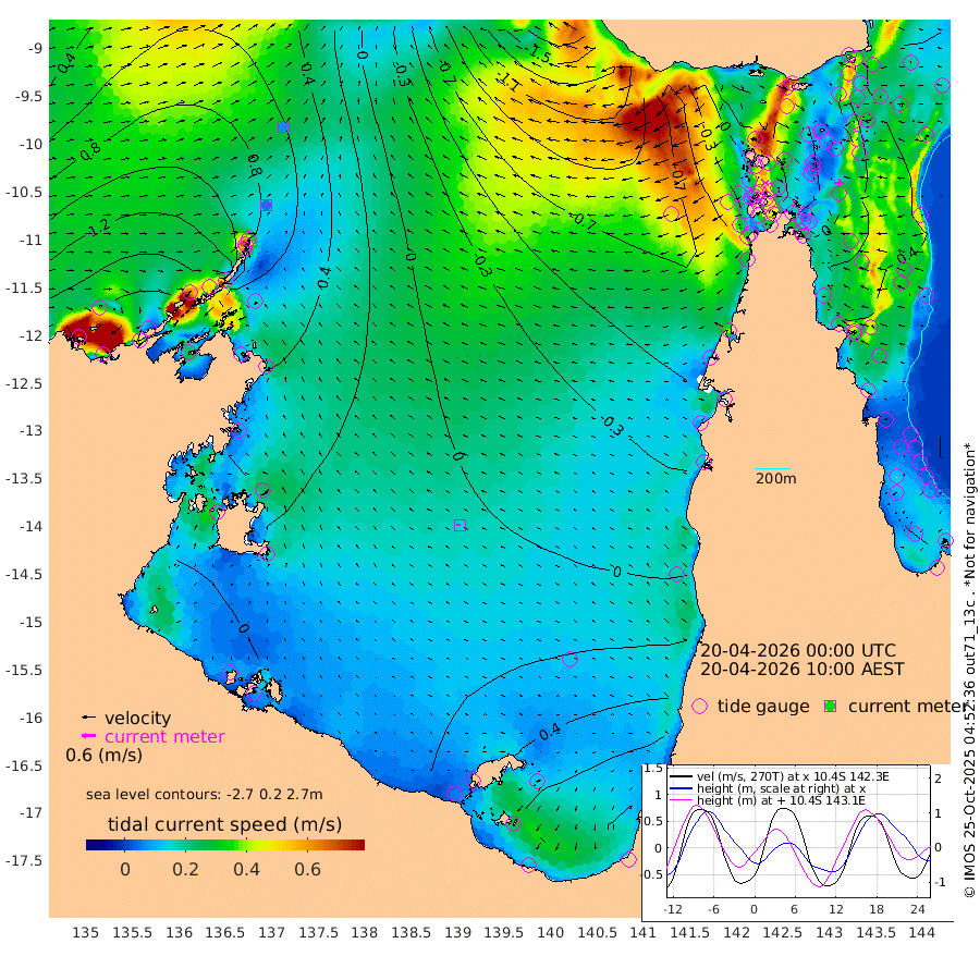 5cm/s -53T +3cm/s rms + 7cm/s -42T. ARA-GOC87 57m 15cm/s -90T +3cm/s rms + 2cm/s -2T. ARA-GOC87 60m 7cm/s 20T +2cm/s rms + 3cm/s 61T. ARA-GOC87 47m 24cm Daru 33cm Bobo Island 35cm Meer Island Barge 43cm Bramble Cay 32cm Unnamed Cay 43cm Pearce Cay 38cm Stephens Island 30cm Merrie England Shoals 22cm Mutacomal Reef 31cm Darnley Island Barge 43cm East Cay 24cm Yorke Island Barge 29cm Rennel Island 28cm Aureed Island 22cm Dungeness Reef -5cm Zagai Island -3cm Yam Island -13cm Dauan Island -26cm Saibai Island 8cm Phipi Reef 4cm Warrior Reef - West -33cm Mabuiag Island Barge 23cm Half Way Island 12cm Coconut Island 19cm Dugong Islet 4cm Poll Island 1cm Kirkcaldie Reef -3cm Suarji Island -9cm Sue Islet -34cm Hawkesbury Island -22cm Alert Patches -19cm Twin Island -33cm Badu Island -23cm St Pauls (Moa Island) -24cm Kubin (Moa Island) -28cm Ince Point -36cm Thursday Island -32cm Nardana Patches -28cm Turtle Head -28cm Round Island -33cm Goods Island -58cm Booby Island -43cm White Rocks Area -103cm Carpentaria -19cm Papou Point -60cm Bampfield Head -62cm Crab Island -57cm Red Wallis Island -32cm Packe Island 16cm Harrington Reef -38cm Herald Camp -15cm Sharp Point -26cm Red Island Point -21cm Possession Island -21cm Alpha Rock -3cm Frederick Point 16cm Wyborn Reef Light 9cm Tetley Island 26cm Triangle Reef 17cm Turtle Head Island 33cm Maclennan Cay 31cm Raine Island 28cm Mcsweeny Reef 27cm Collette Reef 26cm Shadwell Reef 34cm Hannibal Island 44cm Round Point -85cm Vrilya Point 33cm Cape Grenville 40cm Hicks Island 38cm Sir Charles Hardy Island 11cm Harvey Island 35cm Kay Reef 39cm Rocky Island 35cm Chapman Island 29cm Ham Reef 31cm Jubilee Reef 30cm Night Island 29cm Unnamed Reef No. 3 40cm Morris Island 30cm 1st 3 Mile Opening 31cm Creech Reef 39cm Fife Island 48cm Eden Reef 34cm Stanley Island 49cm Normanby River 178cm Yabooma Island 213cm Hutchison River 179cm Elcho Island 178cm North West Crocodile Island 90cm Cape Wessel 144cm Stevens Island 80cm Guluwuru Island 138cm Hopeful Bay 110cm Auster Point 114cm Two Island Bay 163cm Cadell Strait -31cm Mallison Island 86cm Melville Bay (Gove Harbour) 80cm Truant Island 50cm Cape Arnhem 46cm Cape Grey 47cm Hawk Island 26cm Milner Bay (Groote Eylandt) 30cm Cape Beatrice 5cm West Island -3cm Centre Island 55cm Mornington Island 48cm West Wellesley Islands 112cm Bountiful Island 133cm Albert River Mouth 138cm Sweers Island 131cm Karumba 50cm Nassau River Offshore 19cm Christmas Creek -13cm Archer River -33cm Boyd Point -16cm Weipa (Humbug Point) -62cm Pennefather River -63cm Cullen Point