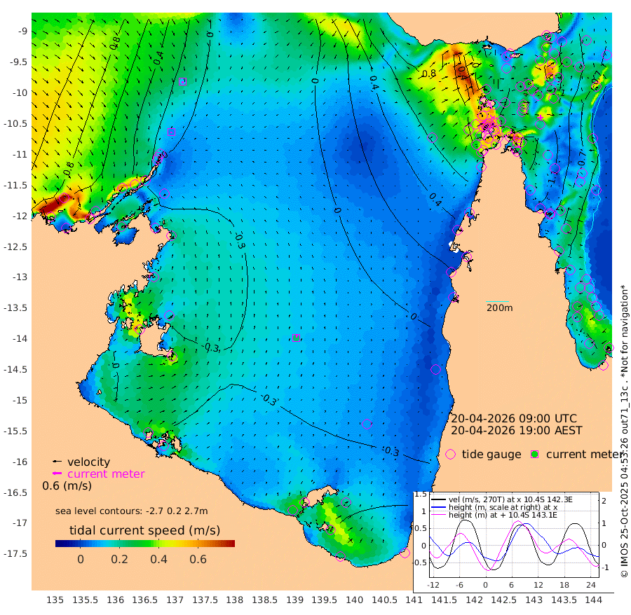 7cm/s -149T +3cm/s rms + 7cm/s -42T. ARA-GOC87 57m 23cm/s 8T +3cm/s rms + 2cm/s -2T. ARA-GOC87 60m 13cm/s 173T +2cm/s rms + 3cm/s 61T. ARA-GOC87 47m -123cm Daru -118cm Bobo Island -64cm Meer Island Barge -81cm Bramble Cay -107cm Unnamed Cay -107cm Pearce Cay -99cm Stephens Island -97cm Merrie England Shoals -115cm Mutacomal Reef -99cm Darnley Island Barge -62cm East Cay -112cm Yorke Island Barge -103cm Rennel Island -115cm Aureed Island -118cm Dungeness Reef -122cm Zagai Island -112cm Yam Island -112cm Dauan Island -104cm Saibai Island -127cm Phipi Reef -135cm Warrior Reef - West -50cm Mabuiag Island Barge -102cm Half Way Island -110cm Coconut Island -112cm Dugong Islet -109cm Poll Island -105cm Kirkcaldie Reef -110cm Suarji Island -110cm Sue Islet 43cm Hawkesbury Island -79cm Alert Patches -83cm Twin Island 17cm Badu Island -92cm St Pauls (Moa Island) -4cm Kubin (Moa Island) -52cm Ince Point -29cm Thursday Island -37cm Nardana Patches -9cm Turtle Head 12cm Round Island 41cm Goods Island 80cm Booby Island 74cm White Rocks Area 90cm Carpentaria -67cm Papou Point 68cm Bampfield Head 79cm Crab Island 74cm Red Wallis Island 17cm Packe Island -112cm Harrington Reef 34cm Herald Camp -32cm Sharp Point 7cm Red Island Point -44cm Possession Island -82cm Alpha Rock -97cm Frederick Point -111cm Wyborn Reef Light -110cm Tetley Island -62cm Triangle Reef -103cm Turtle Head Island -59cm Maclennan Cay -33cm Raine Island -98cm Mcsweeny Reef -90cm Collette Reef -62cm Shadwell Reef -98cm Hannibal Island -76cm Round Point 90cm Vrilya Point -69cm Cape Grenville -67cm Hicks Island -75cm Sir Charles Hardy Island -23cm Harvey Island -54cm Kay Reef -49cm Rocky Island -38cm Chapman Island -36cm Ham Reef -44cm Jubilee Reef -45cm Night Island -33cm Unnamed Reef No. 3 -47cm Morris Island -42cm 1st 3 Mile Opening -44cm Creech Reef -45cm Fife Island -50cm Eden Reef -44cm Stanley Island -48cm Normanby River 64cm Yabooma Island 45cm Hutchison River 59cm Elcho Island 61cm North West Crocodile Island 15cm Cape Wessel 40cm Stevens Island -51cm Guluwuru Island 39cm Hopeful Bay 26cm Auster Point 22cm Two Island Bay 4cm Cadell Strait -138cm Mallison Island -37cm Melville Bay (Gove Harbour) -34cm Truant Island -36cm Cape Arnhem -31cm Cape Grey -34cm Hawk Island -13cm Milner Bay (Groote Eylandt) -16cm Cape Beatrice -14cm West Island -10cm Centre Island -68cm Mornington Island -65cm West Wellesley Islands -94cm Bountiful Island -76cm Albert River Mouth -79cm Sweers Island -76cm Karumba -64cm Nassau River Offshore -50cm Christmas Creek 5cm Archer River 15cm Boyd Point 19cm Weipa (Humbug Point) 51cm Pennefather River 62cm Cullen Point