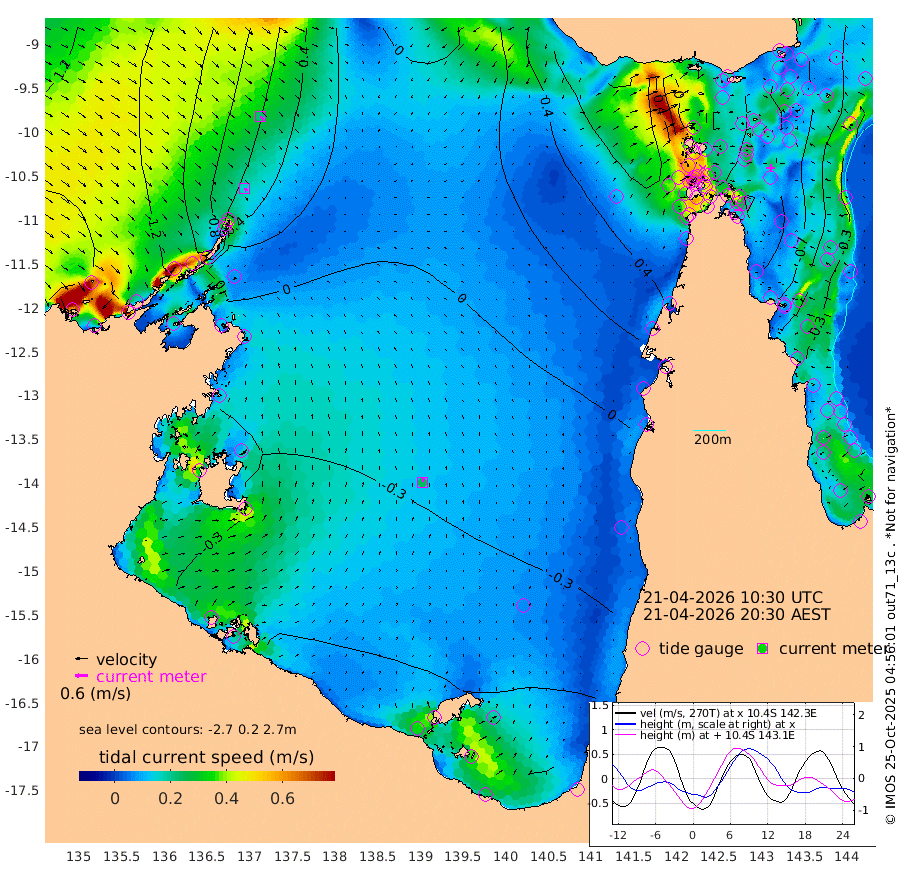 15cm/s 146T +3cm/s rms + 7cm/s -42T. ARA-GOC87 57m 24cm/s 7T +3cm/s rms + 2cm/s -2T. ARA-GOC87 60m 23cm/s 138T +2cm/s rms + 3cm/s 61T. ARA-GOC87 47m -81cm Daru -73cm Bobo Island -40cm Meer Island Barge -49cm Bramble Cay -69cm Unnamed Cay -64cm Pearce Cay -62cm Stephens Island -62cm Merrie England Shoals -74cm Mutacomal Reef -68cm Darnley Island Barge -35cm East Cay -77cm Yorke Island Barge -64cm Rennel Island -77cm Aureed Island -77cm Dungeness Reef -82cm Zagai Island -72cm Yam Island -80cm Dauan Island -77cm Saibai Island -87cm Phipi Reef -95cm Warrior Reef - West -22cm Mabuiag Island Barge -65cm Half Way Island -65cm Coconut Island -74cm Dugong Islet -68cm Poll Island -66cm Kirkcaldie Reef -67cm Suarji Island -76cm Sue Islet 73cm Hawkesbury Island -42cm Alert Patches -44cm Twin Island 52cm Badu Island -53cm St Pauls (Moa Island) 30cm Kubin (Moa Island) -19cm Ince Point 2cm Thursday Island -5cm Nardana Patches 21cm Turtle Head 47cm Round Island 69cm Goods Island 98cm Booby Island 98cm White Rocks Area 90cm Carpentaria -29cm Papou Point 101cm Bampfield Head 92cm Crab Island 92cm Red Wallis Island 45cm Packe Island -68cm Harrington Reef 60cm Herald Camp -26cm Sharp Point 36cm Red Island Point -6cm Possession Island -50cm Alpha Rock -55cm Frederick Point -66cm Wyborn Reef Light -65cm Tetley Island -38cm Triangle Reef -54cm Turtle Head Island -36cm Maclennan Cay -15cm Raine Island -63cm Mcsweeny Reef -60cm Collette Reef -41cm Shadwell Reef -64cm Hannibal Island -42cm Round Point 91cm Vrilya Point -43cm Cape Grenville -39cm Hicks Island -49cm Sir Charles Hardy Island -15cm Harvey Island -32cm Kay Reef -28cm Rocky Island -20cm Chapman Island -20cm Ham Reef -26cm Jubilee Reef -28cm Night Island -18cm Unnamed Reef No. 3 -25cm Morris Island -23cm 1st 3 Mile Opening -26cm Creech Reef -27cm Fife Island -28cm Eden Reef -27cm Stanley Island -26cm Normanby River 146cm Yabooma Island 148cm Hutchison River 141cm Elcho Island 139cm North West Crocodile Island 70cm Cape Wessel 114cm Stevens Island 5cm Guluwuru Island 103cm Hopeful Bay 88cm Auster Point 84cm Two Island Bay 87cm Cadell Strait -122cm Mallison Island 16cm Melville Bay (Gove Harbour) 22cm Truant Island -2cm Cape Arnhem -12cm Cape Grey -22cm Hawk Island -20cm Milner Bay (Groote Eylandt) -30cm Cape Beatrice -50cm West Island -46cm Centre Island -97cm Mornington Island -100cm West Wellesley Islands -117cm Bountiful Island -103cm Albert River Mouth -109cm Sweers Island -102cm Karumba -86cm Nassau River Offshore -63cm Christmas Creek 0cm Archer River 14cm Boyd Point 20cm Weipa (Humbug Point) 47cm Pennefather River 63cm Cullen Point
