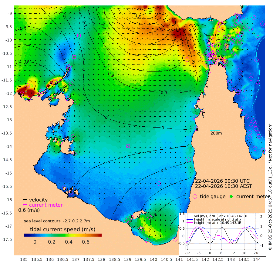 25cm/s -86T +3cm/s rms + 7cm/s -42T. ARA-GOC87 57m 19cm/s -99T +3cm/s rms + 2cm/s -2T. ARA-GOC87 60m 19cm/s -83T +2cm/s rms + 3cm/s 61T. ARA-GOC87 47m -24cm Daru -25cm Bobo Island -20cm Meer Island Barge -20cm Bramble Cay -28cm Unnamed Cay -18cm Pearce Cay -27cm Stephens Island -32cm Merrie England Shoals -27cm Mutacomal Reef -32cm Darnley Island Barge -17cm East Cay -32cm Yorke Island Barge -23cm Rennel Island -22cm Aureed Island -12cm Dungeness Reef -10cm Zagai Island -9cm Yam Island 29cm Dauan Island 8cm Saibai Island 47cm Phipi Reef 7cm Warrior Reef - West 2cm Mabuiag Island Barge -32cm Half Way Island -23cm Coconut Island -30cm Dugong Islet -16cm Poll Island -25cm Kirkcaldie Reef 4cm Suarji Island -29cm Sue Islet 6cm Hawkesbury Island -11cm Alert Patches -16cm Twin Island 18cm Badu Island -11cm St Pauls (Moa Island) 8cm Kubin (Moa Island) -6cm Ince Point -6cm Thursday Island -4cm Nardana Patches 11cm Turtle Head 10cm Round Island 15cm Goods Island 0cm Booby Island 7cm White Rocks Area -55cm Carpentaria -16cm Papou Point -12cm Bampfield Head -9cm Crab Island -1cm Red Wallis Island 12cm Packe Island -33cm Harrington Reef 8cm Herald Camp -7cm Sharp Point 2cm Red Island Point -5cm Possession Island -26cm Alpha Rock -23cm Frederick Point -31cm Wyborn Reef Light -30cm Tetley Island -13cm Triangle Reef -43cm Turtle Head Island -16cm Maclennan Cay -10cm Raine Island -28cm Mcsweeny Reef -27cm Collette Reef -19cm Shadwell Reef -29cm Hannibal Island -19cm Round Point -36cm Vrilya Point -23cm Cape Grenville -17cm Hicks Island -17cm Sir Charles Hardy Island -8cm Harvey Island -22cm Kay Reef -10cm Rocky Island -8cm Chapman Island -15cm Ham Reef -17cm Jubilee Reef -12cm Night Island -15cm Unnamed Reef No. 3 -12cm Morris Island -14cm 1st 3 Mile Opening -16cm Creech Reef -13cm Fife Island -12cm Eden Reef -20cm Stanley Island -18cm Normanby River 101cm Yabooma Island 124cm Hutchison River 108cm Elcho Island 111cm North West Crocodile Island 13cm Cape Wessel 65cm Stevens Island -6cm Guluwuru Island 70cm Hopeful Bay 35cm Auster Point 31cm Two Island Bay 60cm Cadell Strait -143cm Mallison Island 15cm Melville Bay (Gove Harbour) 3cm Truant Island 1cm Cape Arnhem 11cm Cape Grey 29cm Hawk Island 25cm Milner Bay (Groote Eylandt) 37cm Cape Beatrice 31cm West Island 28cm Centre Island 93cm Mornington Island 84cm West Wellesley Islands 149cm Bountiful Island 186cm Albert River Mouth 184cm Sweers Island 185cm Karumba 91cm Nassau River Offshore 58cm Christmas Creek 26cm Archer River 2cm Boyd Point 26cm Weipa (Humbug Point) -23cm Pennefather River -14cm Cullen Point