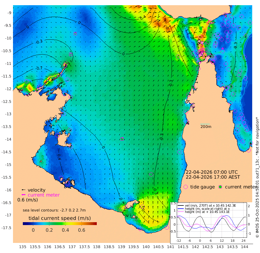 21cm/s -1T +3cm/s rms + 7cm/s -42T. ARA-GOC87 57m 28cm/s 10T +3cm/s rms + 2cm/s -2T. ARA-GOC87 60m 20cm/s 9T +2cm/s rms + 3cm/s 61T. ARA-GOC87 47m -44cm Daru -43cm Bobo Island -40cm Meer Island Barge -42cm Bramble Cay -38cm Unnamed Cay -54cm Pearce Cay -41cm Stephens Island -32cm Merrie England Shoals -39cm Mutacomal Reef -35cm Darnley Island Barge -45cm East Cay -35cm Yorke Island Barge -45cm Rennel Island -45cm Aureed Island -59cm Dungeness Reef -58cm Zagai Island -63cm Yam Island -105cm Dauan Island -78cm Saibai Island -113cm Phipi Reef -77cm Warrior Reef - West -81cm Mabuiag Island Barge -38cm Half Way Island -52cm Coconut Island -42cm Dugong Islet -56cm Poll Island -53cm Kirkcaldie Reef -73cm Suarji Island -40cm Sue Islet -144cm Hawkesbury Island -75cm Alert Patches -70cm Twin Island -149cm Badu Island -73cm St Pauls (Moa Island) -127cm Kubin (Moa Island) -87cm Ince Point -97cm Thursday Island -96cm Nardana Patches -126cm Turtle Head -123cm Round Island -151cm Goods Island -147cm Booby Island -144cm White Rocks Area -79cm Carpentaria -65cm Papou Point -141cm Bampfield Head -119cm Crab Island -140cm Red Wallis Island -142cm Packe Island -41cm Harrington Reef -142cm Herald Camp -7cm Sharp Point -106cm Red Island Point -83cm Possession Island -44cm Alpha Rock -58cm Frederick Point -40cm Wyborn Reef Light -43cm Tetley Island -47cm Triangle Reef -43cm Turtle Head Island -45cm Maclennan Cay -48cm Raine Island -38cm Mcsweeny Reef -35cm Collette Reef -39cm Shadwell Reef -36cm Hannibal Island -46cm Round Point -90cm Vrilya Point -36cm Cape Grenville -45cm Hicks Island -53cm Sir Charles Hardy Island -11cm Harvey Island -37cm Kay Reef -46cm Rocky Island -51cm Chapman Island -42cm Ham Reef -42cm Jubilee Reef -41cm Night Island -45cm Unnamed Reef No. 3 -46cm Morris Island -48cm 1st 3 Mile Opening -45cm Creech Reef -41cm Fife Island -52cm Eden Reef -39cm Stanley Island -40cm Normanby River -97cm Yabooma Island -124cm Hutchison River -94cm Elcho Island -90cm North West Crocodile Island -30cm Cape Wessel -64cm Stevens Island -29cm Guluwuru Island -60cm Hopeful Bay -44cm Auster Point -41cm Two Island Bay -82cm Cadell Strait 53cm Mallison Island -33cm Melville Bay (Gove Harbour) -31cm Truant Island -15cm Cape Arnhem 11cm Cape Grey 16cm Hawk Island 57cm Milner Bay (Groote Eylandt) 51cm Cape Beatrice 88cm West Island 88cm Centre Island 31cm Mornington Island 40cm West Wellesley Islands 9cm Bountiful Island 24cm Albert River Mouth 55cm Sweers Island 14cm Karumba -32cm Nassau River Offshore -67cm Christmas Creek -83cm Archer River -82cm Boyd Point -106cm Weipa (Humbug Point) -64cm Pennefather River -94cm Cullen Point