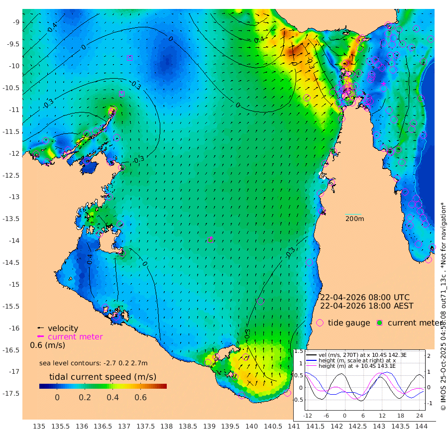 17cm/s -21T +3cm/s rms + 7cm/s -42T. ARA-GOC87 57m 33cm/s 13T +3cm/s rms + 2cm/s -2T. ARA-GOC87 60m 11cm/s -9T +2cm/s rms + 3cm/s 61T. ARA-GOC87 47m -60cm Daru -60cm Bobo Island -54cm Meer Island Barge -56cm Bramble Cay -52cm Unnamed Cay -70cm Pearce Cay -56cm Stephens Island -45cm Merrie England Shoals -50cm Mutacomal Reef -55cm Darnley Island Barge -56cm East Cay -55cm Yorke Island Barge -56cm Rennel Island -63cm Aureed Island -70cm Dungeness Reef -69cm Zagai Island -67cm Yam Island -109cm Dauan Island -84cm Saibai Island -118cm Phipi Reef -90cm Warrior Reef - West -63cm Mabuiag Island Barge -50cm Half Way Island -59cm Coconut Island -54cm Dugong Islet -61cm Poll Island -56cm Kirkcaldie Reef -71cm Suarji Island -48cm Sue Islet -86cm Hawkesbury Island -62cm Alert Patches -60cm Twin Island -100cm Badu Island -64cm St Pauls (Moa Island) -87cm Kubin (Moa Island) -66cm Ince Point -67cm Thursday Island -68cm Nardana Patches -88cm Turtle Head -76cm Round Island -96cm Goods Island -80cm Booby Island -77cm White Rocks Area -20cm Carpentaria -52cm Papou Point -72cm Bampfield Head -60cm Crab Island -76cm Red Wallis Island -94cm Packe Island -49cm Harrington Reef -86cm Herald Camp -8cm Sharp Point -67cm Red Island Point -59cm Possession Island -39cm Alpha Rock -56cm Frederick Point -49cm Wyborn Reef Light -49cm Tetley Island -56cm Triangle Reef -49cm Turtle Head Island -54cm Maclennan Cay -54cm Raine Island -52cm Mcsweeny Reef -49cm Collette Reef -50cm Shadwell Reef -53cm Hannibal Island -57cm Round Point -33cm Vrilya Point -47cm Cape Grenville -55cm Hicks Island -66cm Sir Charles Hardy Island -15cm Harvey Island -46cm Kay Reef -55cm Rocky Island -58cm Chapman Island -49cm Ham Reef -51cm Jubilee Reef -49cm Night Island -50cm Unnamed Reef No. 3 -55cm Morris Island -56cm 1st 3 Mile Opening -53cm Creech Reef -51cm Fife Island -65cm Eden Reef -48cm Stanley Island -50cm Normanby River -77cm Yabooma Island -110cm Hutchison River -78cm Elcho Island -72cm North West Crocodile Island -35cm Cape Wessel -57cm Stevens Island -59cm Guluwuru Island -53cm Hopeful Bay -42cm Auster Point -42cm Two Island Bay -94cm Cadell Strait -30cm Mallison Island -54cm Melville Bay (Gove Harbour) -52cm Truant Island -35cm Cape Arnhem -6cm Cape Grey -2cm Hawk Island 43cm Milner Bay (Groote Eylandt) 36cm Cape Beatrice 74cm West Island 75cm Centre Island 1cm Mornington Island 9cm West Wellesley Islands -28cm Bountiful Island -18cm Albert River Mouth 9cm Sweers Island -23cm Karumba -52cm Nassau River Offshore -73cm Christmas Creek -66cm Archer River -59cm Boyd Point -79cm Weipa (Humbug Point) -30cm Pennefather River -48cm Cullen Point
