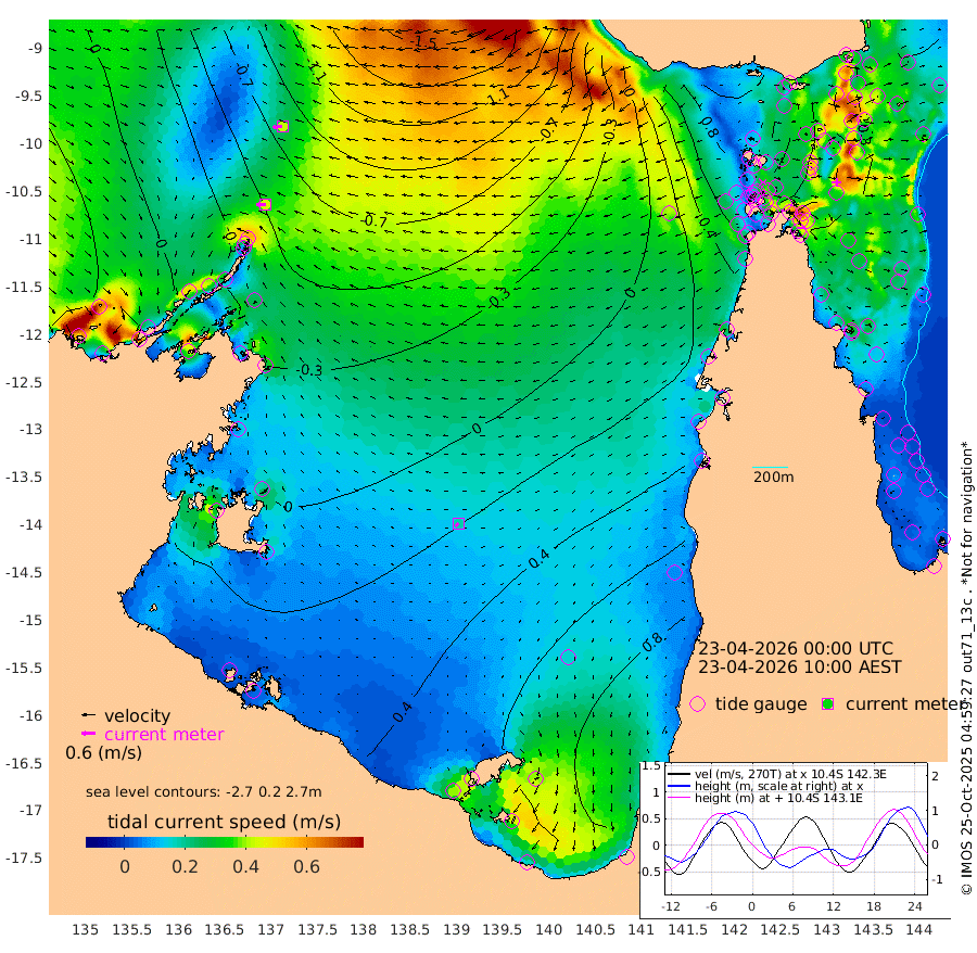 43cm/s -91T +3cm/s rms + 7cm/s -42T. ARA-GOC87 57m 19cm/s -127T +3cm/s rms + 2cm/s -2T. ARA-GOC87 60m 42cm/s -97T +2cm/s rms + 3cm/s 61T. ARA-GOC87 47m -17cm Daru -30cm Bobo Island -40cm Meer Island Barge -36cm Bramble Cay -32cm Unnamed Cay -28cm Pearce Cay -38cm Stephens Island -34cm Merrie England Shoals -17cm Mutacomal Reef -45cm Darnley Island Barge -37cm East Cay -37cm Yorke Island Barge -20cm Rennel Island -25cm Aureed Island 1cm Dungeness Reef 14cm Zagai Island 23cm Yam Island 71cm Dauan Island 48cm Saibai Island 86cm Phipi Reef 35cm Warrior Reef - West 56cm Mabuiag Island Barge -28cm Half Way Island -9cm Coconut Island -19cm Dugong Islet 9cm Poll Island 4cm Kirkcaldie Reef 43cm Suarji Island -4cm Sue Islet 77cm Hawkesbury Island 40cm Alert Patches 29cm Twin Island 86cm Badu Island 38cm St Pauls (Moa Island) 67cm Kubin (Moa Island) 49cm Ince Point 55cm Thursday Island 56cm Nardana Patches 75cm Turtle Head 70cm Round Island 83cm Goods Island 79cm Booby Island 82cm White Rocks Area 22cm Carpentaria 25cm Papou Point 59cm Bampfield Head 63cm Crab Island 78cm Red Wallis Island 81cm Packe Island -19cm Harrington Reef 78cm Herald Camp 11cm Sharp Point 60cm Red Island Point 42cm Possession Island 13cm Alpha Rock 9cm Frederick Point -21cm Wyborn Reef Light -14cm Tetley Island -22cm Triangle Reef -35cm Turtle Head Island -29cm Maclennan Cay -27cm Raine Island -31cm Mcsweeny Reef -33cm Collette Reef -31cm Shadwell Reef -39cm Hannibal Island -34cm Round Point 41cm Vrilya Point -34cm Cape Grenville -34cm Hicks Island -33cm Sir Charles Hardy Island -12cm Harvey Island -37cm Kay Reef -29cm Rocky Island -27cm Chapman Island -33cm Ham Reef -35cm Jubilee Reef -27cm Night Island -30cm Unnamed Reef No. 3 -32cm Morris Island -30cm 1st 3 Mile Opening -33cm Creech Reef -33cm Fife Island -42cm Eden Reef -38cm Stanley Island -44cm Normanby River 0cm Yabooma Island 1cm Hutchison River 3cm Elcho Island 13cm North West Crocodile Island -72cm Cape Wessel -34cm Stevens Island -96cm Guluwuru Island -24cm Hopeful Bay -53cm Auster Point -61cm Two Island Bay -61cm Cadell Strait -235cm Mallison Island -66cm Melville Bay (Gove Harbour) -82cm Truant Island -55cm Cape Arnhem -31cm Cape Grey -6cm Hawk Island 4cm Milner Bay (Groote Eylandt) 24cm Cape Beatrice 40cm West Island 38cm Centre Island 92cm Mornington Island 84cm West Wellesley Islands 133cm Bountiful Island 156cm Albert River Mouth 144cm Sweers Island 163cm Karumba 106cm Nassau River Offshore 87cm Christmas Creek 64cm Archer River 46cm Boyd Point 69cm Weipa (Humbug Point) 32cm Pennefather River 50cm Cullen Point