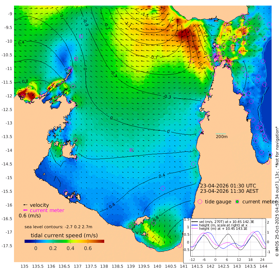 21cm/s -83T +3cm/s rms + 7cm/s -42T. ARA-GOC87 57m 20cm/s -99T +3cm/s rms + 2cm/s -2T. ARA-GOC87 60m 17cm/s -76T +2cm/s rms + 3cm/s 61T. ARA-GOC87 47m -43cm Daru -44cm Bobo Island -40cm Meer Island Barge -44cm Bramble Cay -53cm Unnamed Cay -41cm Pearce Cay -52cm Stephens Island -59cm Merrie England Shoals -50cm Mutacomal Reef -53cm Darnley Island Barge -42cm East Cay -50cm Yorke Island Barge -46cm Rennel Island -40cm Aureed Island -29cm Dungeness Reef -11cm Zagai Island -16cm Yam Island 41cm Dauan Island 20cm Saibai Island 53cm Phipi Reef 7cm Warrior Reef - West 3cm Mabuiag Island Barge -54cm Half Way Island -40cm Coconut Island -51cm Dugong Islet -28cm Poll Island -41cm Kirkcaldie Reef -5cm Suarji Island -39cm Sue Islet -13cm Hawkesbury Island -23cm Alert Patches -27cm Twin Island 9cm Badu Island -18cm St Pauls (Moa Island) -6cm Kubin (Moa Island) -16cm Ince Point -17cm Thursday Island -13cm Nardana Patches -1cm Turtle Head -7cm Round Island -2cm Goods Island -17cm Booby Island -13cm White Rocks Area -66cm Carpentaria -24cm Papou Point -36cm Bampfield Head -20cm Crab Island -17cm Red Wallis Island -5cm Packe Island -57cm Harrington Reef -13cm Herald Camp -5cm Sharp Point -11cm Red Island Point -19cm Possession Island -37cm Alpha Rock -39cm Frederick Point -52cm Wyborn Reef Light -49cm Tetley Island -29cm Triangle Reef -68cm Turtle Head Island -38cm Maclennan Cay -29cm Raine Island -51cm Mcsweeny Reef -48cm Collette Reef -37cm Shadwell Reef -53cm Hannibal Island -46cm Round Point -44cm Vrilya Point -49cm Cape Grenville -42cm Hicks Island -41cm Sir Charles Hardy Island -15cm Harvey Island -48cm Kay Reef -32cm Rocky Island -29cm Chapman Island -35cm Ham Reef -37cm Jubilee Reef -31cm Night Island -35cm Unnamed Reef No. 3 -36cm Morris Island -34cm 1st 3 Mile Opening -38cm Creech Reef -36cm Fife Island -36cm Eden Reef -44cm Stanley Island -46cm Normanby River 77cm Yabooma Island 101cm Hutchison River 90cm Elcho Island 92cm North West Crocodile Island 3cm Cape Wessel 50cm Stevens Island -5cm Guluwuru Island 54cm Hopeful Bay 22cm Auster Point 18cm Two Island Bay 50cm Cadell Strait -116cm Mallison Island 13cm Melville Bay (Gove Harbour) 0cm Truant Island 3cm Cape Arnhem 12cm Cape Grey 32cm Hawk Island 30cm Milner Bay (Groote Eylandt) 42cm Cape Beatrice 36cm West Island 35cm Centre Island 104cm Mornington Island 94cm West Wellesley Islands 154cm Bountiful Island 204cm Albert River Mouth 199cm Sweers Island 198cm Karumba 95cm Nassau River Offshore 58cm Christmas Creek 21cm Archer River -3cm Boyd Point 18cm Weipa (Humbug Point) -26cm Pennefather River -23cm Cullen Point