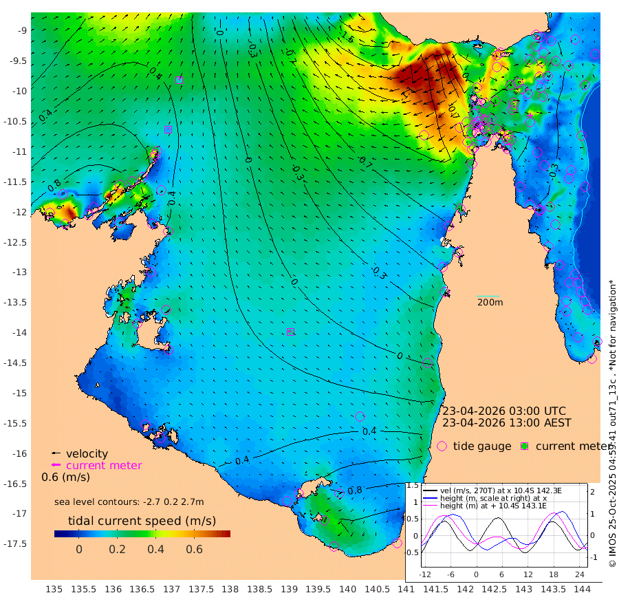 9cm/s 3T +3cm/s rms + 7cm/s -42T. ARA-GOC87 57m 19cm/s -76T +3cm/s rms + 2cm/s -2T. ARA-GOC87 60m 17cm/s 23T +2cm/s rms + 3cm/s 61T. ARA-GOC87 47m -48cm Daru -41cm Bobo Island -24cm Meer Island Barge -34cm Bramble Cay -51cm Unnamed Cay -38cm Pearce Cay -44cm Stephens Island -57cm Merrie England Shoals -59cm Mutacomal Reef -37cm Darnley Island Barge -30cm East Cay -42cm Yorke Island Barge -52cm Rennel Island -37cm Aureed Island -45cm Dungeness Reef -33cm Zagai Island -50cm Yam Island -9cm Dauan Island -19cm Saibai Island -1cm Phipi Reef -23cm Warrior Reef - West -58cm Mabuiag Island Barge -57cm Half Way Island -56cm Coconut Island -60cm Dugong Islet -54cm Poll Island -69cm Kirkcaldie Reef -51cm Suarji Island -57cm Sue Islet -117cm Hawkesbury Island -78cm Alert Patches -76cm Twin Island -90cm Badu Island -70cm St Pauls (Moa Island) -92cm Kubin (Moa Island) -81cm Ince Point -91cm Thursday Island -85cm Nardana Patches -88cm Turtle Head -98cm Round Island -104cm Goods Island -127cm Booby Island -122cm White Rocks Area -146cm Carpentaria -70cm Papou Point -141cm Bampfield Head -113cm Crab Island -124cm Red Wallis Island -102cm Packe Island -71cm Harrington Reef -116cm Herald Camp -17cm Sharp Point -90cm Red Island Point -81cm Possession Island -73cm Alpha Rock -72cm Frederick Point -63cm Wyborn Reef Light -65cm Tetley Island -26cm Triangle Reef -78cm Turtle Head Island -32cm Maclennan Cay -22cm Raine Island -48cm Mcsweeny Reef -42cm Collette Reef -28cm Shadwell Reef -43cm Hannibal Island -40cm Round Point -127cm Vrilya Point -42cm Cape Grenville -33cm Hicks Island -32cm Sir Charles Hardy Island -12cm Harvey Island -38cm Kay Reef -23cm Rocky Island -20cm Chapman Island -25cm Ham Reef -26cm Jubilee Reef -23cm Night Island -27cm Unnamed Reef No. 3 -26cm Morris Island -26cm 1st 3 Mile Opening -27cm Creech Reef -23cm Fife Island -18cm Eden Reef -32cm Stanley Island -30cm Normanby River 84cm Yabooma Island 117cm Hutchison River 103cm Elcho Island 99cm North West Crocodile Island 47cm Cape Wessel 80cm Stevens Island 64cm Guluwuru Island 80cm Hopeful Bay 57cm Auster Point 59cm Two Island Bay 102cm Cadell Strait 37cm Mallison Island 66cm Melville Bay (Gove Harbour) 58cm Truant Island 47cm Cape Arnhem 47cm Cape Grey 60cm Hawk Island 54cm Milner Bay (Groote Eylandt) 57cm Cape Beatrice 44cm West Island 43cm Centre Island 107cm Mornington Island 100cm West Wellesley Islands 151cm Bountiful Island 211cm Albert River Mouth 218cm Sweers Island 193cm Karumba 73cm Nassau River Offshore 23cm Christmas Creek -28cm Archer River -54cm Boyd Point -44cm Weipa (Humbug Point) -81cm Pennefather River -98cm Cullen Point