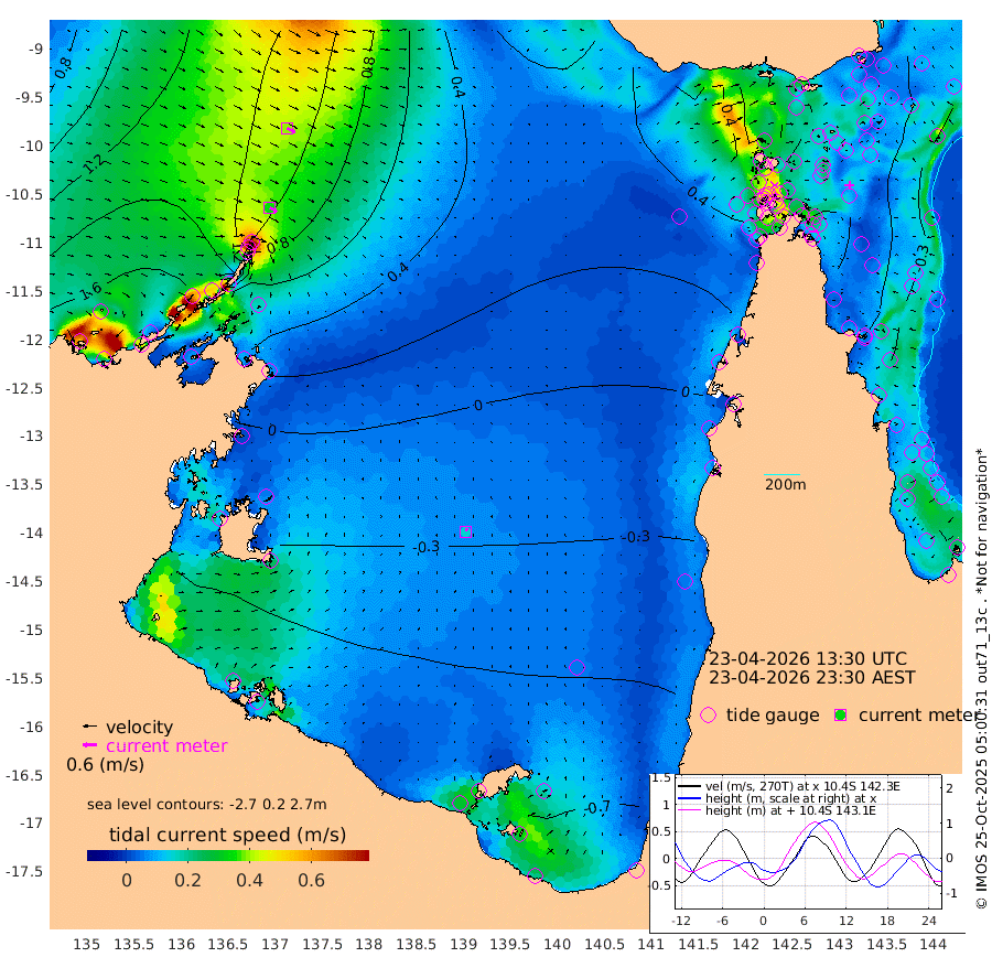 35cm/s 122T +3cm/s rms + 7cm/s -42T. ARA-GOC87 57m 15cm/s 17T +3cm/s rms + 2cm/s -2T. ARA-GOC87 60m 39cm/s 116T +2cm/s rms + 3cm/s 61T. ARA-GOC87 47m -49cm Daru -40cm Bobo Island -30cm Meer Island Barge -38cm Bramble Cay -50cm Unnamed Cay -38cm Pearce Cay -47cm Stephens Island -55cm Merrie England Shoals -52cm Mutacomal Reef -47cm Darnley Island Barge -30cm East Cay -47cm Yorke Island Barge -45cm Rennel Island -44cm Aureed Island -39cm Dungeness Reef -14cm Zagai Island -15cm Yam Island 11cm Dauan Island 10cm Saibai Island -4cm Phipi Reef -22cm Warrior Reef - West 32cm Mabuiag Island Barge -48cm Half Way Island -31cm Coconut Island -50cm Dugong Islet -26cm Poll Island -34cm Kirkcaldie Reef -14cm Suarji Island -31cm Sue Islet 94cm Hawkesbury Island -5cm Alert Patches -4cm Twin Island 89cm Badu Island -1cm St Pauls (Moa Island) 64cm Kubin (Moa Island) 18cm Ince Point 33cm Thursday Island 29cm Nardana Patches 48cm Turtle Head 75cm Round Island 85cm Goods Island 100cm Booby Island 96cm White Rocks Area 80cm Carpentaria 14cm Papou Point 117cm Bampfield Head 86cm Crab Island 91cm Red Wallis Island 64cm Packe Island -47cm Harrington Reef 83cm Herald Camp -12cm Sharp Point 53cm Red Island Point 28cm Possession Island -15cm Alpha Rock -21cm Frederick Point -36cm Wyborn Reef Light -31cm Tetley Island -20cm Triangle Reef -29cm Turtle Head Island -27cm Maclennan Cay -14cm Raine Island -47cm Mcsweeny Reef -46cm Collette Reef -32cm Shadwell Reef -51cm Hannibal Island -37cm Round Point 71cm Vrilya Point -42cm Cape Grenville -31cm Hicks Island -31cm Sir Charles Hardy Island -13cm Harvey Island -35cm Kay Reef -24cm Rocky Island -16cm Chapman Island -18cm Ham Reef -22cm Jubilee Reef -27cm Night Island -20cm Unnamed Reef No. 3 -26cm Morris Island -19cm 1st 3 Mile Opening -25cm Creech Reef -34cm Fife Island -26cm Eden Reef -32cm Stanley Island -33cm Normanby River 192cm Yabooma Island 217cm Hutchison River 189cm Elcho Island 181cm North West Crocodile Island 126cm Cape Wessel 166cm Stevens Island 90cm Guluwuru Island 148cm Hopeful Bay 138cm Auster Point 139cm Two Island Bay 169cm Cadell Strait -6cm Mallison Island 85cm Melville Bay (Gove Harbour) 97cm Truant Island 51cm Cape Arnhem 16cm Cape Grey -5cm Hawk Island -32cm Milner Bay (Groote Eylandt) -52cm Cape Beatrice -101cm West Island -96cm Centre Island -130cm Mornington Island -138cm West Wellesley Islands -138cm Bountiful Island -138cm Albert River Mouth -150cm Sweers Island -140cm Karumba -108cm Nassau River Offshore -71cm Christmas Creek -8cm Archer River 14cm Boyd Point 20cm Weipa (Humbug Point) 28cm Pennefather River 57cm Cullen Point