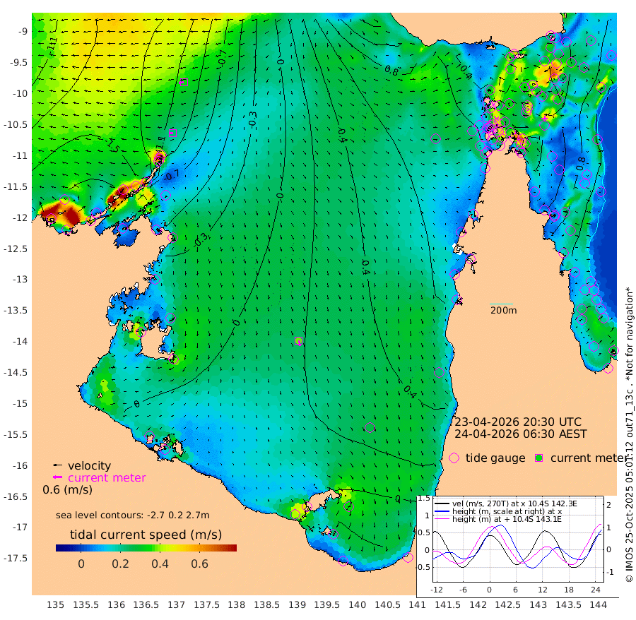 22cm/s -98T +3cm/s rms + 7cm/s -42T. ARA-GOC87 57m 38cm/s 165T +3cm/s rms + 2cm/s -2T. ARA-GOC87 60m 36cm/s -101T +2cm/s rms + 3cm/s 61T. ARA-GOC87 47m 116cm Daru 101cm Bobo Island 72cm Meer Island Barge 90cm Bramble Cay 113cm Unnamed Cay 104cm Pearce Cay 107cm Stephens Island 118cm Merrie England Shoals 123cm Mutacomal Reef 99cm Darnley Island Barge 80cm East Cay 105cm Yorke Island Barge 113cm Rennel Island 102cm Aureed Island 112cm Dungeness Reef 82cm Zagai Island 99cm Yam Island 67cm Dauan Island 62cm Saibai Island 73cm Phipi Reef 93cm Warrior Reef - West 69cm Mabuiag Island Barge 118cm Half Way Island 107cm Coconut Island 125cm Dugong Islet 106cm Poll Island 123cm Kirkcaldie Reef 98cm Suarji Island 106cm Sue Islet 90cm Hawkesbury Island 112cm Alert Patches 109cm Twin Island 75cm Badu Island 105cm St Pauls (Moa Island) 89cm Kubin (Moa Island) 101cm Ince Point 100cm Thursday Island 98cm Nardana Patches 96cm Turtle Head 75cm Round Island 86cm Goods Island 86cm Booby Island 83cm White Rocks Area 84cm Carpentaria 87cm Papou Point 76cm Bampfield Head 73cm Crab Island 90cm Red Wallis Island 101cm Packe Island 129cm Harrington Reef 94cm Herald Camp 32cm Sharp Point 85cm Red Island Point 86cm Possession Island 103cm Alpha Rock 116cm Frederick Point 113cm Wyborn Reef Light 112cm Tetley Island 69cm Triangle Reef 121cm Turtle Head Island 79cm Maclennan Cay 57cm Raine Island 108cm Mcsweeny Reef 100cm Collette Reef 75cm Shadwell Reef 106cm Hannibal Island 95cm Round Point 83cm Vrilya Point 95cm Cape Grenville 82cm Hicks Island 89cm Sir Charles Hardy Island 29cm Harvey Island 85cm Kay Reef 67cm Rocky Island 60cm Chapman Island 61cm Ham Reef 66cm Jubilee Reef 66cm Night Island 66cm Unnamed Reef No. 3 70cm Morris Island 65cm 1st 3 Mile Opening 71cm Creech Reef 73cm Fife Island 68cm Eden Reef 77cm Stanley Island 78cm Normanby River -183cm Yabooma Island -216cm Hutchison River -198cm Elcho Island -189cm North West Crocodile Island -123cm Cape Wessel -171cm Stevens Island -99cm Guluwuru Island -160cm Hopeful Bay -139cm Auster Point -138cm Two Island Bay -171cm Cadell Strait -16cm Mallison Island -99cm Melville Bay (Gove Harbour) -103cm Truant Island -67cm Cape Arnhem -55cm Cape Grey -54cm Hawk Island -54cm Milner Bay (Groote Eylandt) -35cm Cape Beatrice -5cm West Island -12cm Centre Island -1cm Mornington Island 6cm West Wellesley Islands -18cm Bountiful Island -82cm Albert River Mouth -97cm Sweers Island -60cm Karumba 47cm Nassau River Offshore 77cm Christmas Creek 70cm Archer River 73cm Boyd Point 70cm Weipa (Humbug Point) 70cm Pennefather River 75cm Cullen Point