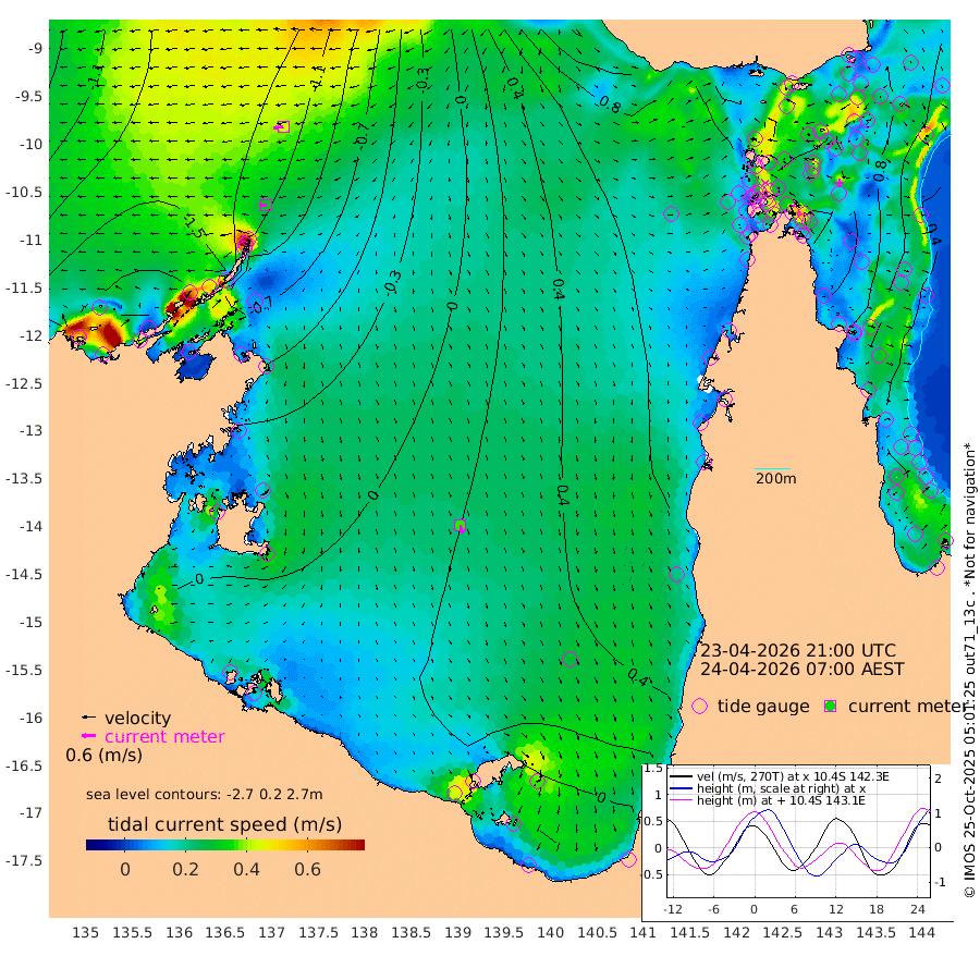 31cm/s -94T +3cm/s rms + 7cm/s -42T. ARA-GOC87 57m 36cm/s 168T +3cm/s rms + 2cm/s -2T. ARA-GOC87 60m 43cm/s -100T +2cm/s rms + 3cm/s 61T. ARA-GOC87 47m 110cm Daru 93cm Bobo Island 57cm Meer Island Barge 77cm Bramble Cay 103cm Unnamed Cay 93cm Pearce Cay 95cm Stephens Island 108cm Merrie England Shoals 118cm Mutacomal Reef 85cm Darnley Island Barge 65cm East Cay 94cm Yorke Island Barge 106cm Rennel Island 93cm Aureed Island 109cm Dungeness Reef 84cm Zagai Island 103cm Yam Island 77cm Dauan Island 70cm Saibai Island 86cm Phipi Reef 98cm Warrior Reef - West 81cm Mabuiag Island Barge 110cm Half Way Island 105cm Coconut Island 120cm Dugong Islet 108cm Poll Island 124cm Kirkcaldie Reef 107cm Suarji Island 106cm Sue Islet 104cm Hawkesbury Island 121cm Alert Patches 117cm Twin Island 90cm Badu Island 114cm St Pauls (Moa Island) 100cm Kubin (Moa Island) 111cm Ince Point 112cm Thursday Island 109cm Nardana Patches 108cm Turtle Head 89cm Round Island 99cm Goods Island 100cm Booby Island 98cm White Rocks Area 90cm Carpentaria 94cm Papou Point 87cm Bampfield Head 85cm Crab Island 104cm Red Wallis Island 114cm Packe Island 126cm Harrington Reef 107cm Herald Camp 35cm Sharp Point 97cm Red Island Point 95cm Possession Island 108cm Alpha Rock 118cm Frederick Point 109cm Wyborn Reef Light 109cm Tetley Island 59cm Triangle Reef 114cm Turtle Head Island 66cm Maclennan Cay 44cm Raine Island 98cm Mcsweeny Reef 89cm Collette Reef 63cm Shadwell Reef 93cm Hannibal Island 82cm Round Point 92cm Vrilya Point 82cm Cape Grenville 69cm Hicks Island 74cm Sir Charles Hardy Island 25cm Harvey Island 70cm Kay Reef 54cm Rocky Island 46cm Chapman Island 47cm Ham Reef 52cm Jubilee Reef 54cm Night Island 52cm Unnamed Reef No. 3 56cm Morris Island 51cm 1st 3 Mile Opening 57cm Creech Reef 58cm Fife Island 50cm Eden Reef 62cm Stanley Island 61cm Normanby River -188cm Yabooma Island -222cm Hutchison River -202cm Elcho Island -190cm North West Crocodile Island -140cm Cape Wessel -181cm Stevens Island -124cm Guluwuru Island -169cm Hopeful Bay -152cm Auster Point -153cm Two Island Bay -190cm Cadell Strait -73cm Mallison Island -117cm Melville Bay (Gove Harbour) -123cm Truant Island -81cm Cape Arnhem -62cm Cape Grey -56cm Hawk Island -49cm Milner Bay (Groote Eylandt) -28cm Cape Beatrice 8cm West Island 1cm Centre Island 14cm Mornington Island 20cm West Wellesley Islands 0cm Bountiful Island -56cm Albert River Mouth -73cm Sweers Island -33cm Karumba 60cm Nassau River Offshore 85cm Christmas Creek 76cm Archer River 77cm Boyd Point 76cm Weipa (Humbug Point) 76cm Pennefather River 84cm Cullen Point
