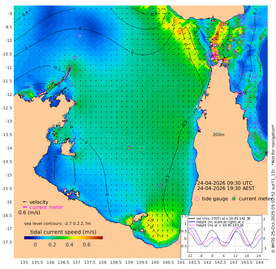 16cm/s -10T +3cm/s rms + 7cm/s -42T. ARA-GOC87 57m 35cm/s 9T +3cm/s rms + 2cm/s -2T. ARA-GOC87 60m 12cm/s 13T +2cm/s rms + 3cm/s 61T. ARA-GOC87 47m 9cm Daru 10cm Bobo Island -12cm Meer Island Barge -1cm Bramble Cay 14cm Unnamed Cay -1cm Pearce Cay 9cm Stephens Island 21cm Merrie England Shoals 18cm Mutacomal Reef 2cm Darnley Island Barge -8cm East Cay 6cm Yorke Island Barge 12cm Rennel Island 3cm Aureed Island -5cm Dungeness Reef -19cm Zagai Island -18cm Yam Island -90cm Dauan Island -72cm Saibai Island -79cm Phipi Reef -41cm Warrior Reef - West -50cm Mabuiag Island Barge 14cm Half Way Island 9cm Coconut Island 11cm Dugong Islet -3cm Poll Island 4cm Kirkcaldie Reef -11cm Suarji Island 0cm Sue Islet -89cm Hawkesbury Island -15cm Alert Patches -12cm Twin Island -96cm Badu Island -19cm St Pauls (Moa Island) -70cm Kubin (Moa Island) -34cm Ince Point -43cm Thursday Island -42cm Nardana Patches -69cm Turtle Head -58cm Round Island -92cm Goods Island -91cm Booby Island -78cm White Rocks Area -41cm Carpentaria -12cm Papou Point -62cm Bampfield Head -72cm Crab Island -86cm Red Wallis Island -81cm Packe Island 27cm Harrington Reef -81cm Herald Camp 2cm Sharp Point -55cm Red Island Point -19cm Possession Island 4cm Alpha Rock 3cm Frederick Point 20cm Wyborn Reef Light 17cm Tetley Island -18cm Triangle Reef 25cm Turtle Head Island -12cm Maclennan Cay -22cm Raine Island 10cm Mcsweeny Reef 7cm Collette Reef -11cm Shadwell Reef 10cm Hannibal Island 1cm Round Point -56cm Vrilya Point 4cm Cape Grenville -5cm Hicks Island -22cm Sir Charles Hardy Island 1cm Harvey Island -3cm Kay Reef -18cm Rocky Island -28cm Chapman Island -22cm Ham Reef -18cm Jubilee Reef -14cm Night Island -21cm Unnamed Reef No. 3 -15cm Morris Island -20cm 1st 3 Mile Opening -18cm Creech Reef -13cm Fife Island -26cm Eden Reef -11cm Stanley Island -7cm Normanby River -49cm Yabooma Island -65cm Hutchison River -47cm Elcho Island -46cm North West Crocodile Island -14cm Cape Wessel -29cm Stevens Island -30cm Guluwuru Island -30cm Hopeful Bay -16cm Auster Point -21cm Two Island Bay -64cm Cadell Strait -38cm Mallison Island -25cm Melville Bay (Gove Harbour) -23cm Truant Island -14cm Cape Arnhem 12cm Cape Grey 15cm Hawk Island 52cm Milner Bay (Groote Eylandt) 43cm Cape Beatrice 74cm West Island 76cm Centre Island 14cm Mornington Island 18cm West Wellesley Islands -10cm Bountiful Island -2cm Albert River Mouth 28cm Sweers Island -5cm Karumba -45cm Nassau River Offshore -70cm Christmas Creek -73cm Archer River -68cm Boyd Point -87cm Weipa (Humbug Point) -45cm Pennefather River -66cm Cullen Point