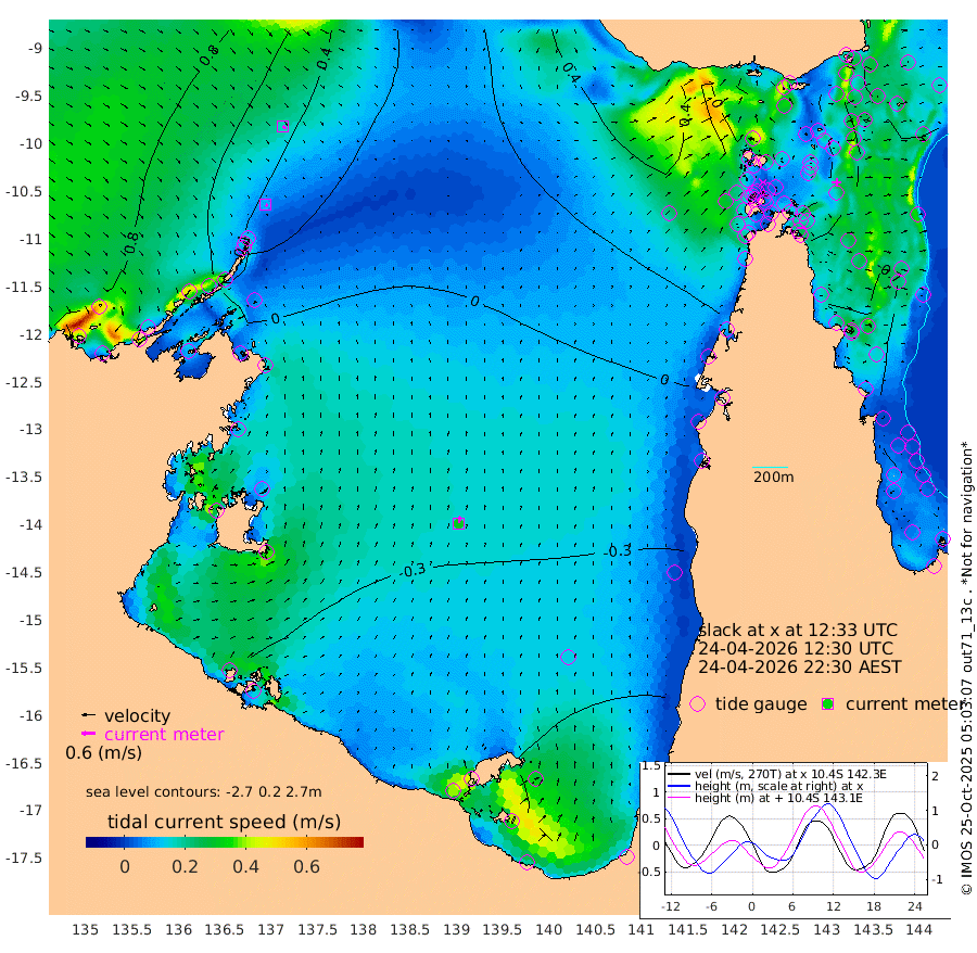 9cm/s 131T +3cm/s rms + 7cm/s -42T. ARA-GOC87 57m 31cm/s 11T +3cm/s rms + 2cm/s -2T. ARA-GOC87 60m 17cm/s 125T +2cm/s rms + 3cm/s 61T. ARA-GOC87 47m -45cm Daru -47cm Bobo Island -65cm Meer Island Barge -65cm Bramble Cay -55cm Unnamed Cay -58cm Pearce Cay -63cm Stephens Island -60cm Merrie England Shoals -43cm Mutacomal Reef -69cm Darnley Island Barge -66cm East Cay -57cm Yorke Island Barge -47cm Rennel Island -53cm Aureed Island -37cm Dungeness Reef -2cm Zagai Island 2cm Yam Island 5cm Dauan Island 11cm Saibai Island -3cm Phipi Reef -17cm Warrior Reef - West 44cm Mabuiag Island Barge -49cm Half Way Island -23cm Coconut Island -44cm Dugong Islet -12cm Poll Island -17cm Kirkcaldie Reef 13cm Suarji Island -14cm Sue Islet 70cm Hawkesbury Island 18cm Alert Patches 17cm Twin Island 66cm Badu Island 24cm St Pauls (Moa Island) 52cm Kubin (Moa Island) 32cm Ince Point 42cm Thursday Island 40cm Nardana Patches 40cm Turtle Head 72cm Round Island 58cm Goods Island 74cm Booby Island 76cm White Rocks Area 76cm Carpentaria 32cm Papou Point 102cm Bampfield Head 65cm Crab Island 68cm Red Wallis Island 46cm Packe Island -32cm Harrington Reef 68cm Herald Camp 5cm Sharp Point 46cm Red Island Point 44cm Possession Island 12cm Alpha Rock -4cm Frederick Point -26cm Wyborn Reef Light -17cm Tetley Island -49cm Triangle Reef -24cm Turtle Head Island -58cm Maclennan Cay -56cm Raine Island -56cm Mcsweeny Reef -59cm Collette Reef -60cm Shadwell Reef -67cm Hannibal Island -64cm Round Point 57cm Vrilya Point -63cm Cape Grenville -61cm Hicks Island -69cm Sir Charles Hardy Island -20cm Harvey Island -66cm Kay Reef -63cm Rocky Island -63cm Chapman Island -60cm Ham Reef -62cm Jubilee Reef -60cm Night Island -62cm Unnamed Reef No. 3 -66cm Morris Island -59cm 1st 3 Mile Opening -65cm Creech Reef -74cm Fife Island -81cm Eden Reef -70cm Stanley Island -75cm Normanby River 91cm Yabooma Island 94cm Hutchison River 89cm Elcho Island 89cm North West Crocodile Island 51cm Cape Wessel 75cm Stevens Island 4cm Guluwuru Island 63cm Hopeful Bay 62cm Auster Point 58cm Two Island Bay 41cm Cadell Strait -120cm Mallison Island 12cm Melville Bay (Gove Harbour) 19cm Truant Island 2cm Cape Arnhem 1cm Cape Grey -7cm Hawk Island 3cm Milner Bay (Groote Eylandt) -16cm Cape Beatrice -24cm West Island -17cm Centre Island -84cm Mornington Island -90cm West Wellesley Islands -98cm Bountiful Island -94cm Albert River Mouth -89cm Sweers Island -94cm Karumba -97cm Nassau River Offshore -81cm Christmas Creek -33cm Archer River -9cm Boyd Point -11cm Weipa (Humbug Point) 16cm Pennefather River 40cm Cullen Point